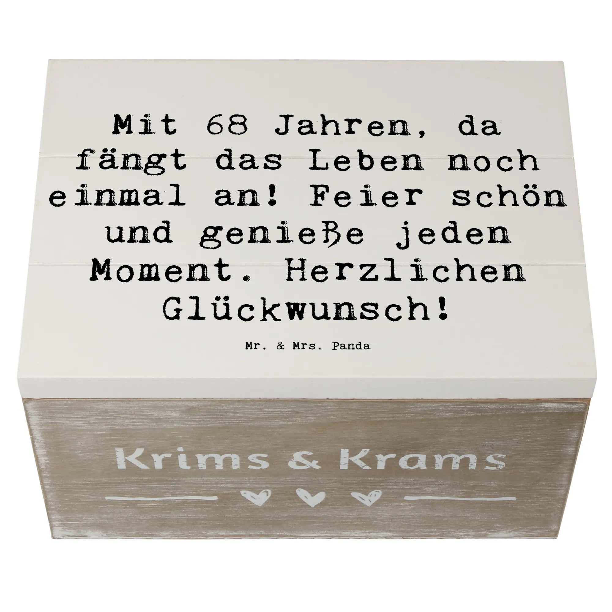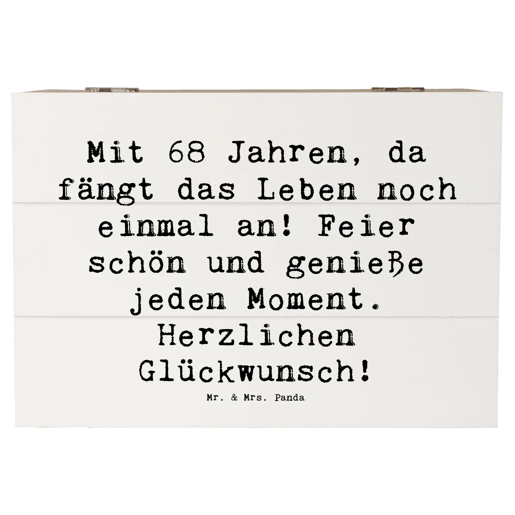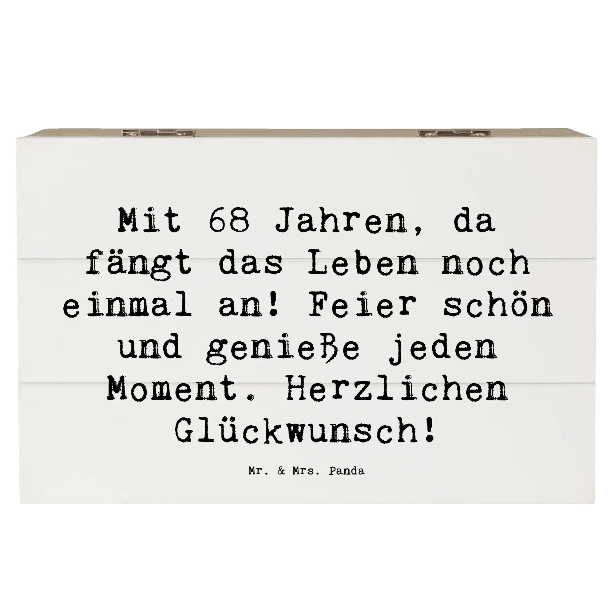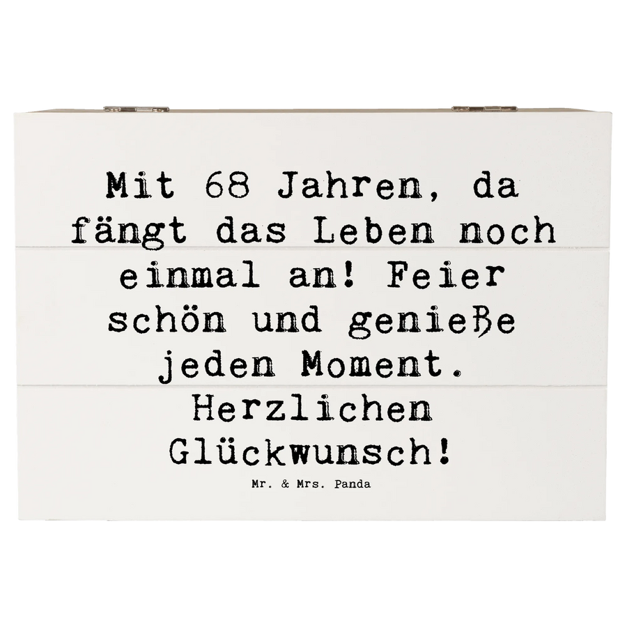 Wooden chest Saying Mit 68 Jahren, da fängt das Leben noch einmal an! Feier schön und genieße jeden Moment. Herzlichen Glückwunsch! - 22 x 15 cm - White