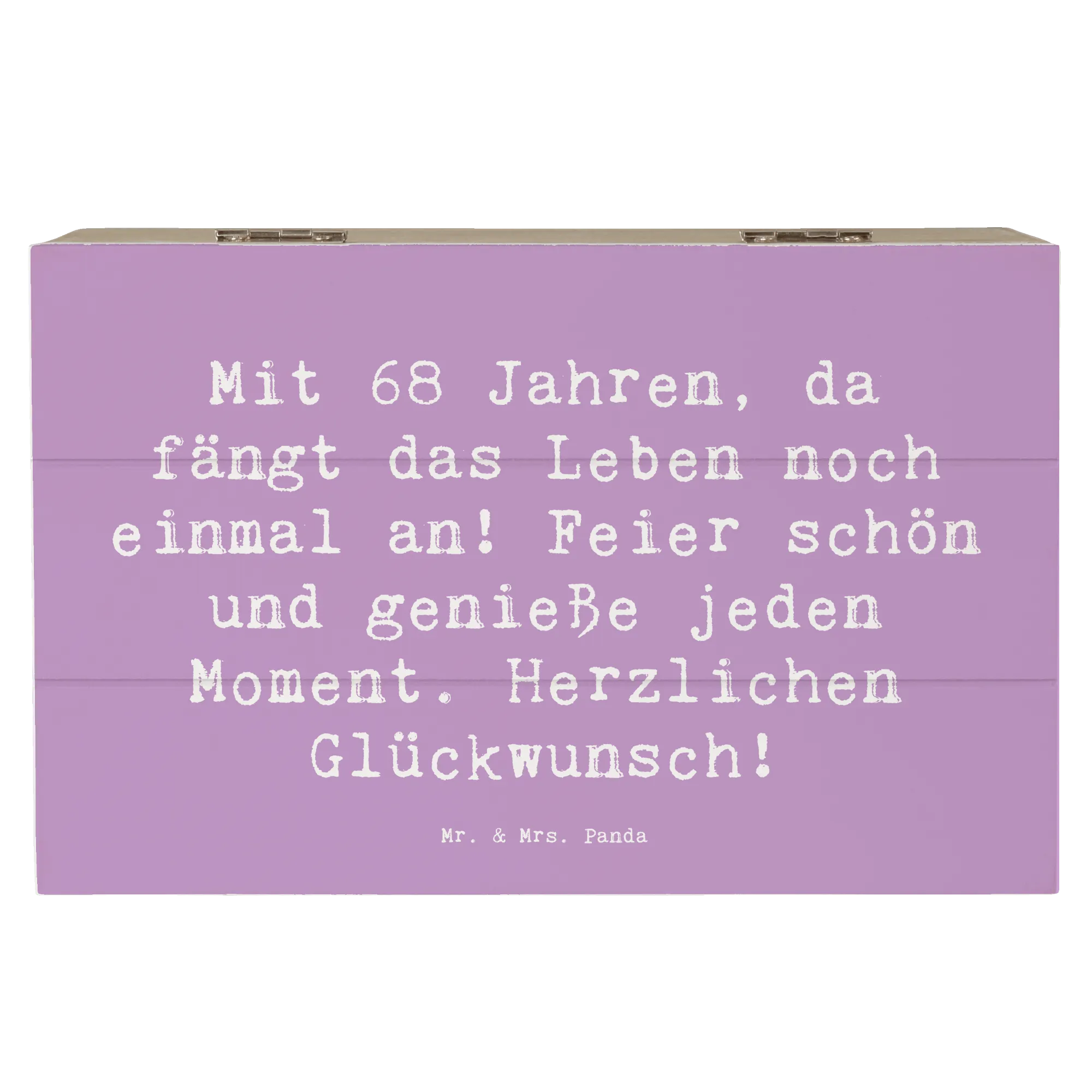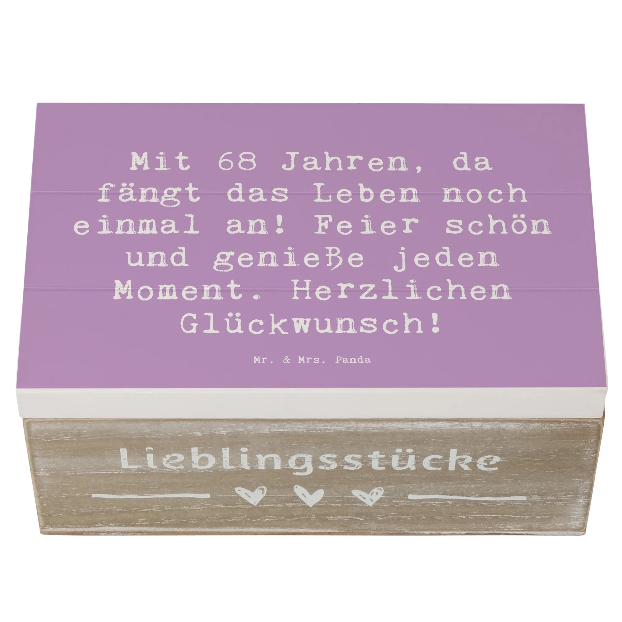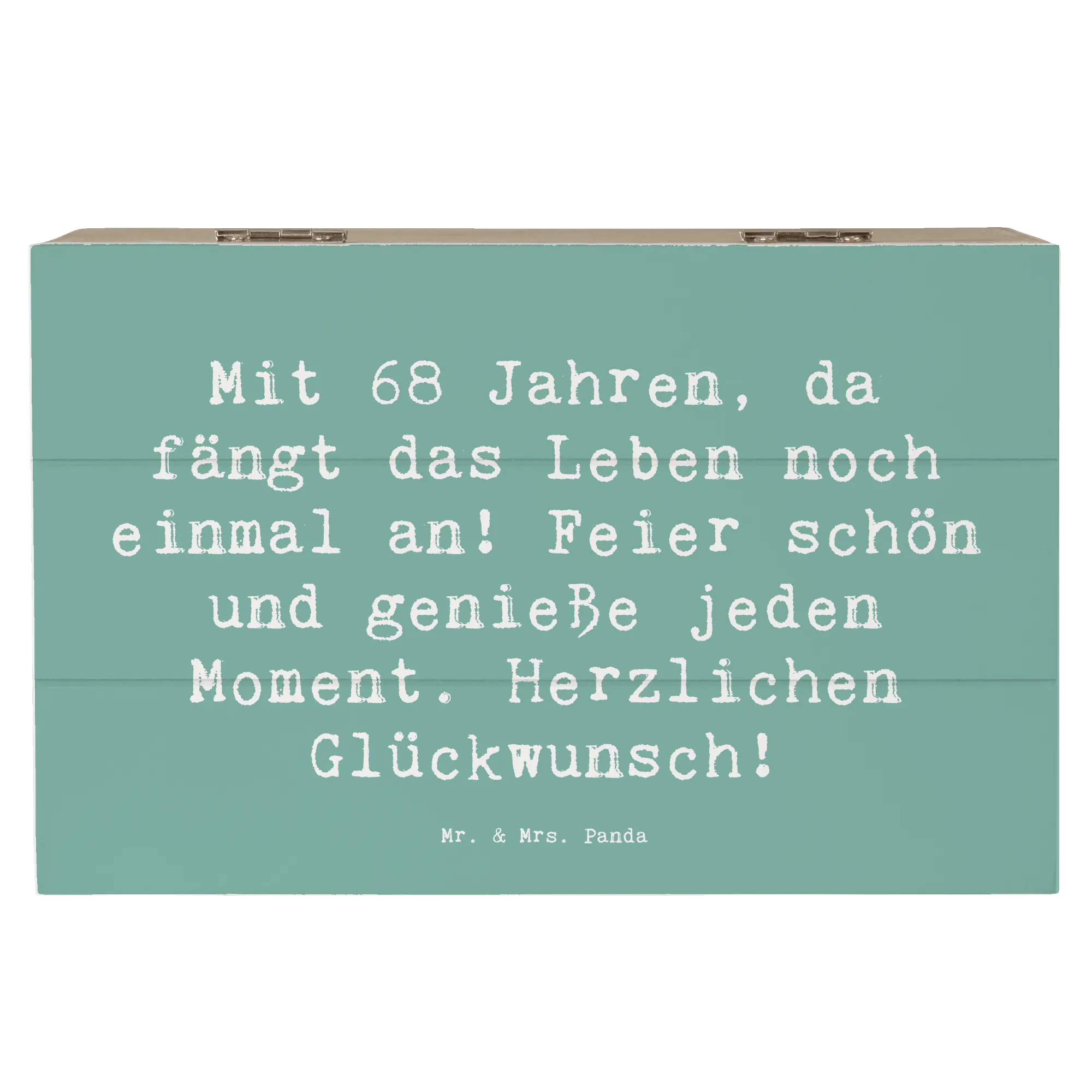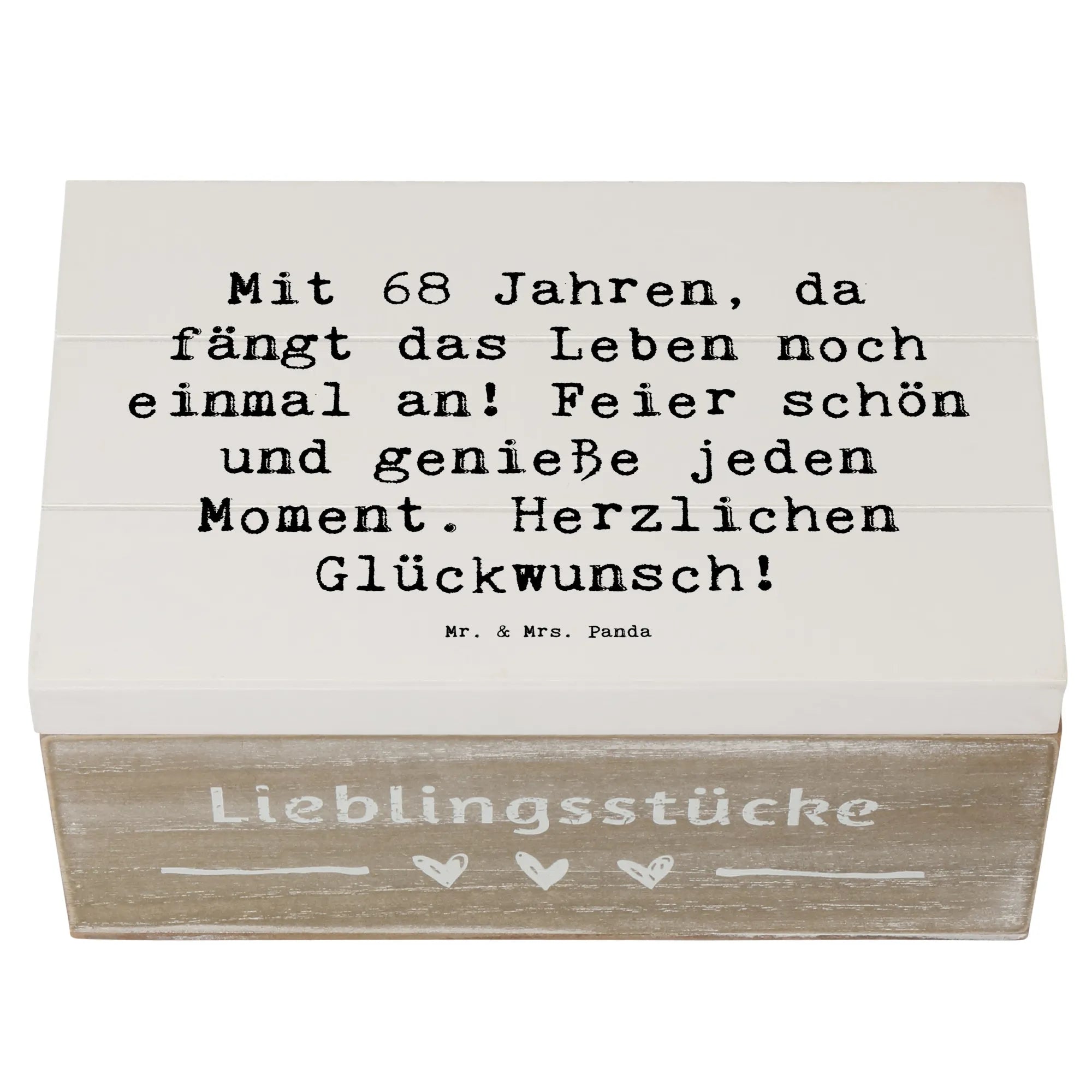 Wooden chest Saying Mit 68 Jahren, da fängt das Leben noch einmal an! Feier schön und genieße jeden Moment. Herzlichen Glückwunsch! - 22 x 15 cm - White