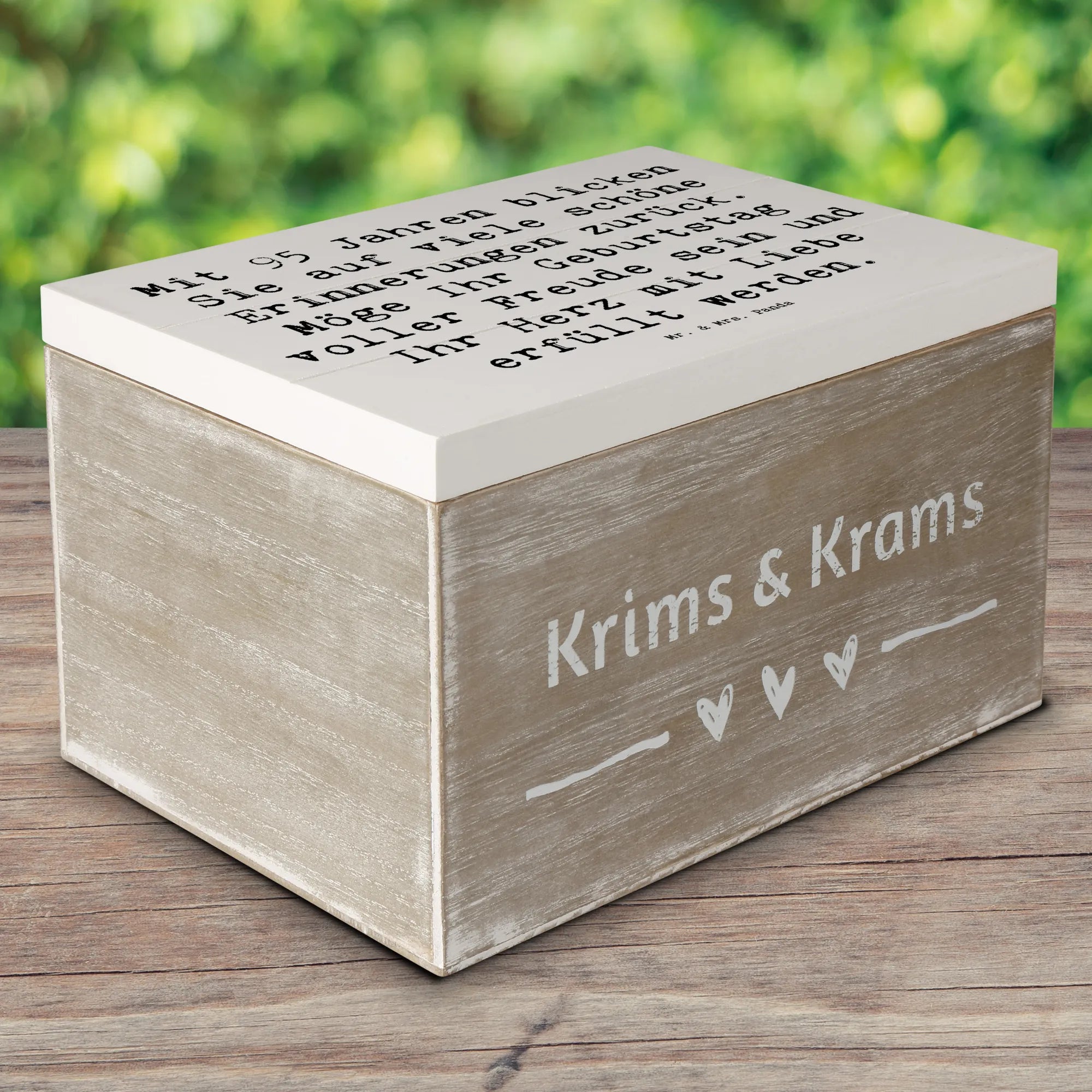 Wooden chest Saying Mit 95 Jahren blicken Sie auf viele schöne Erinnerungen zurück. Möge Ihr Geburtstag voller Freude sein und Ihr Herz mit Liebe erfüllt werden. - 22 x 15 cm - White