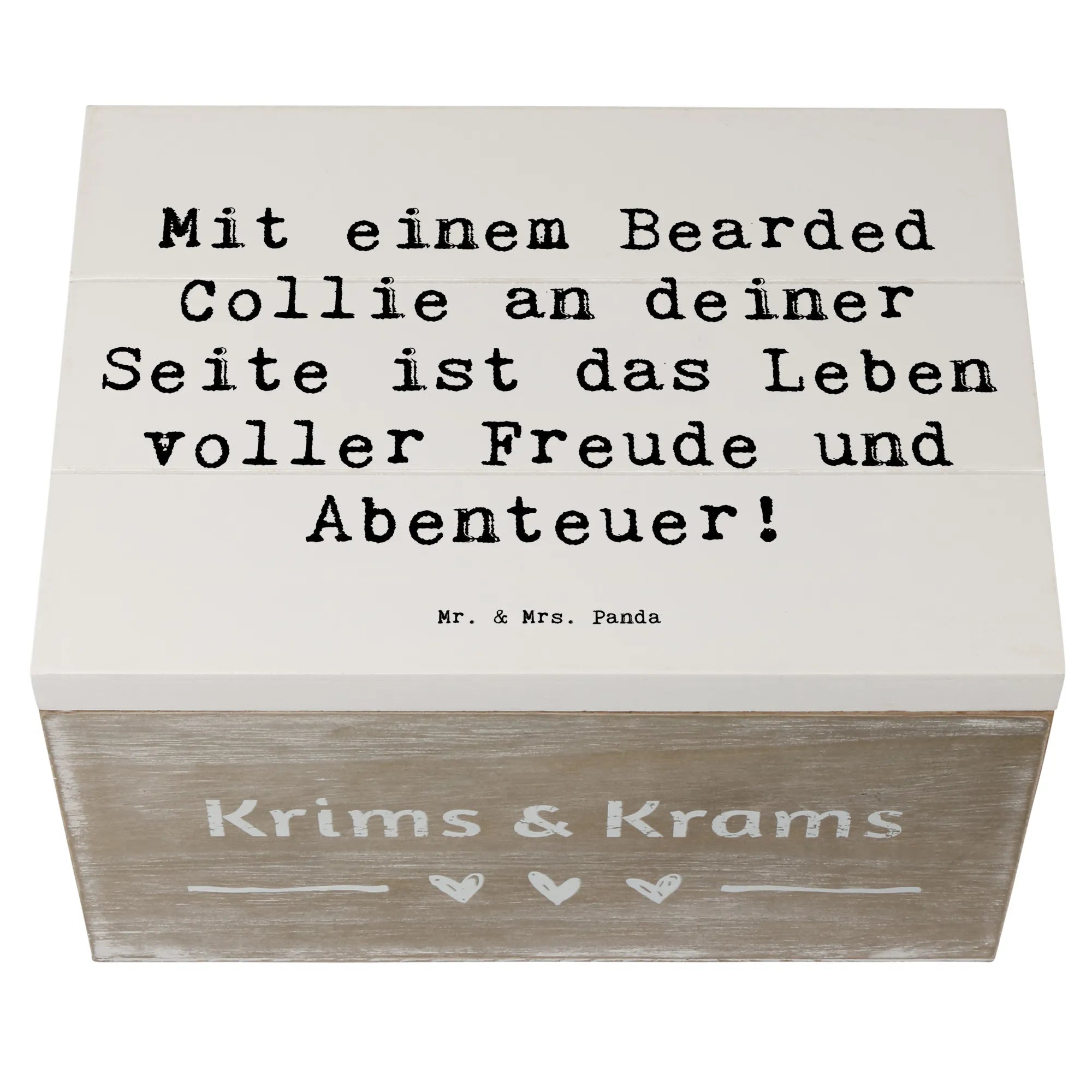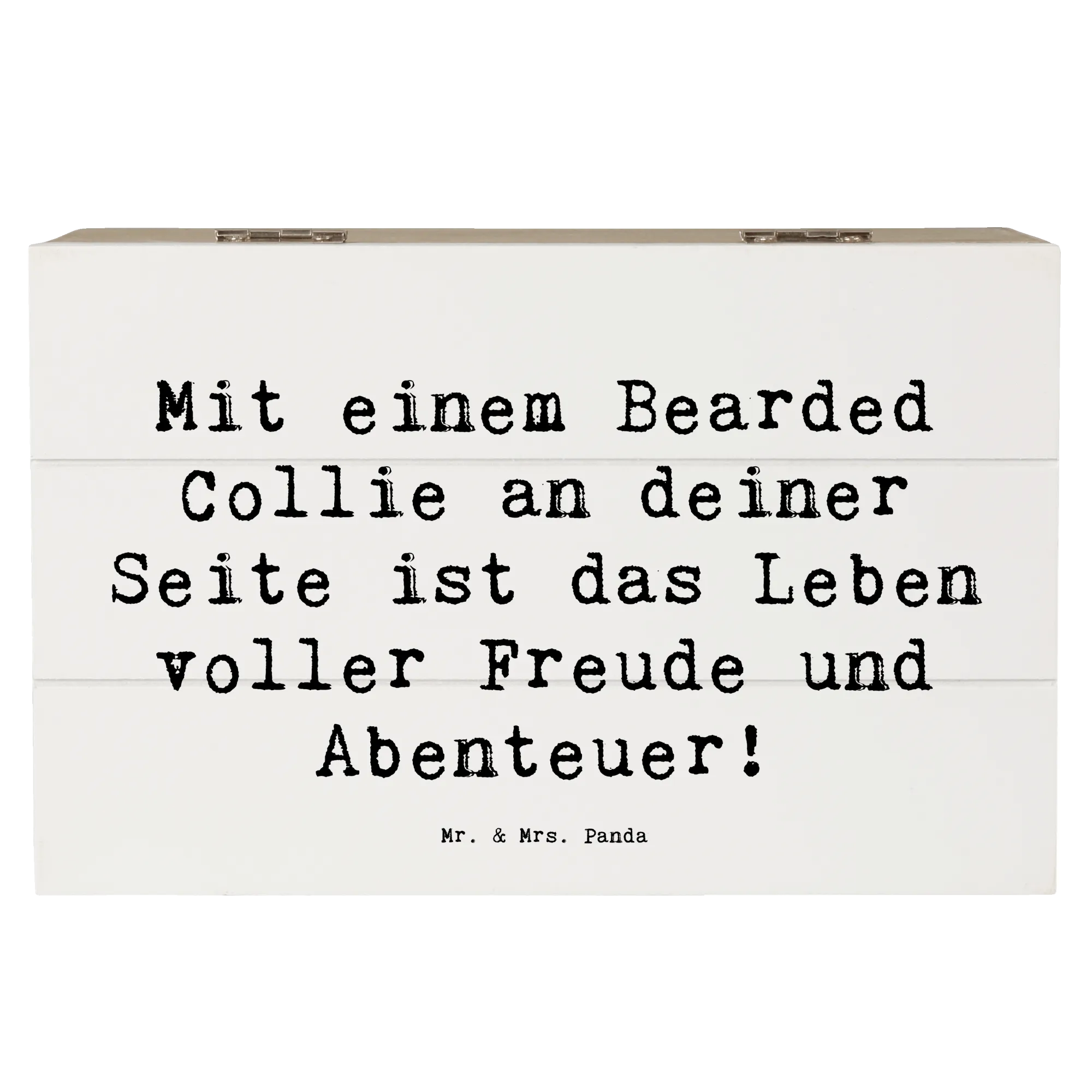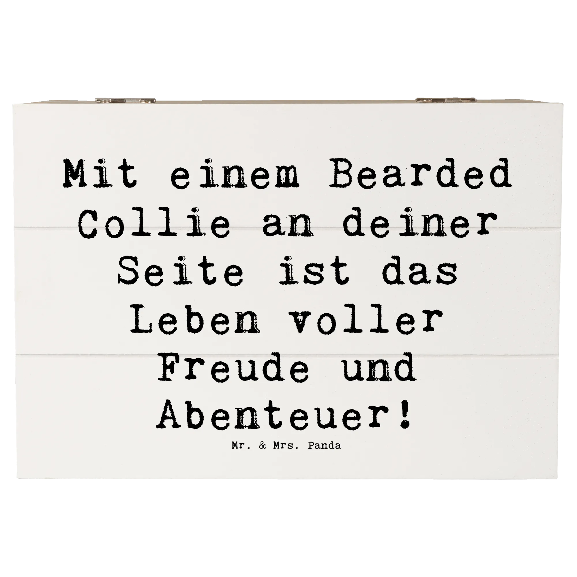 Wooden chest Saying Mit einem Bearded Collie an deiner Seite ist das Leben voller Freude und Abenteuer! - 22 x 15 cm - White