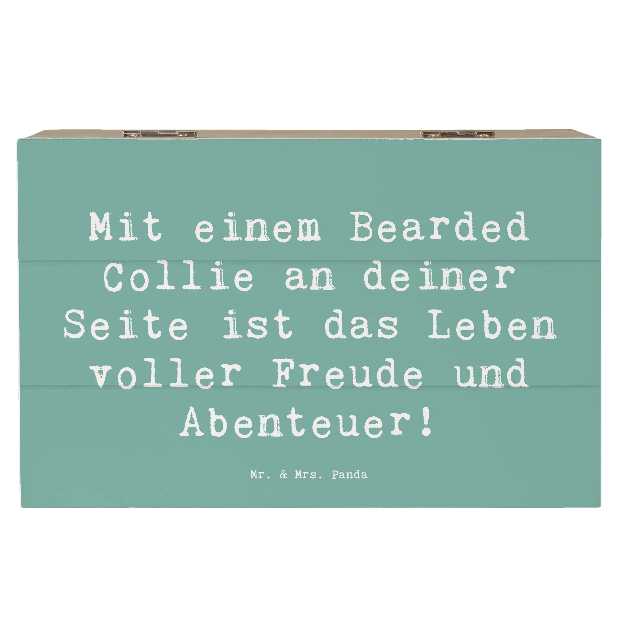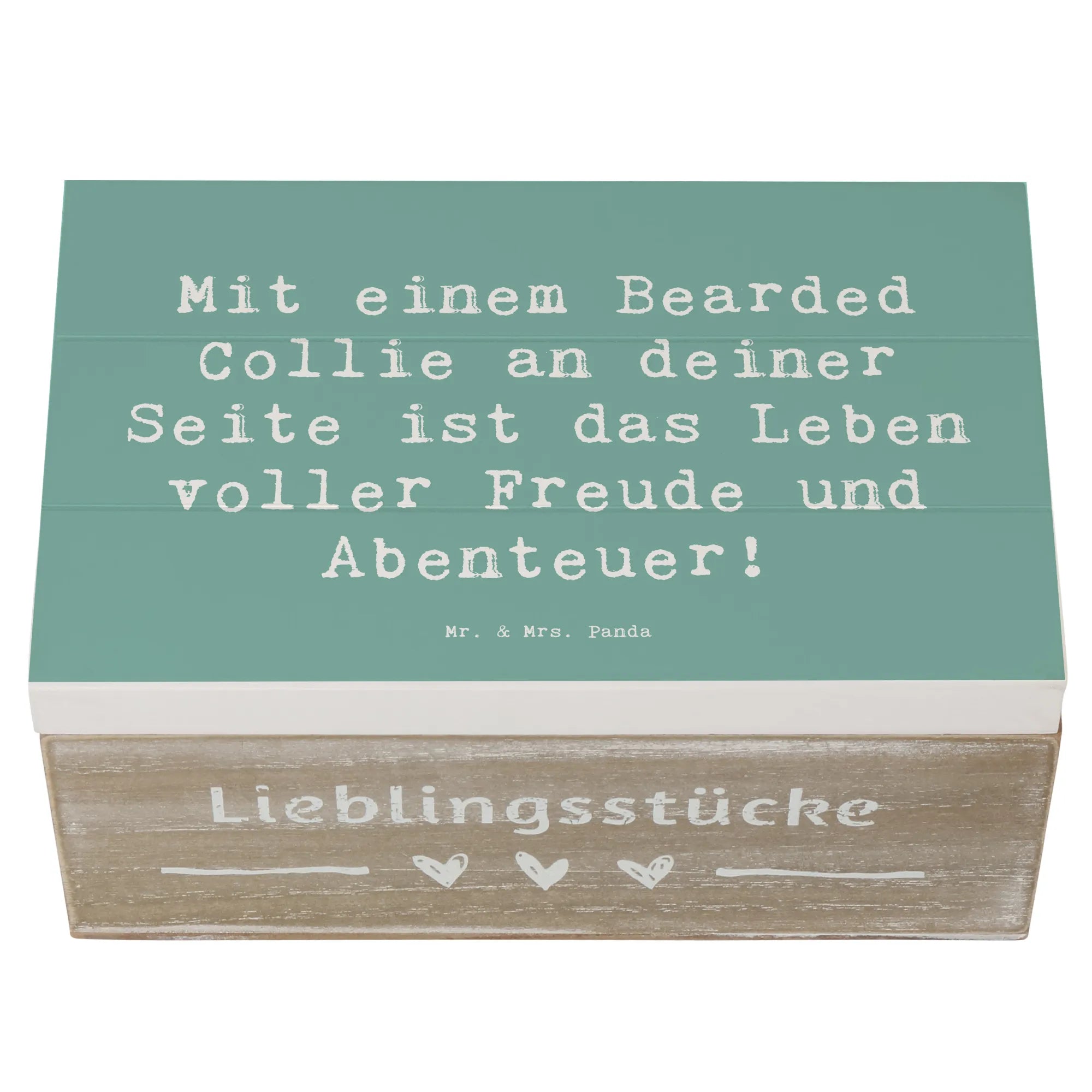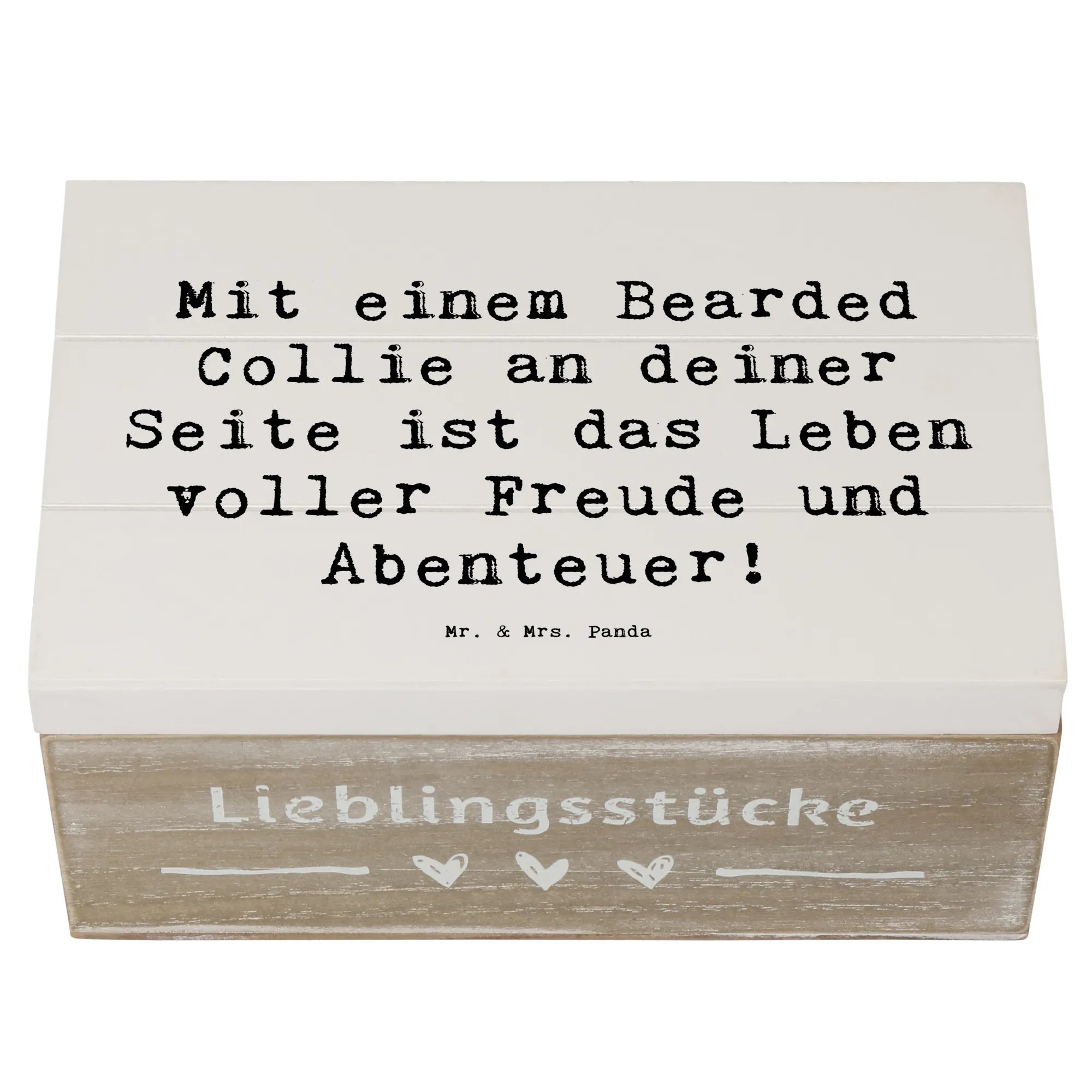Wooden chest Saying Mit einem Bearded Collie an deiner Seite ist das Leben voller Freude und Abenteuer! - 22 x 15 cm - White