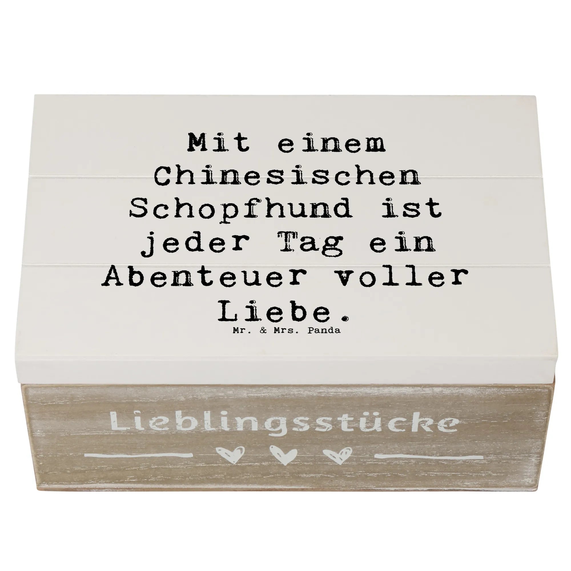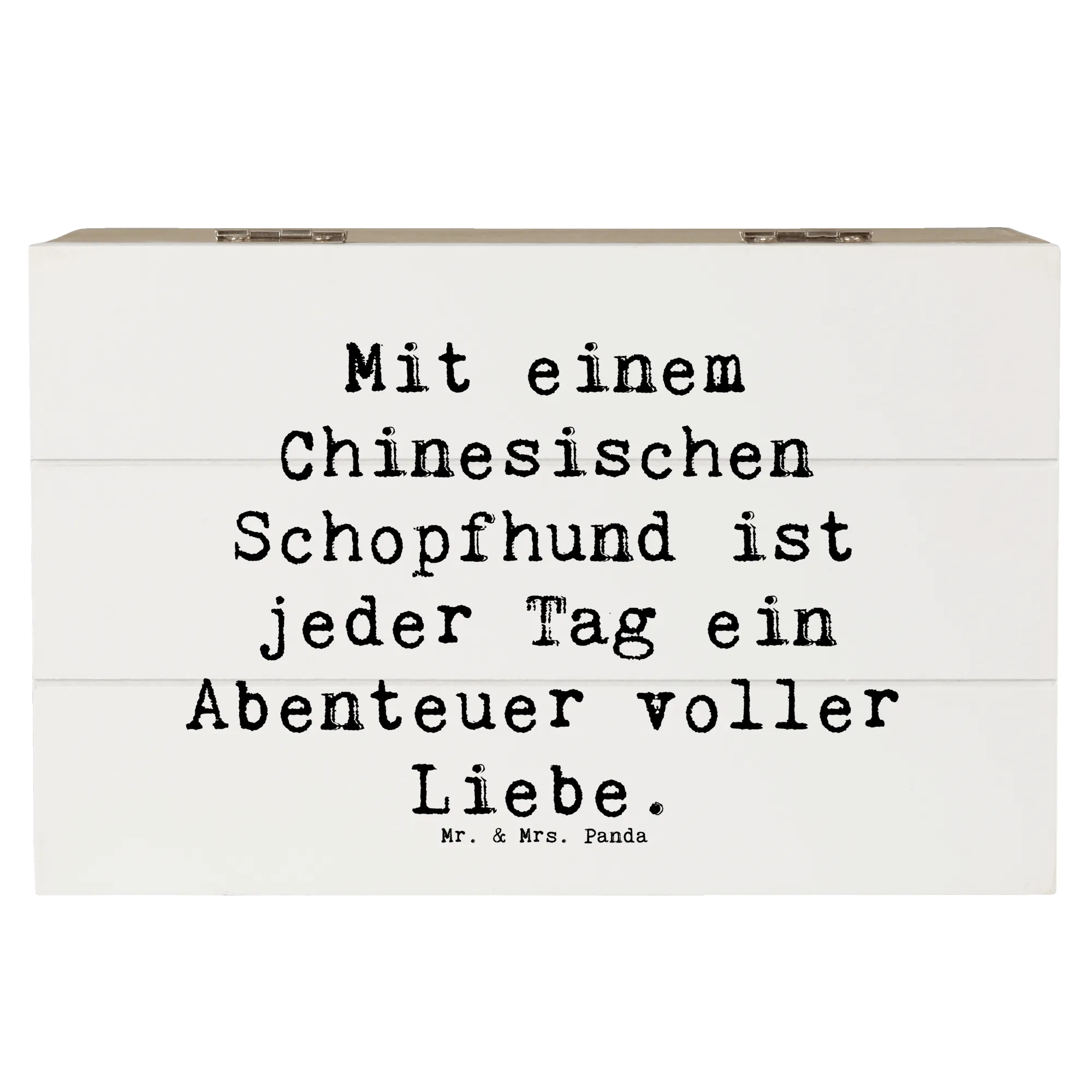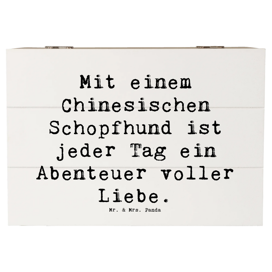 Wooden chest Saying Mit einem Chinesischen Schopfhund ist jeder Tag ein Abenteuer voller Liebe. - 22 x 15 cm - White