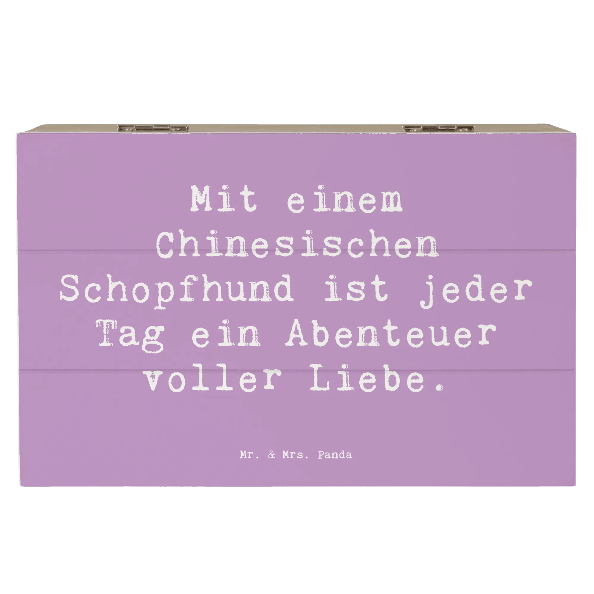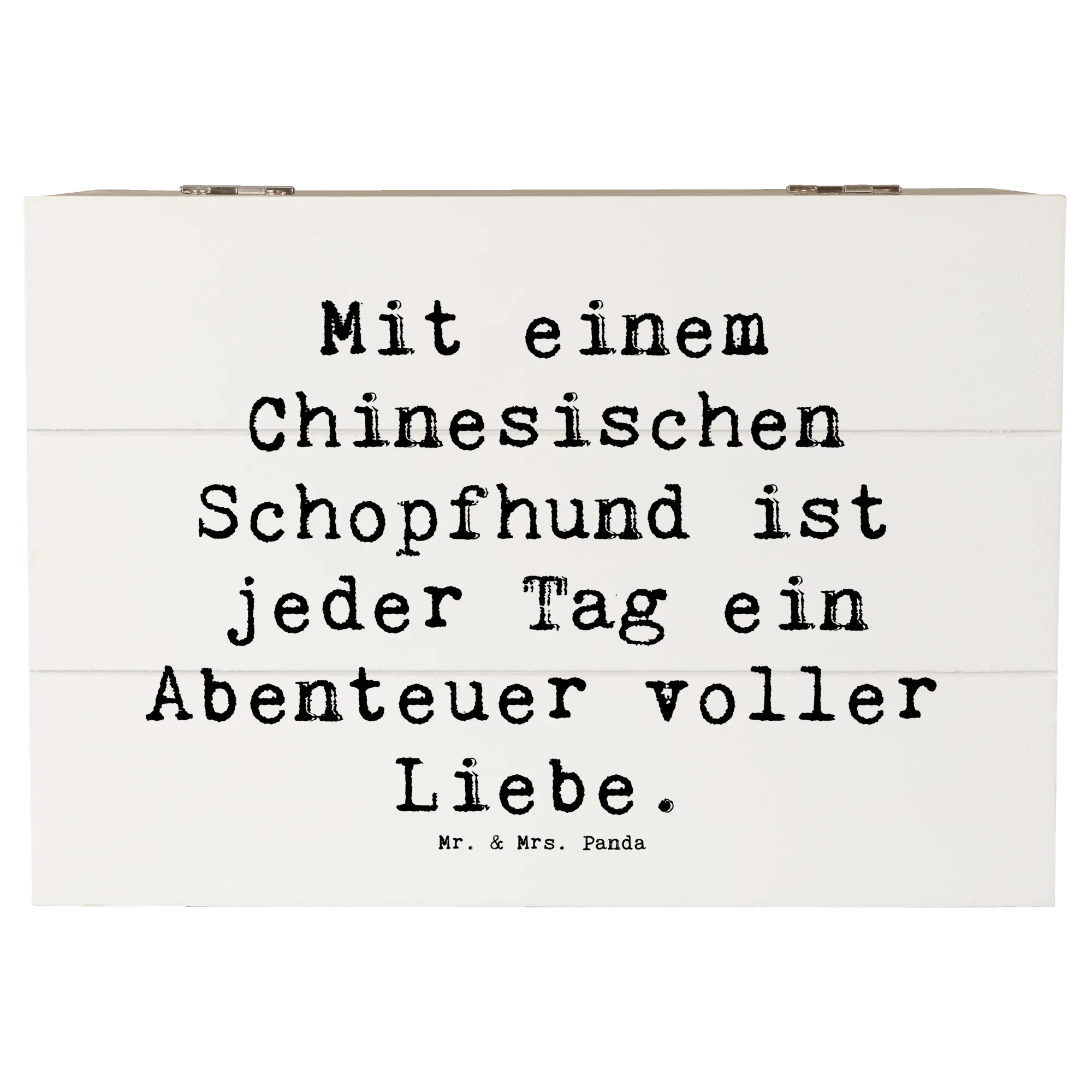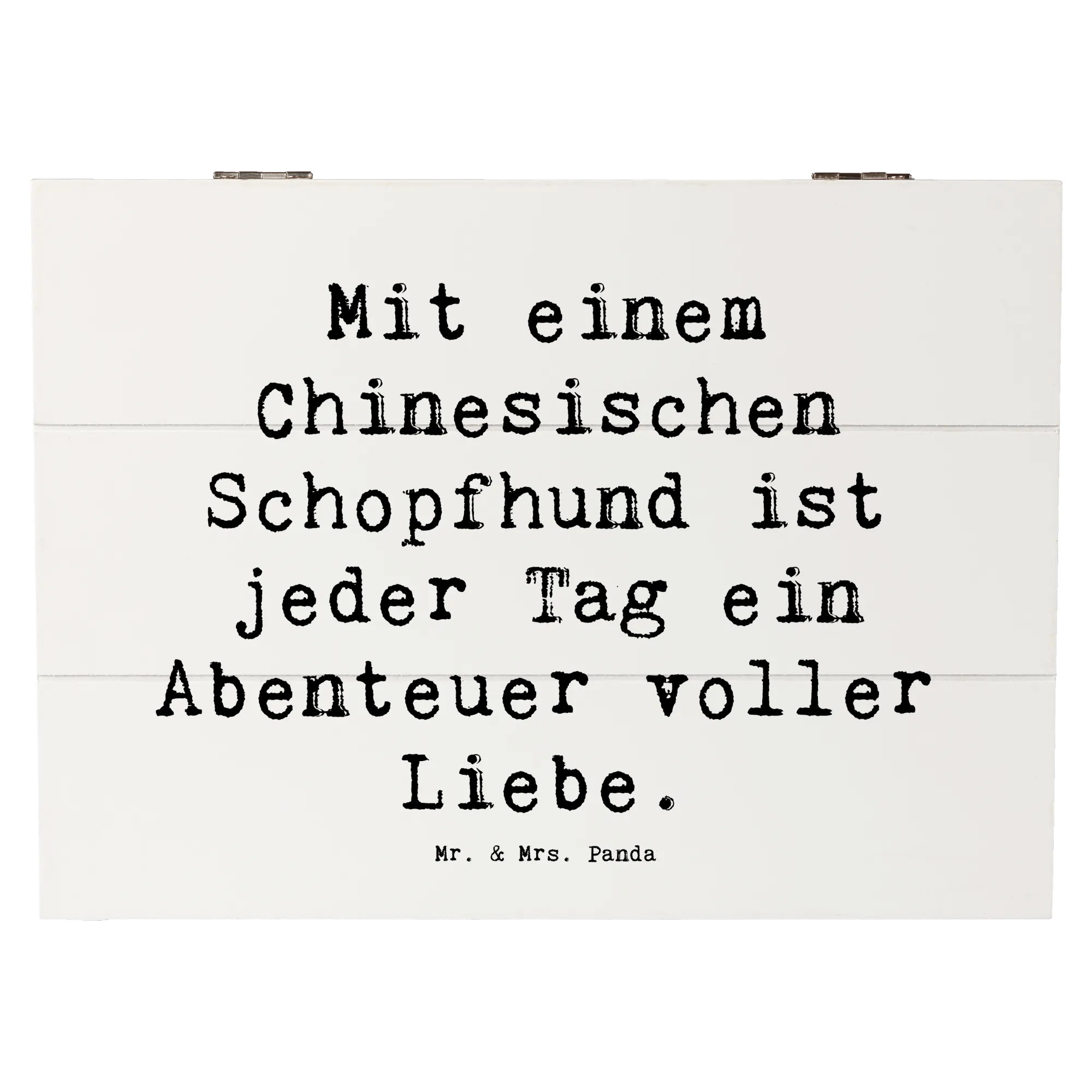 Wooden chest Saying Mit einem Chinesischen Schopfhund ist jeder Tag ein Abenteuer voller Liebe. - 22 x 15 cm - White