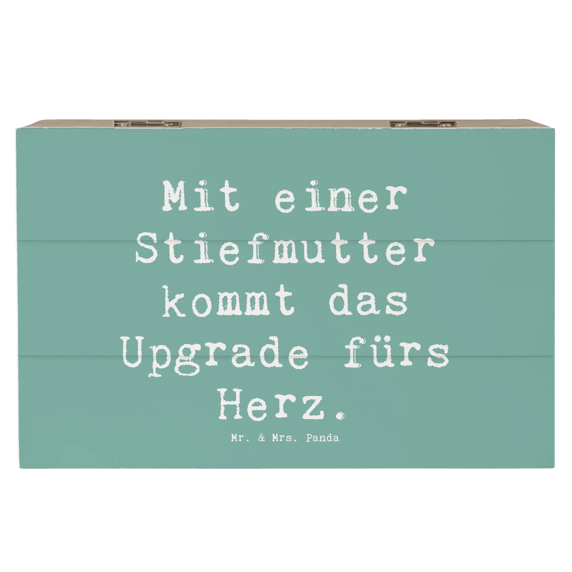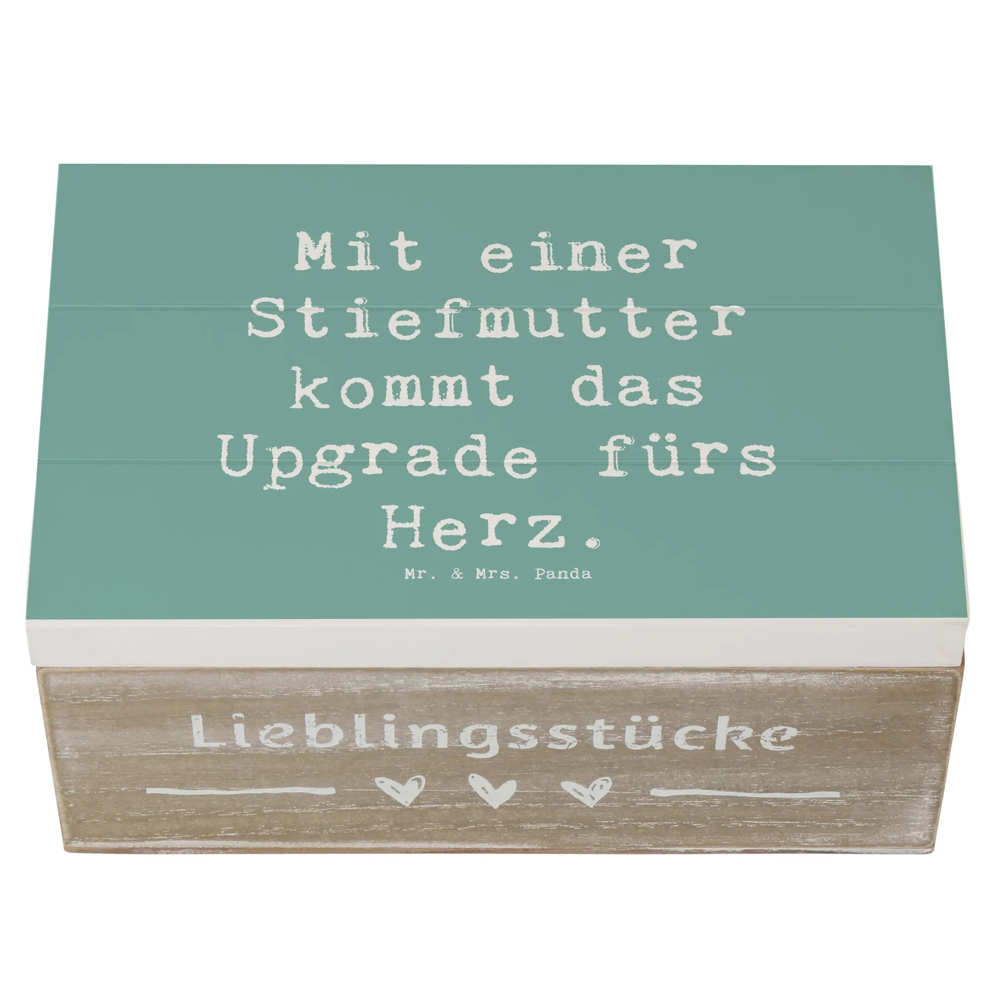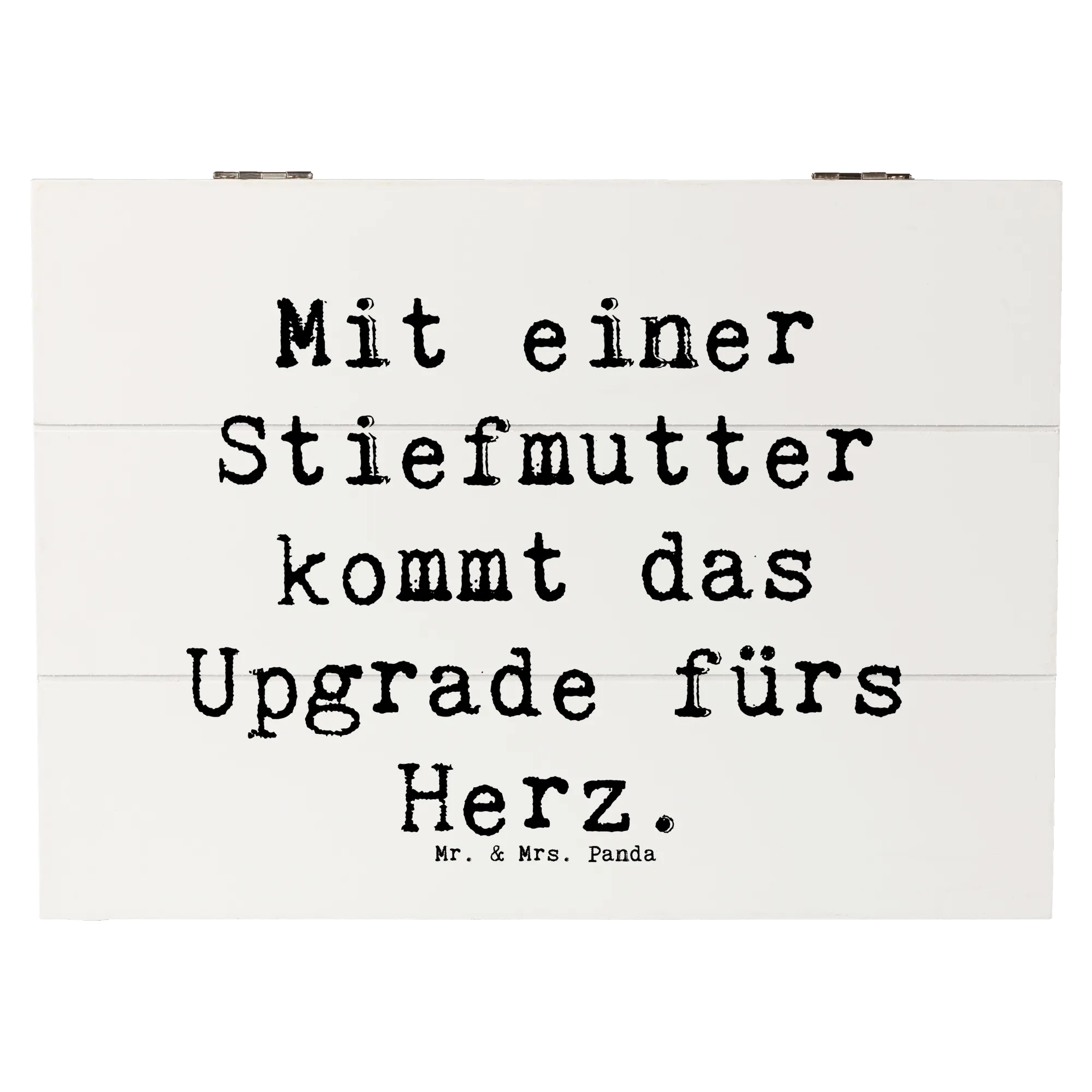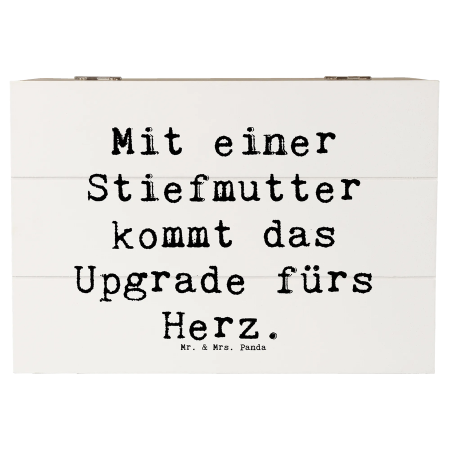 Wooden chest Saying Mit einer Stiefmutter kommt das Upgrade fürs Herz. - 22 x 15 cm - White