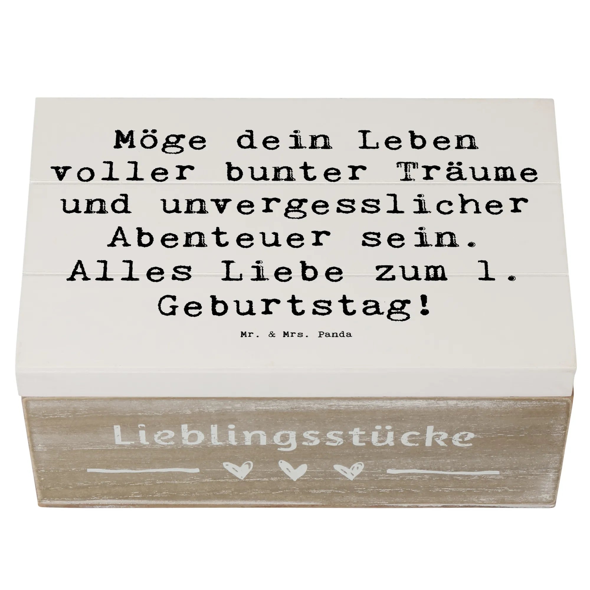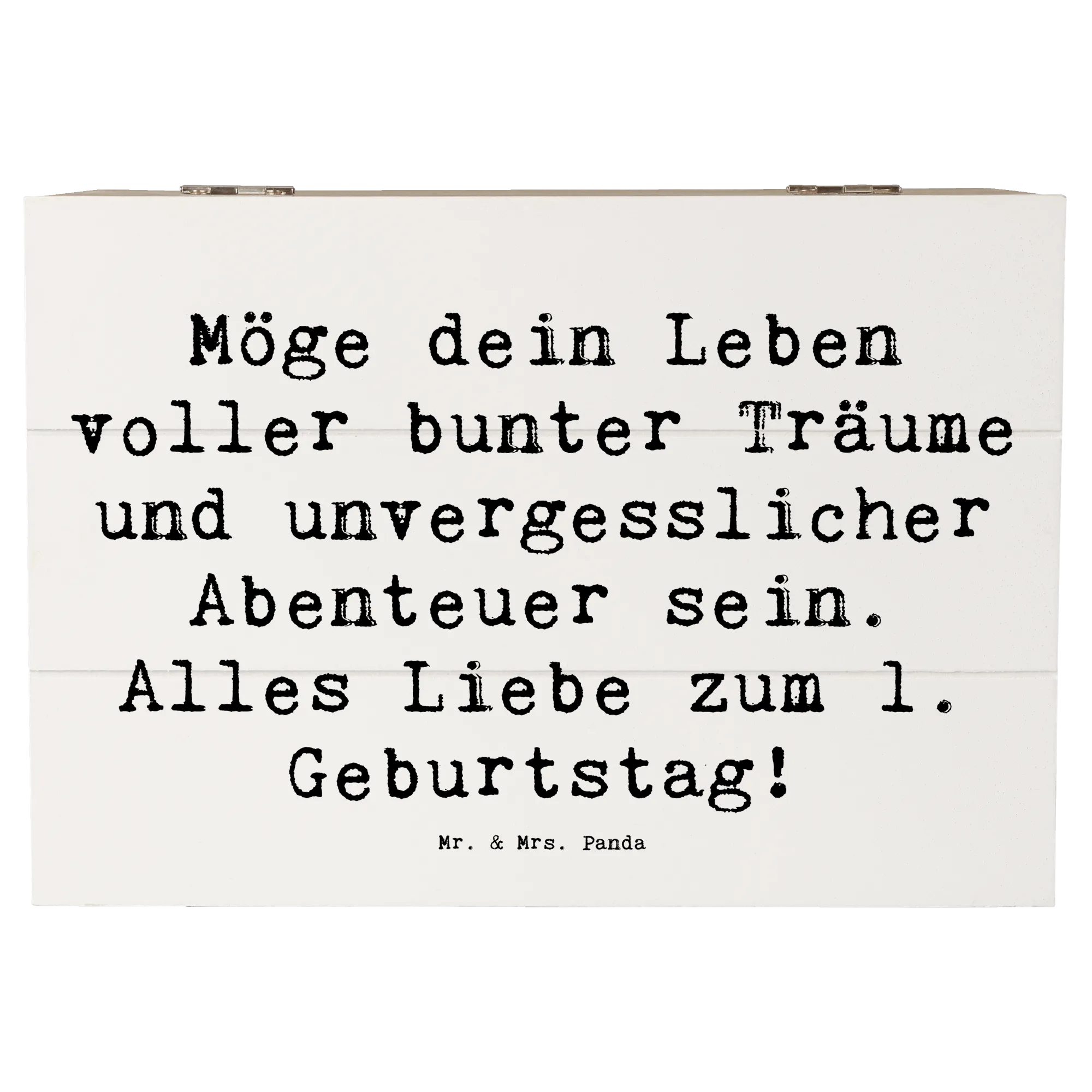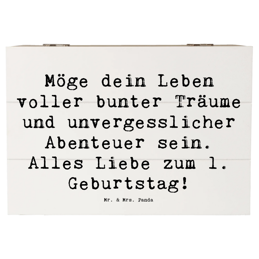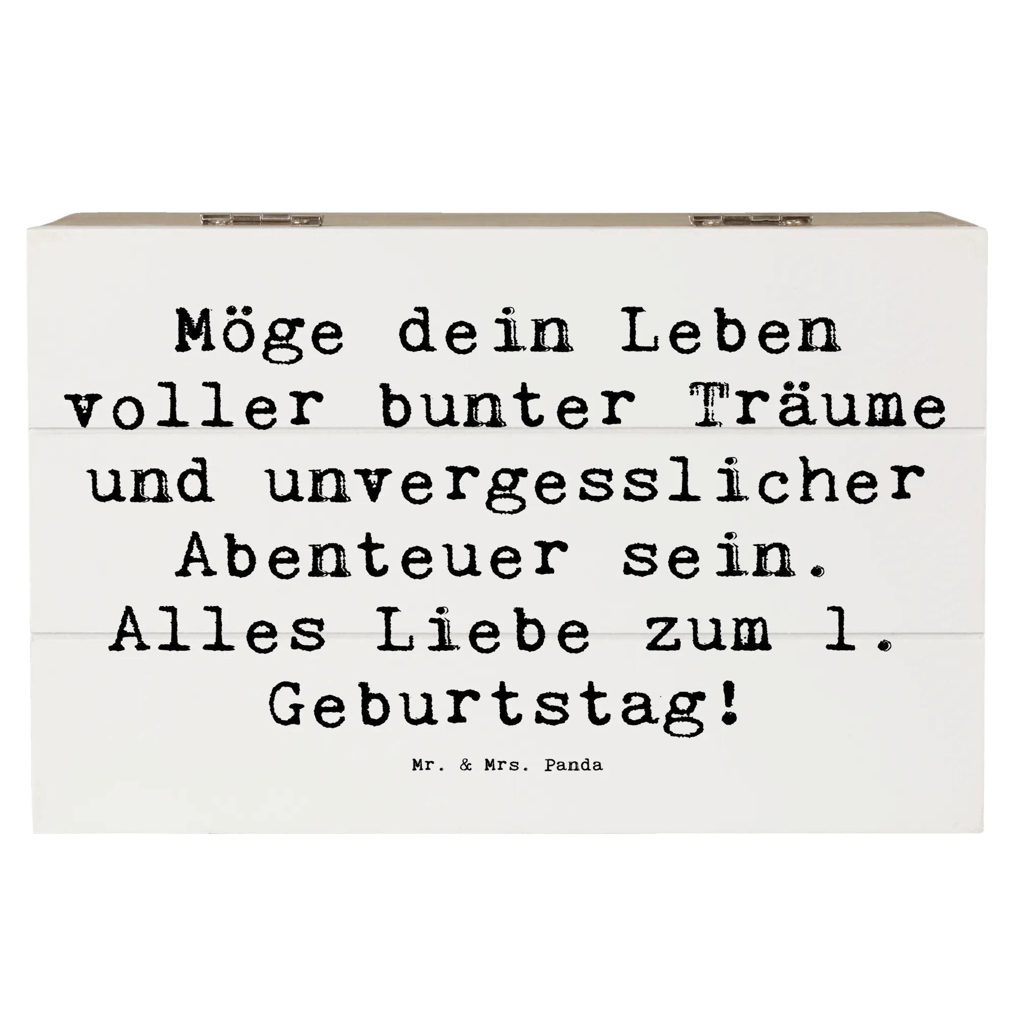 Wooden chest Saying Möge dein Leben voller bunter Träume und unvergesslicher Abenteuer sein. Alles Liebe zum 1. Geburtstag! - 22 x 15 cm - White
