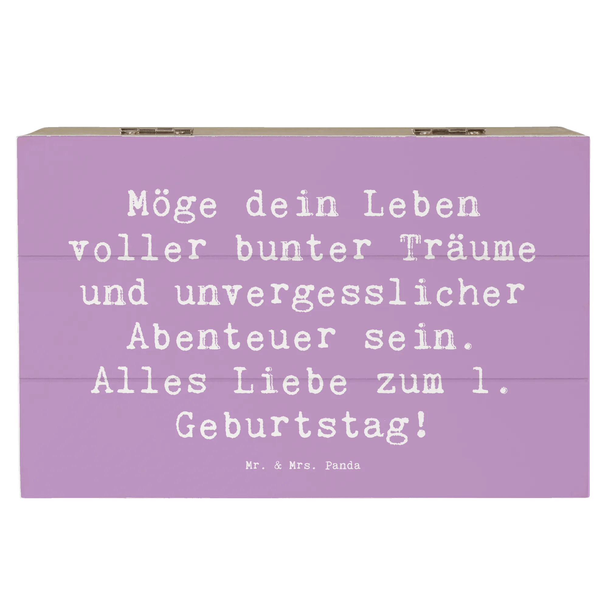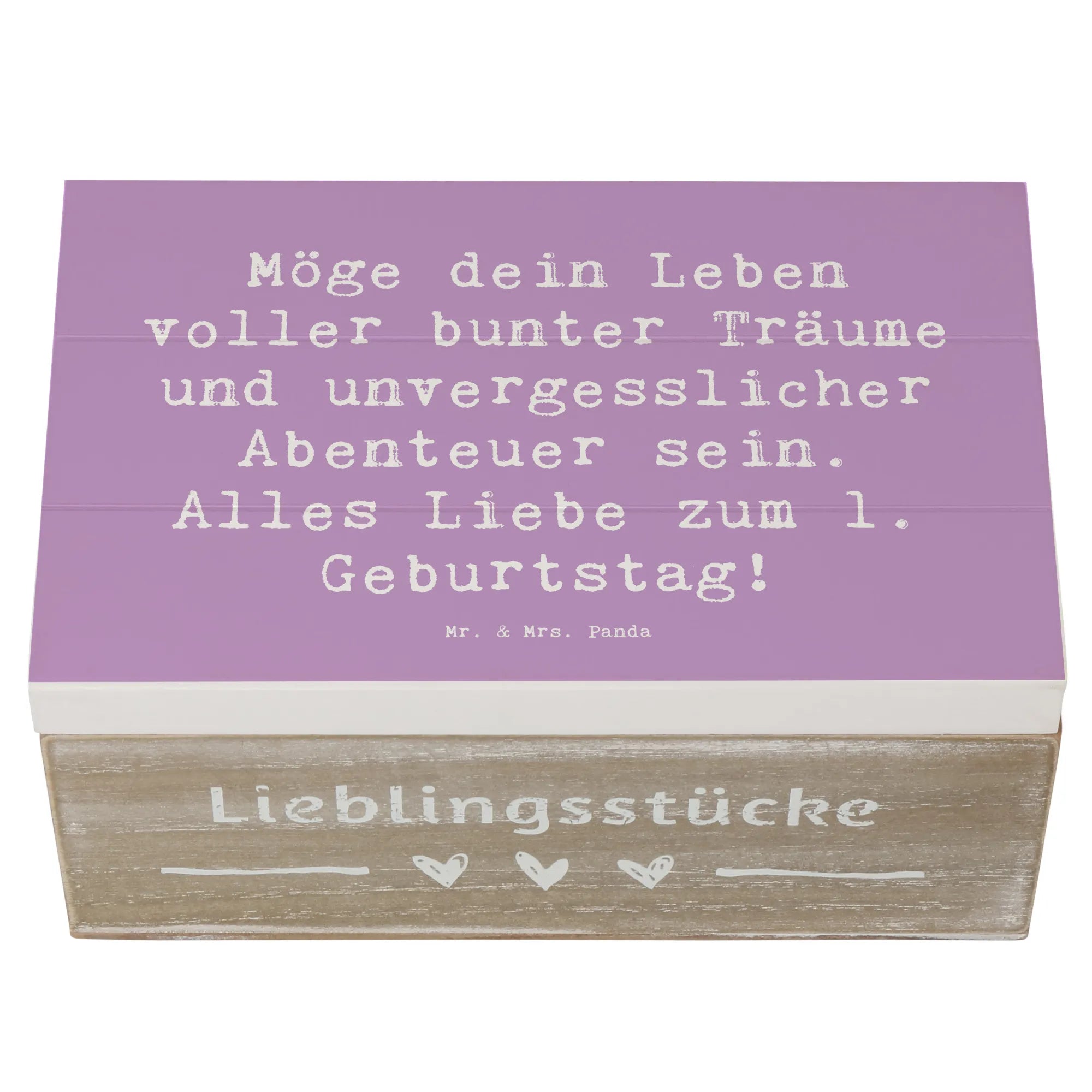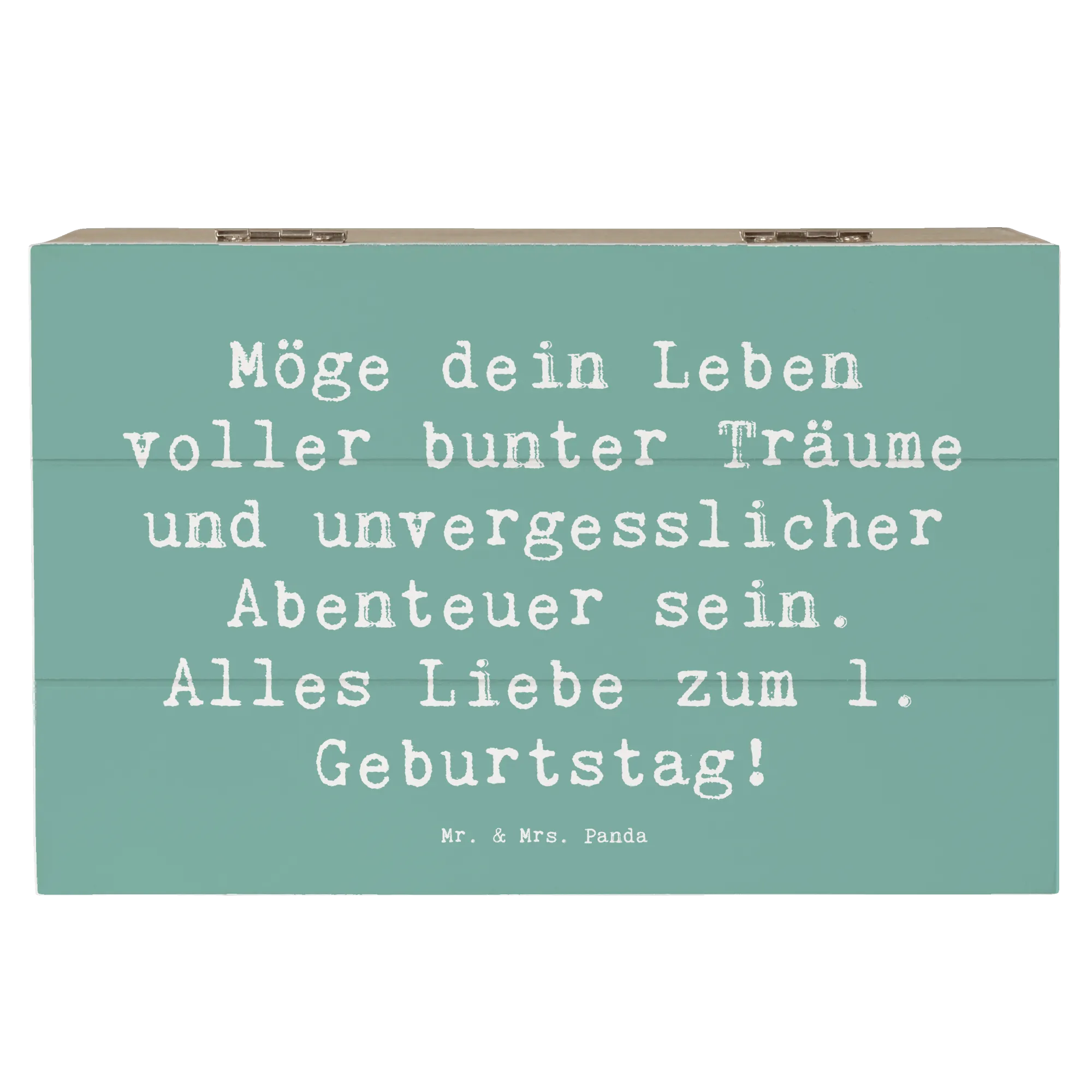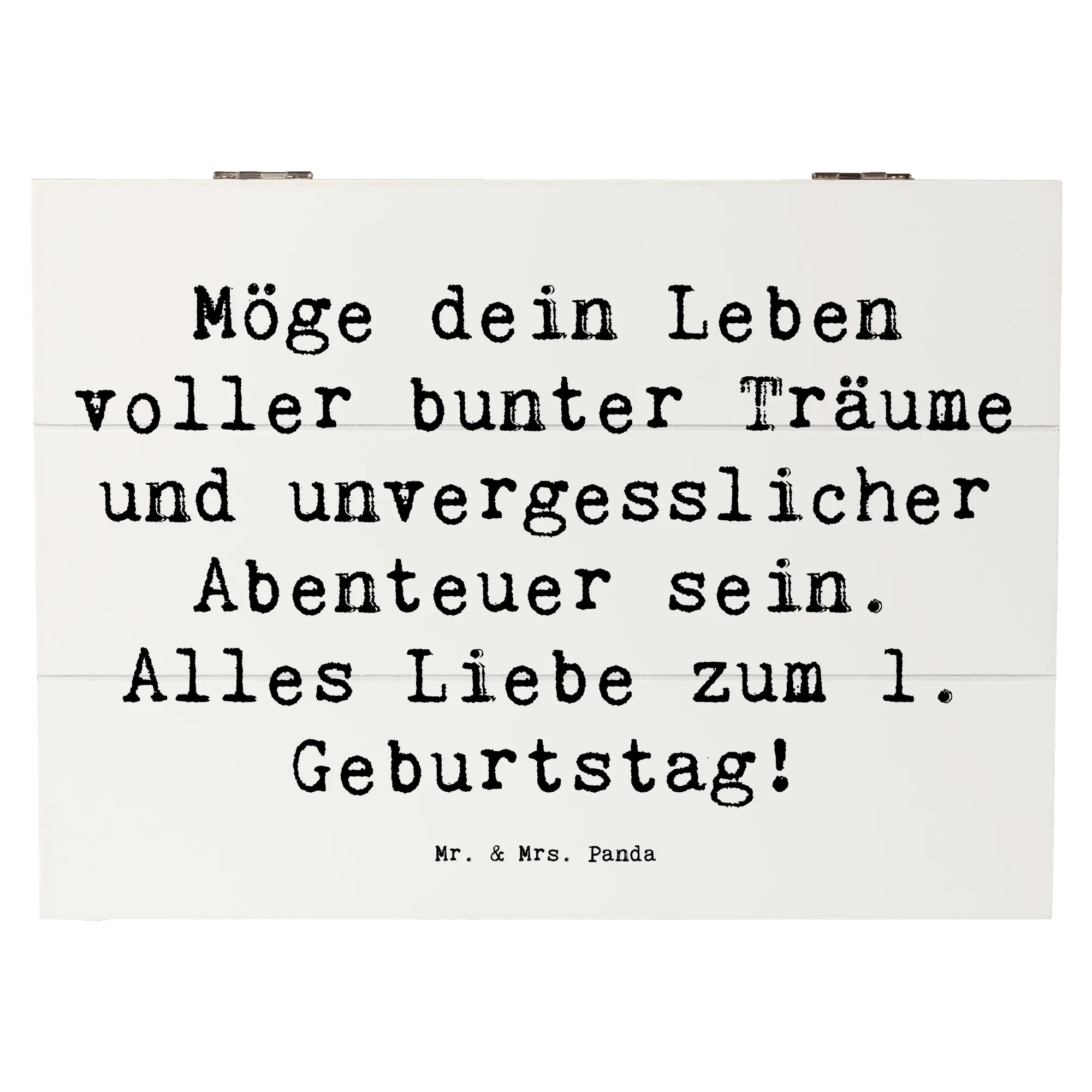 Wooden chest Saying Möge dein Leben voller bunter Träume und unvergesslicher Abenteuer sein. Alles Liebe zum 1. Geburtstag! - 22 x 15 cm - White