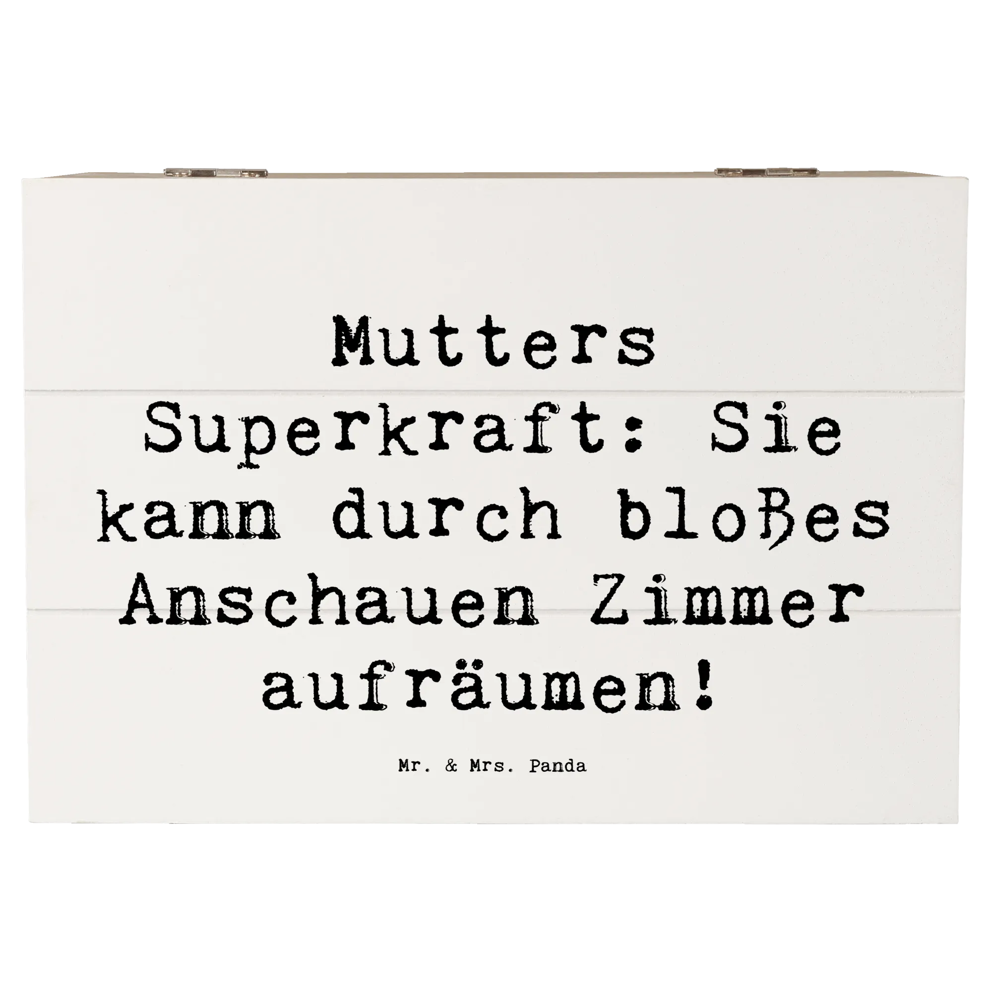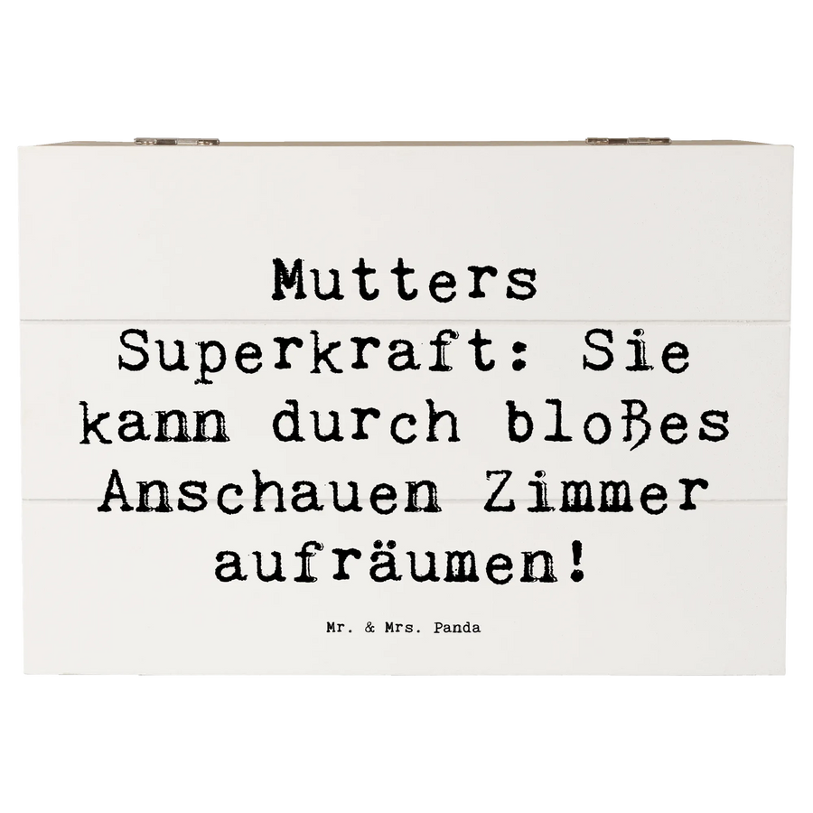 Wooden chest Saying Mutters Superkraft: Sie kann durch bloßes Anschauen Zimmer aufräumen! - 22 x 15 cm - White