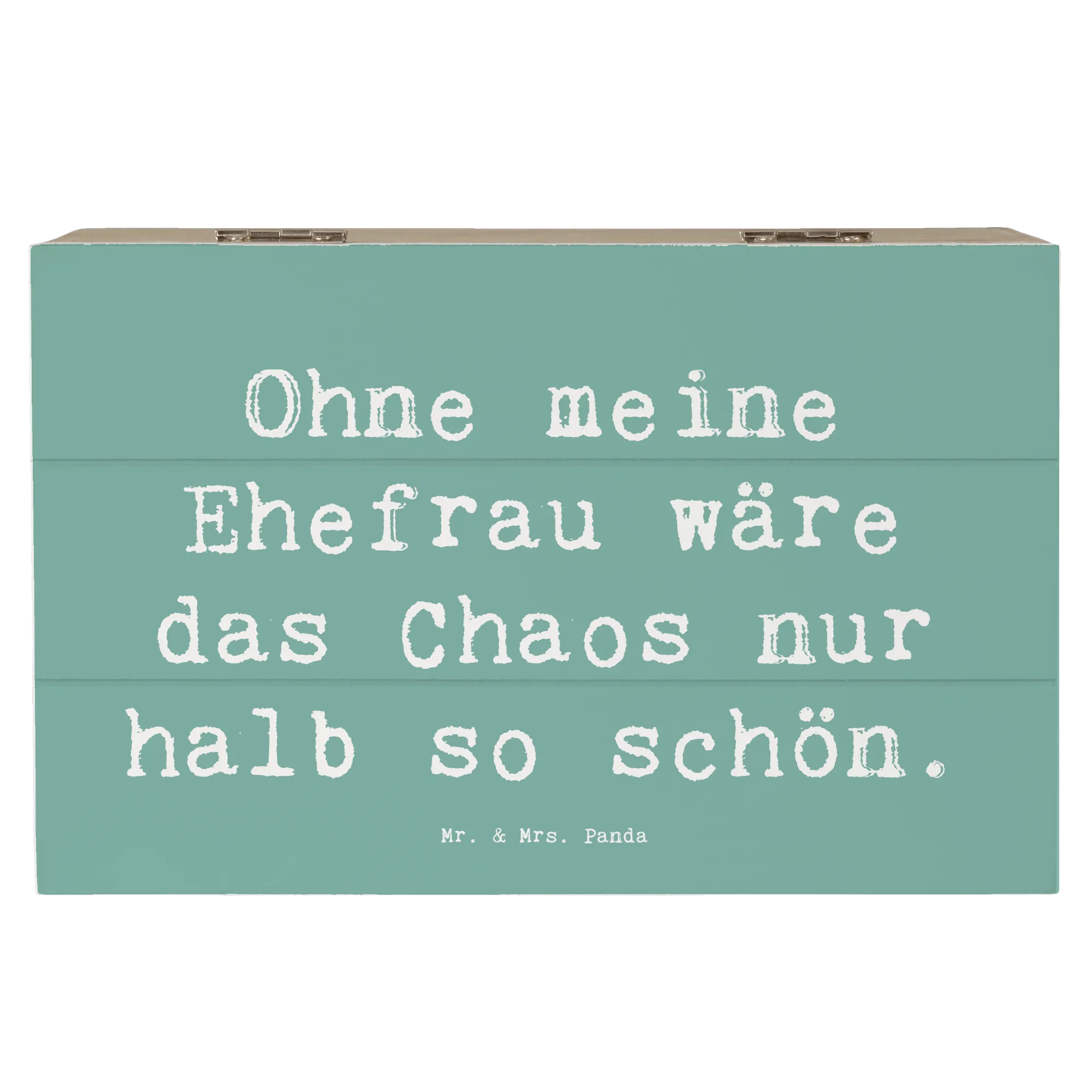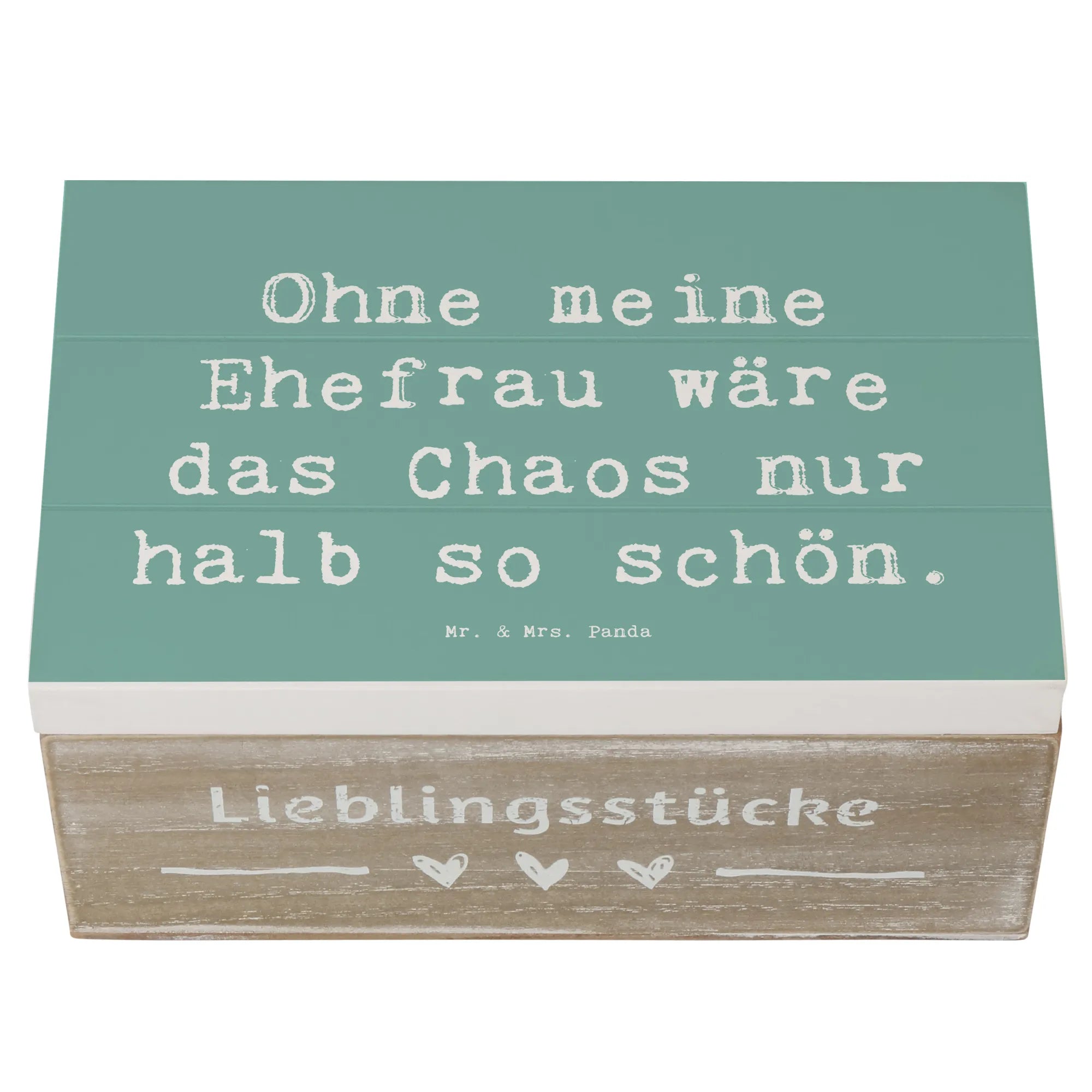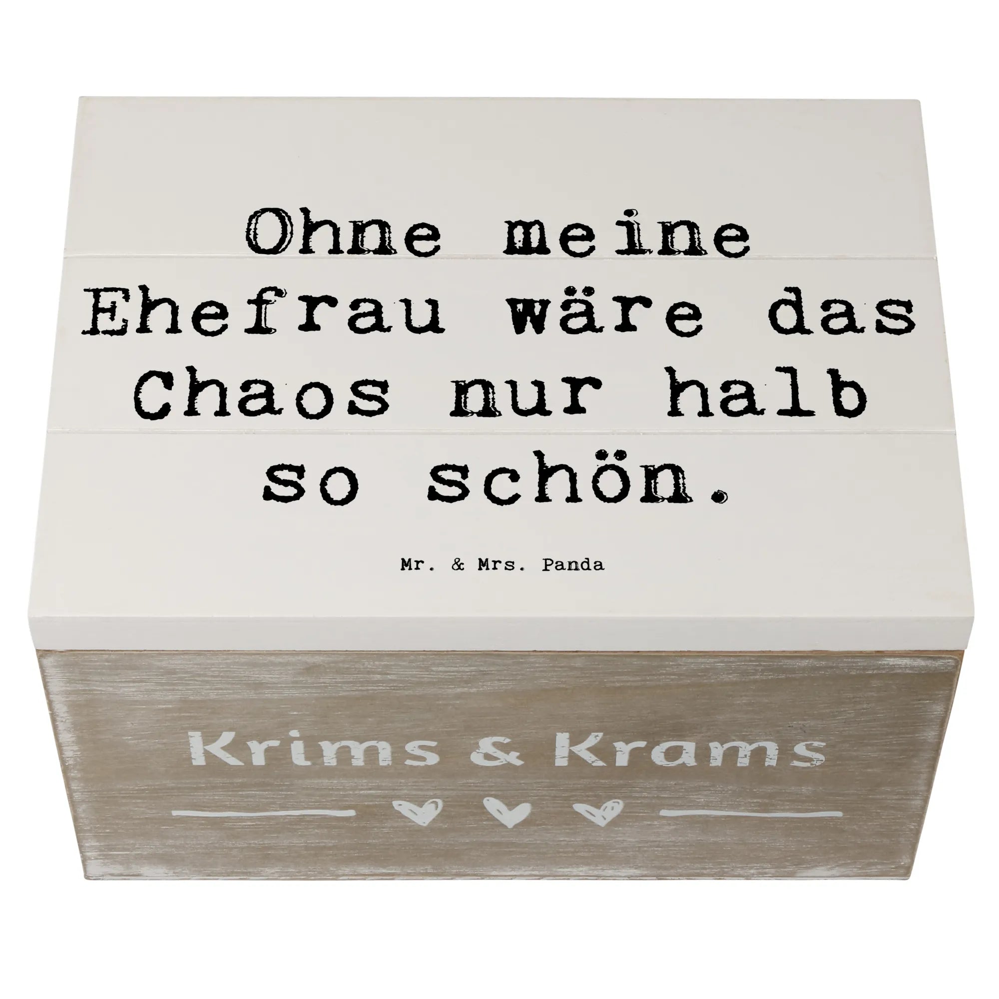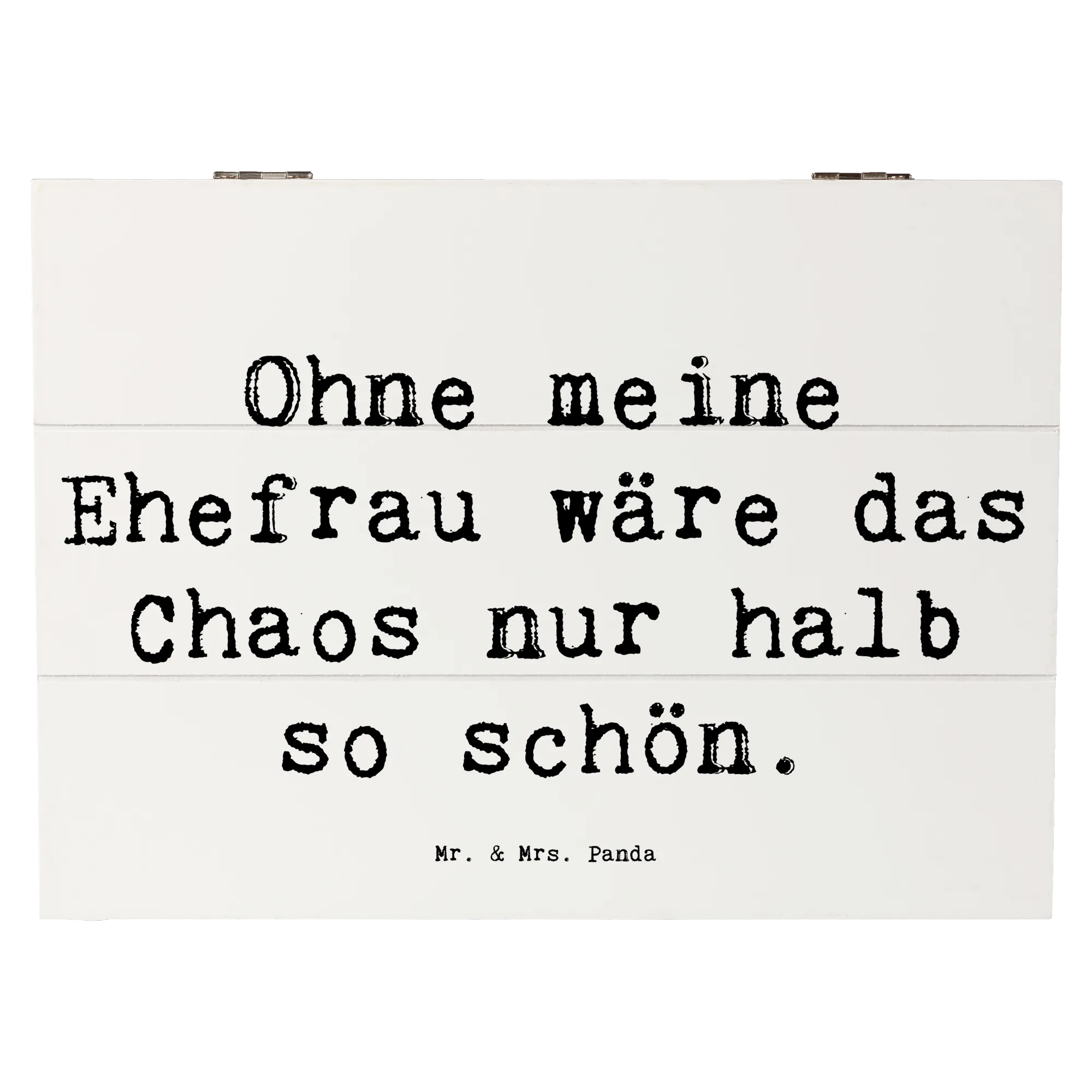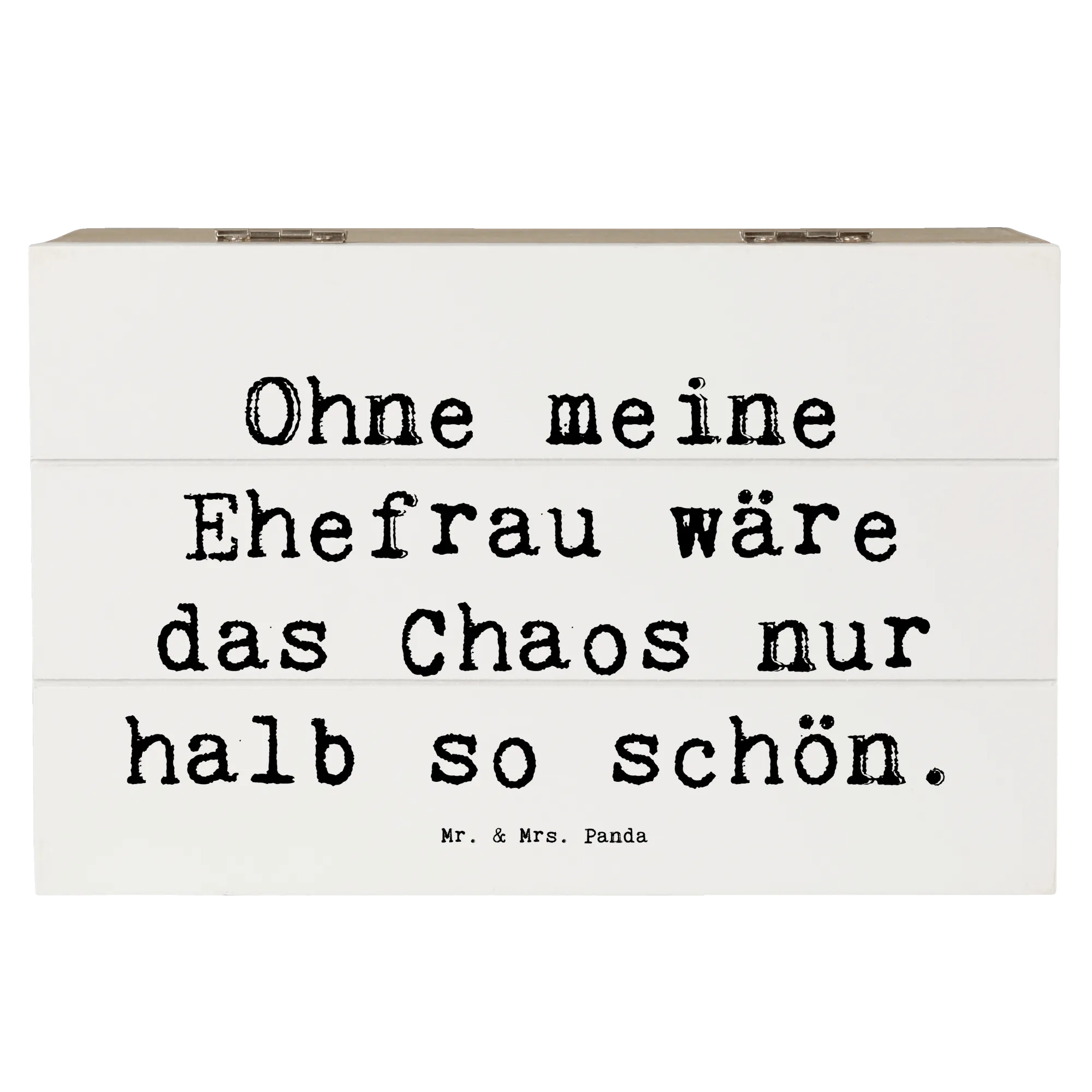 Wooden chest Saying Ohne meine Ehefrau wäre das Chaos nur halb so schön. - 22 x 15 cm - White