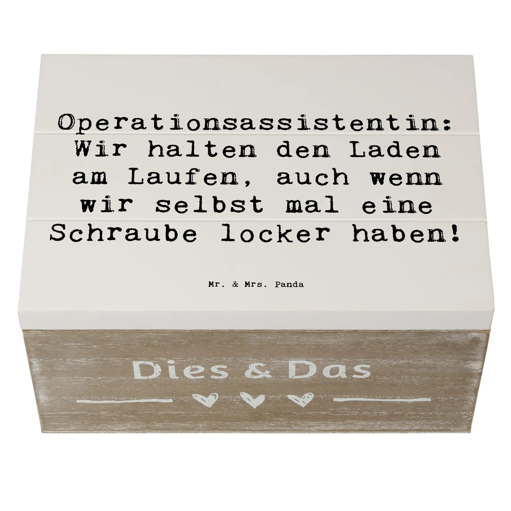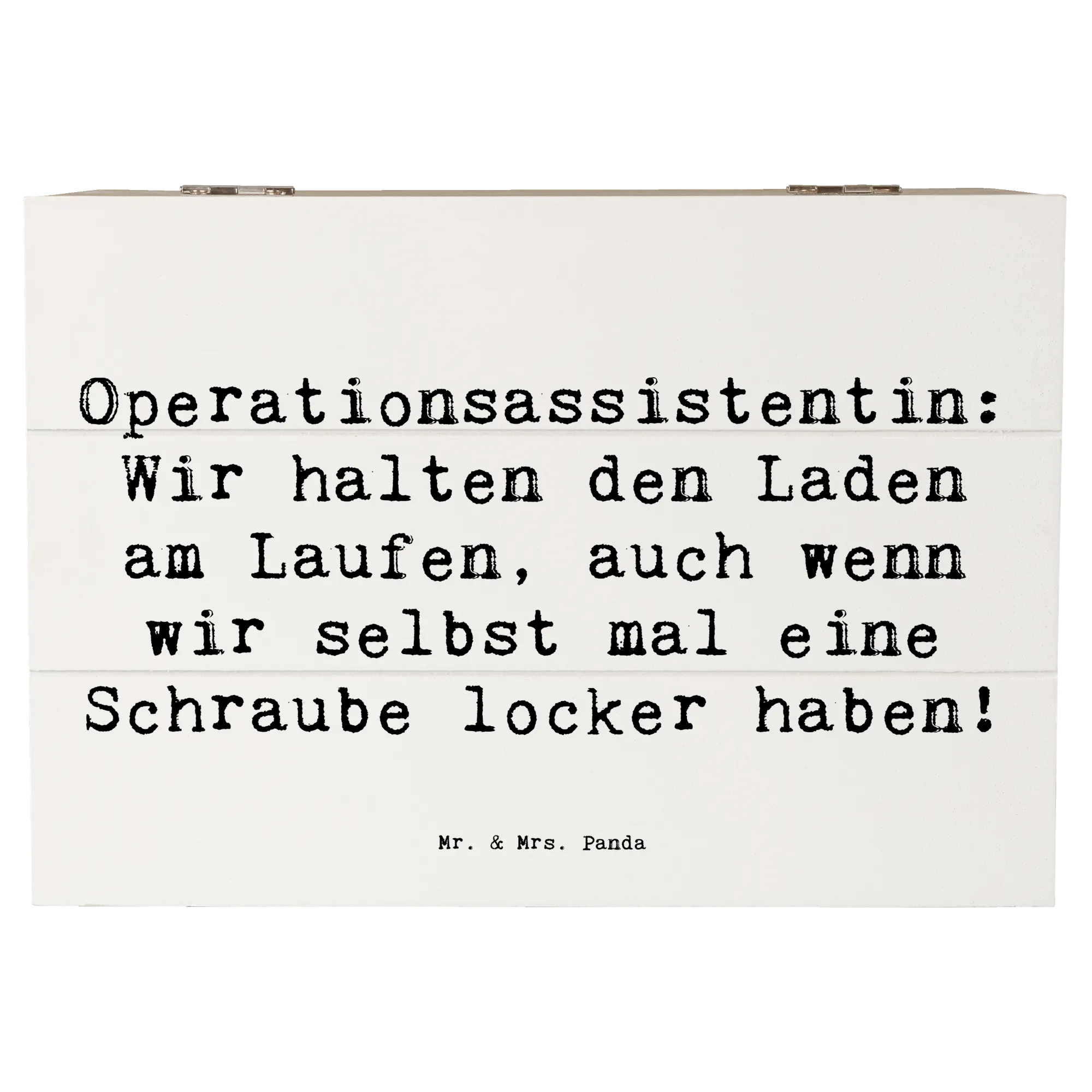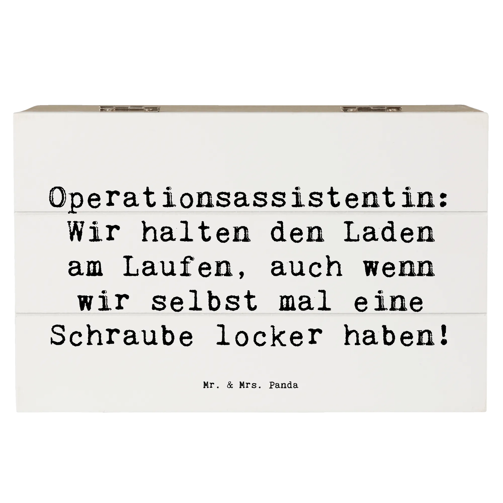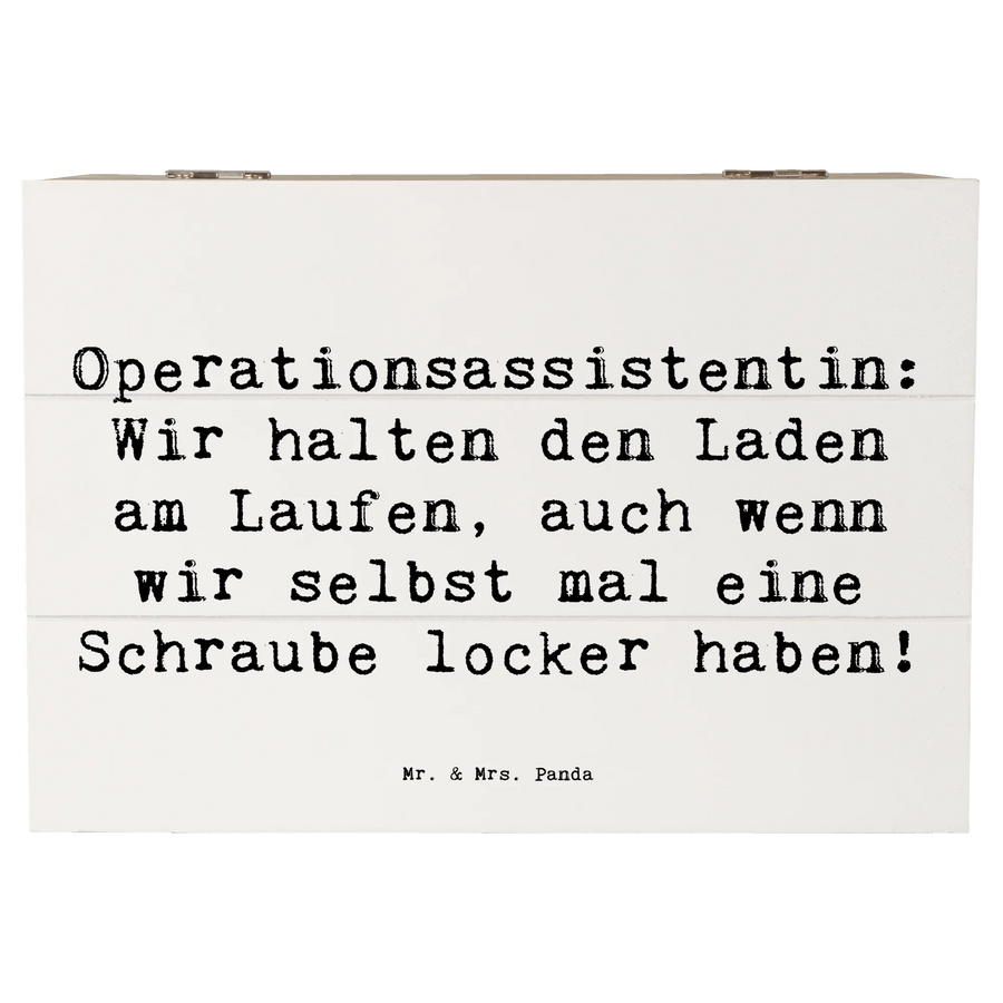 Wooden chest Saying Operationsassistentin: Wir halten den Laden am Laufen, auch wenn wir selbst mal eine Schraube locker haben! - 22 x 15 cm - White