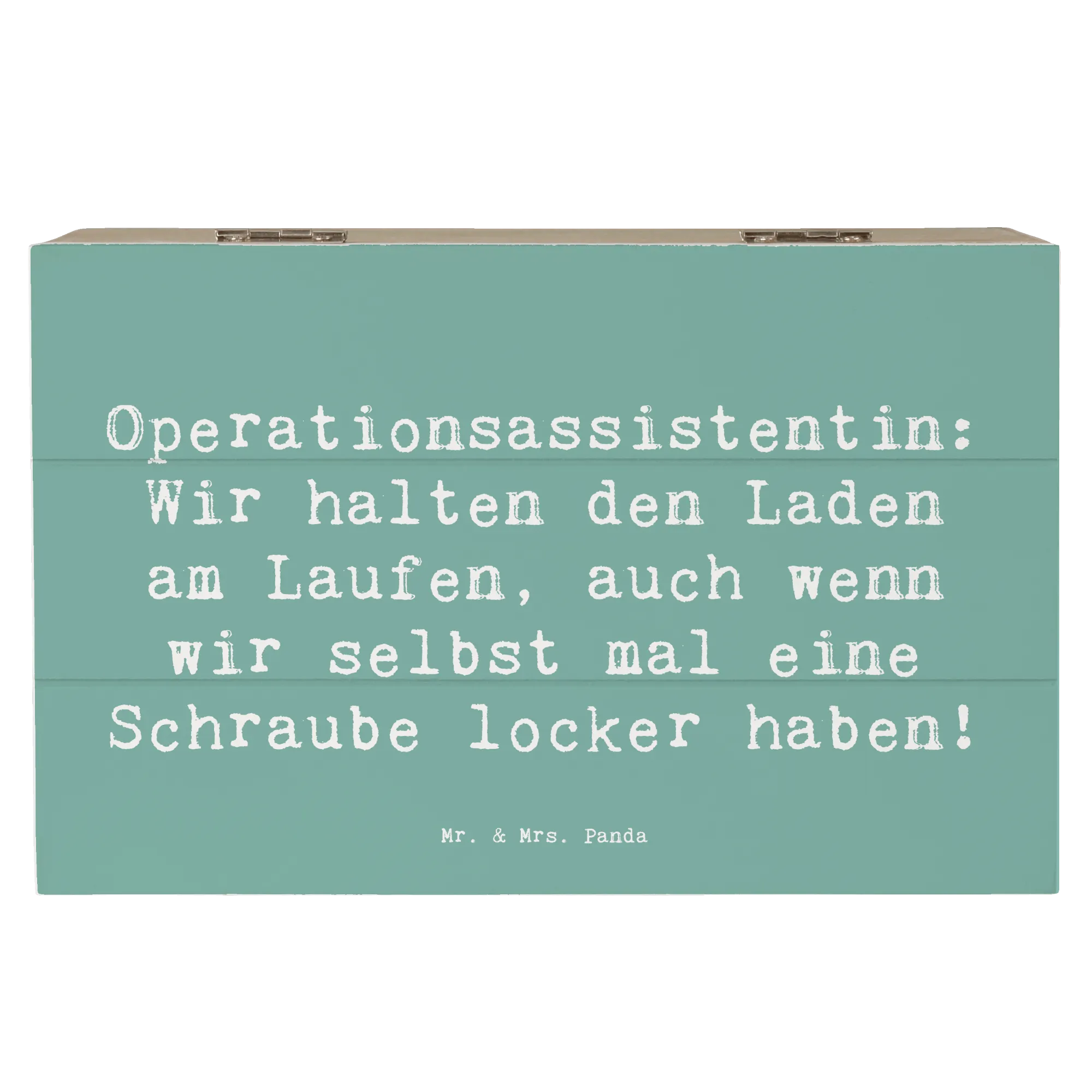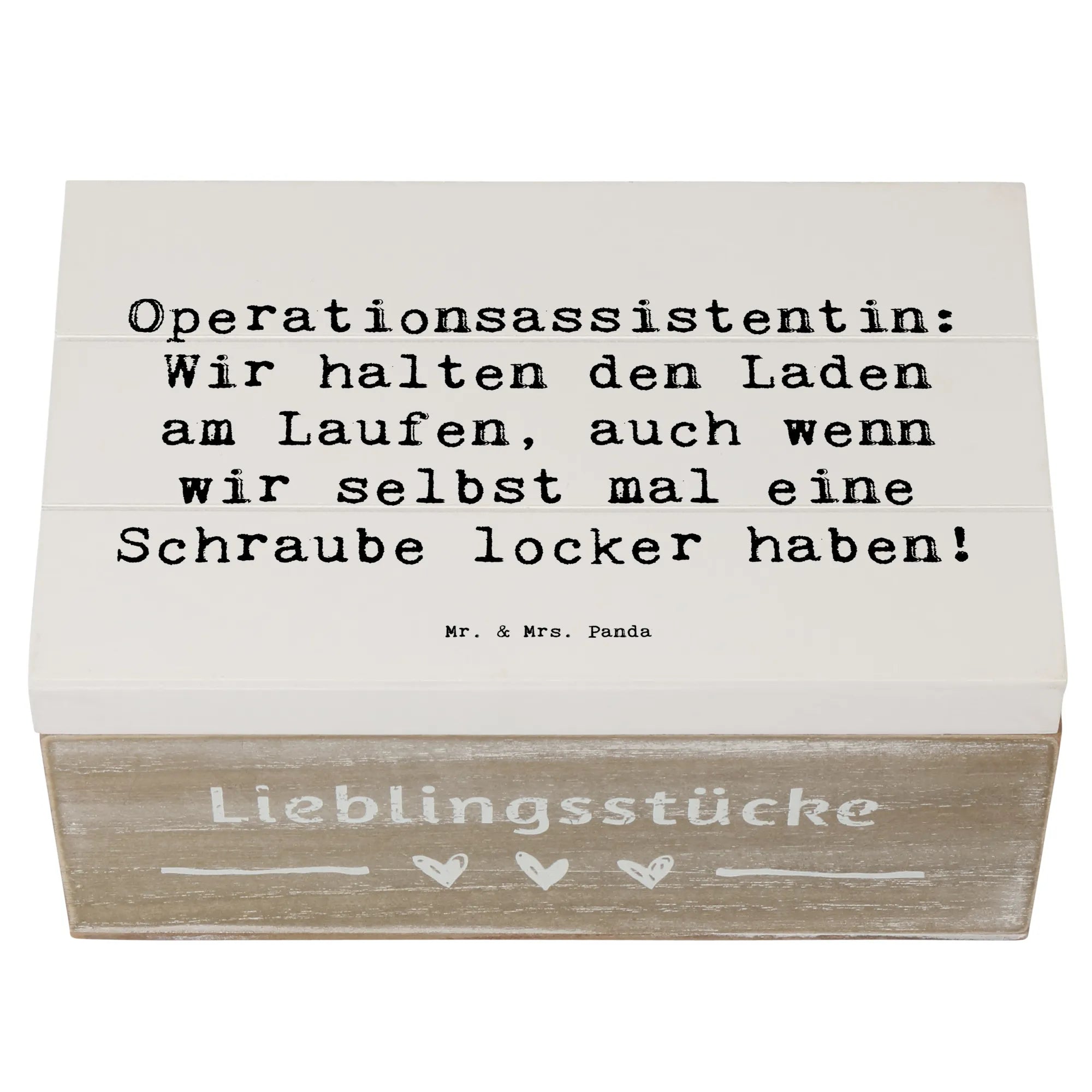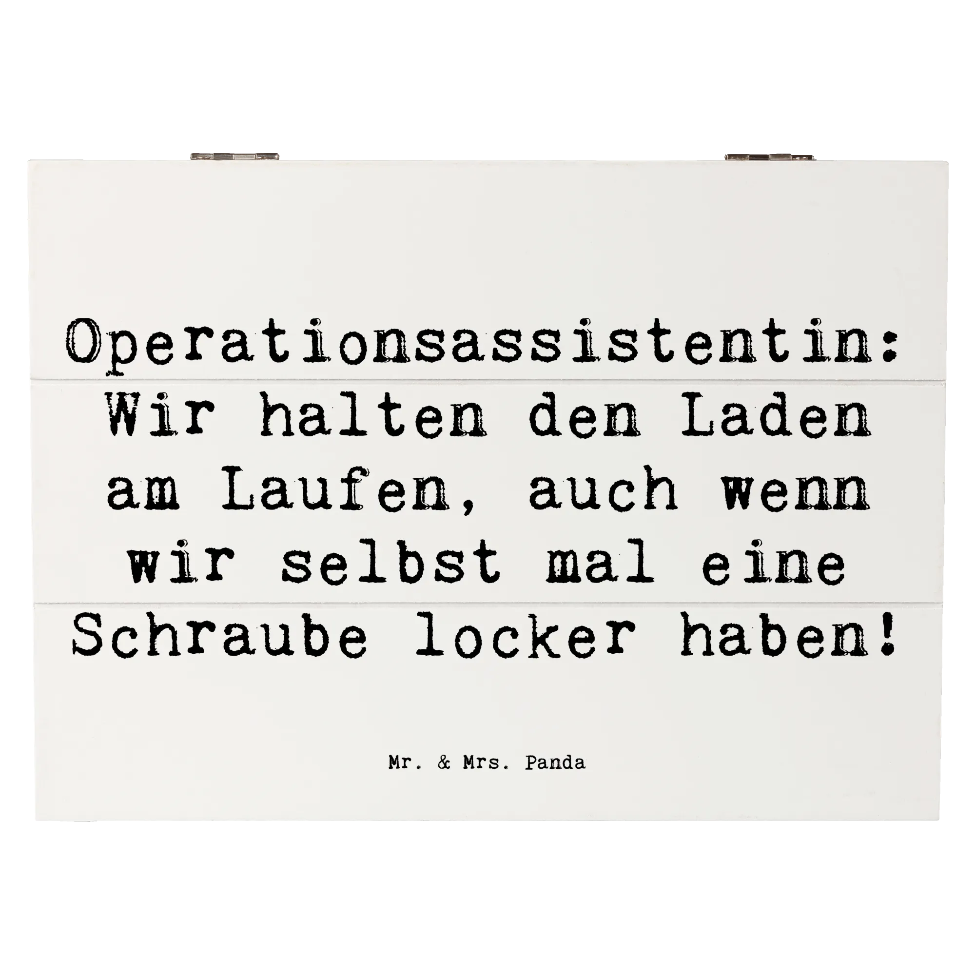 Wooden chest Saying Operationsassistentin: Wir halten den Laden am Laufen, auch wenn wir selbst mal eine Schraube locker haben! - 22 x 15 cm - White