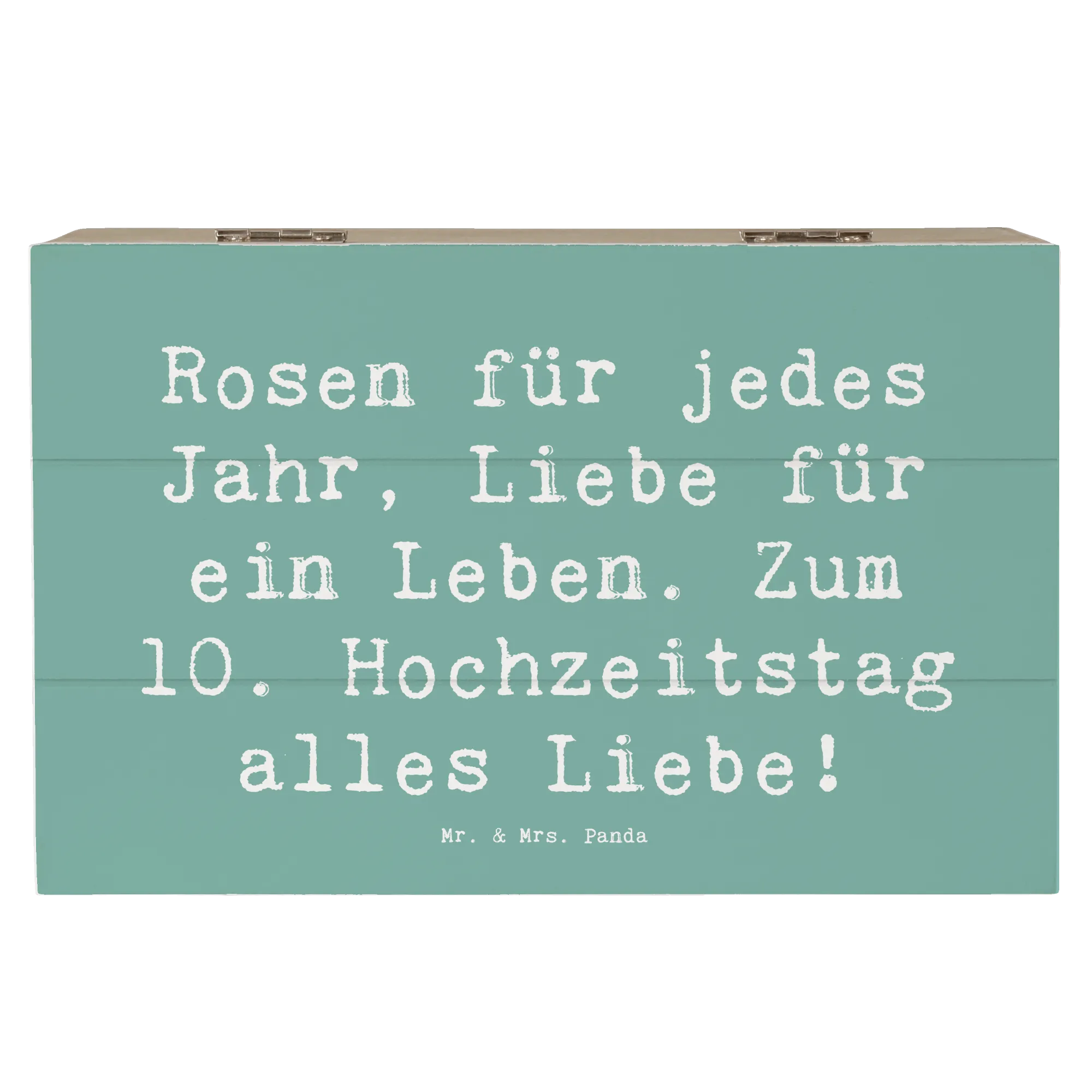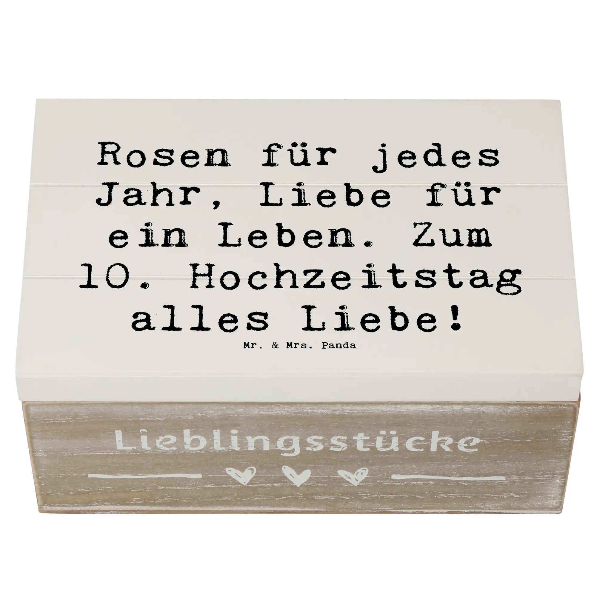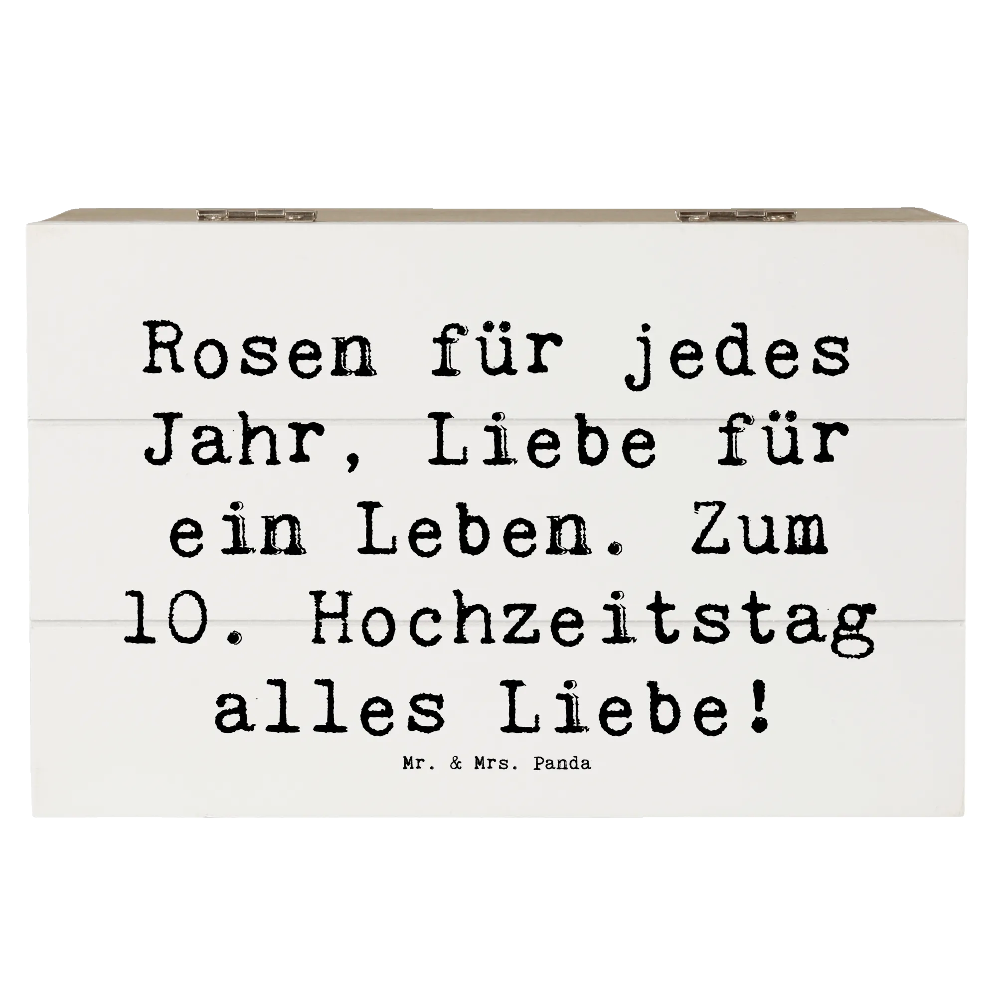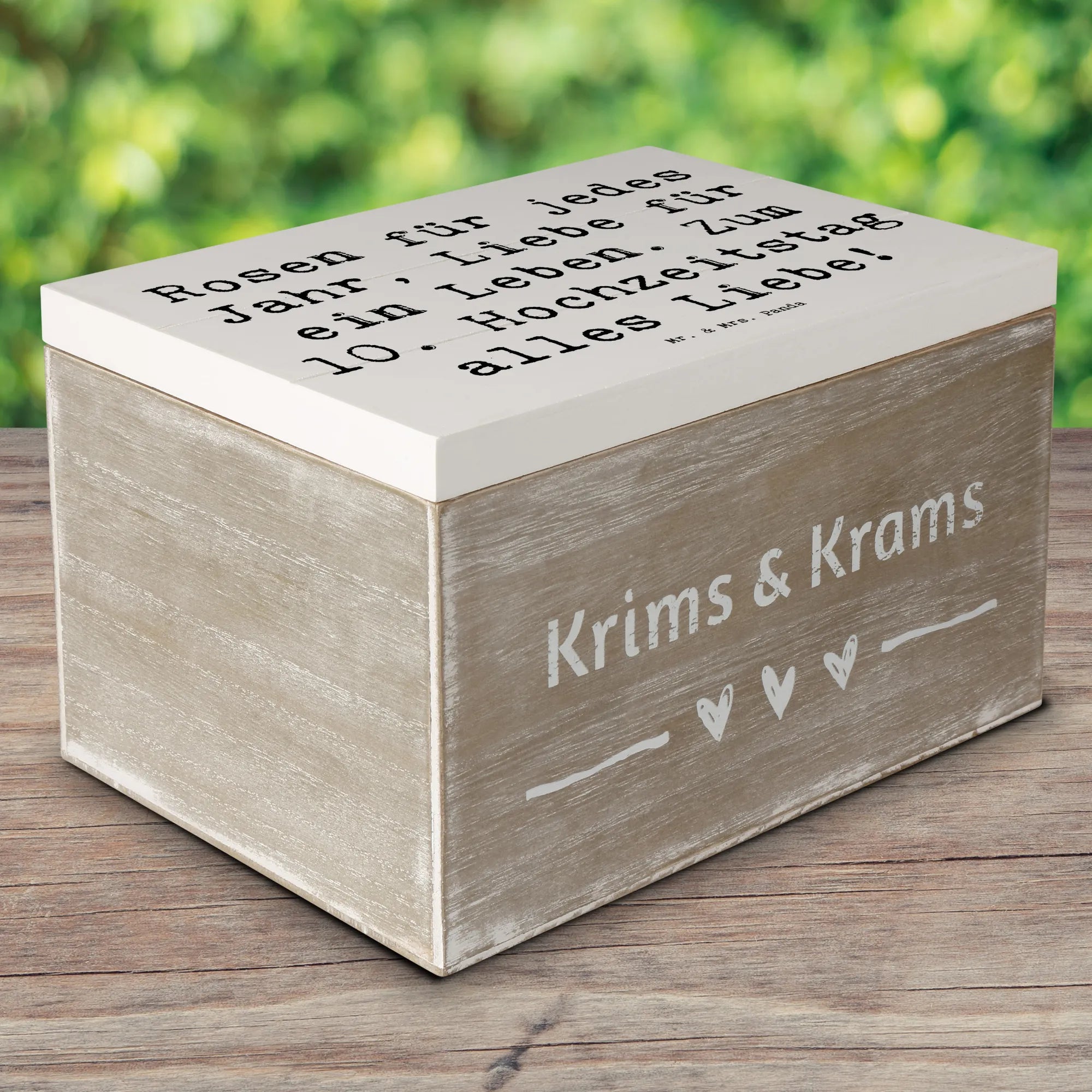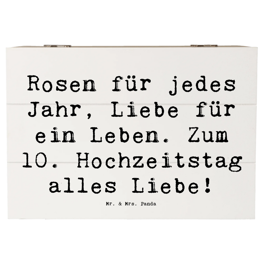 Wooden chest Saying Rosen für jedes Jahr, Liebe für ein Leben. Zum 10. Hochzeitstag alles Liebe! - 22 x 15 cm - White