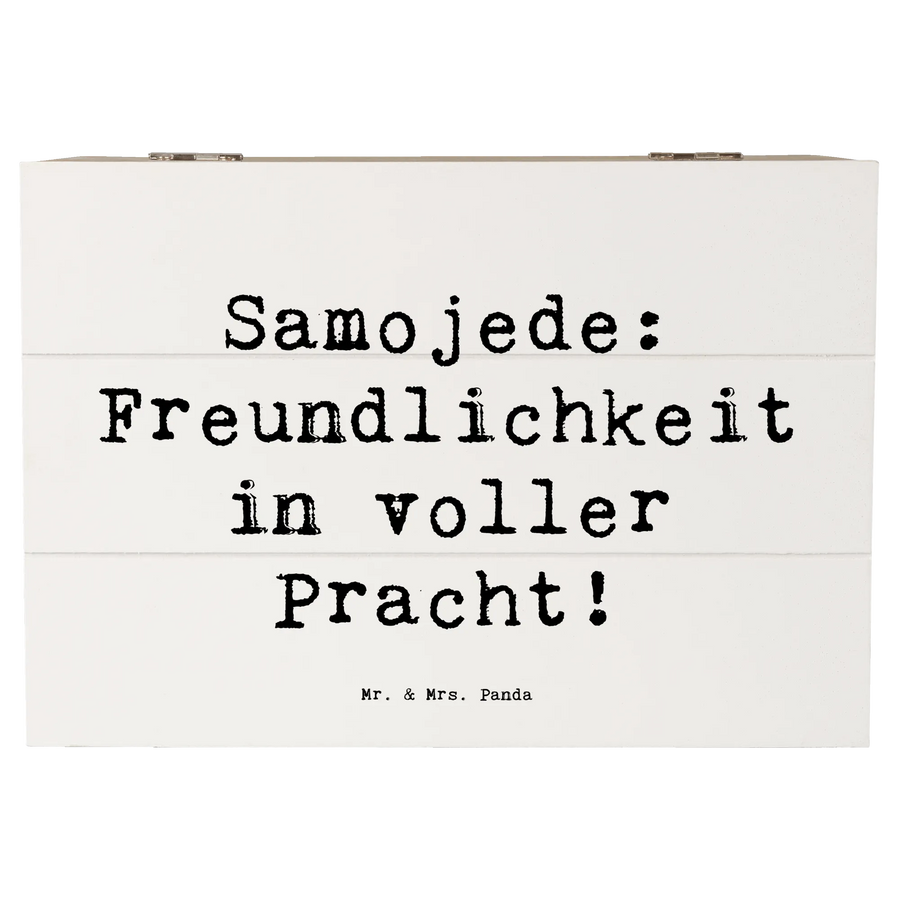 Wooden chest Saying Samojede: Freundlichkeit in voller Pracht! - 22 x 15 cm - White