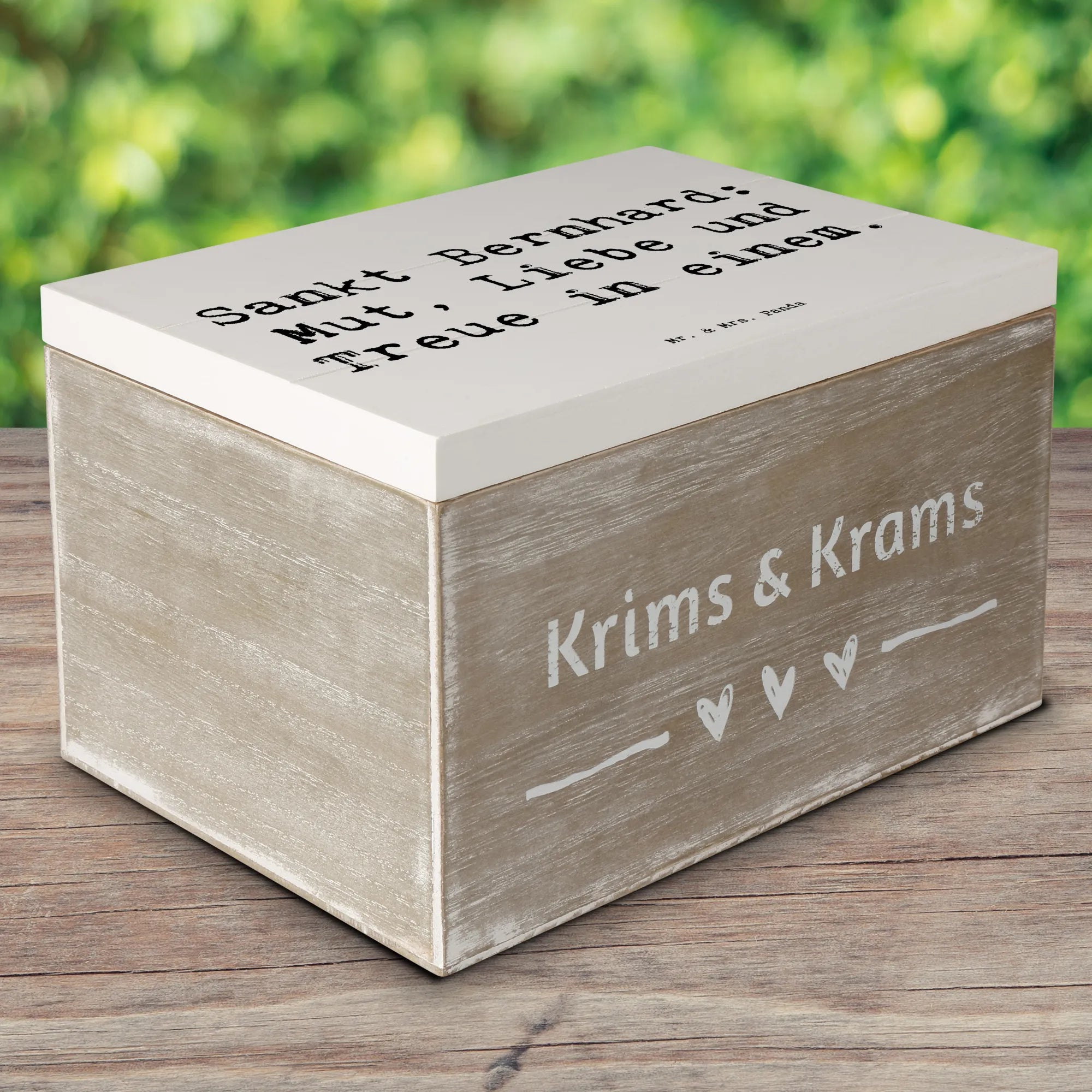 Wooden chest Saying Sankt Bernhard: Mut, Liebe und Treue in einem. - 22 x 15 cm - White