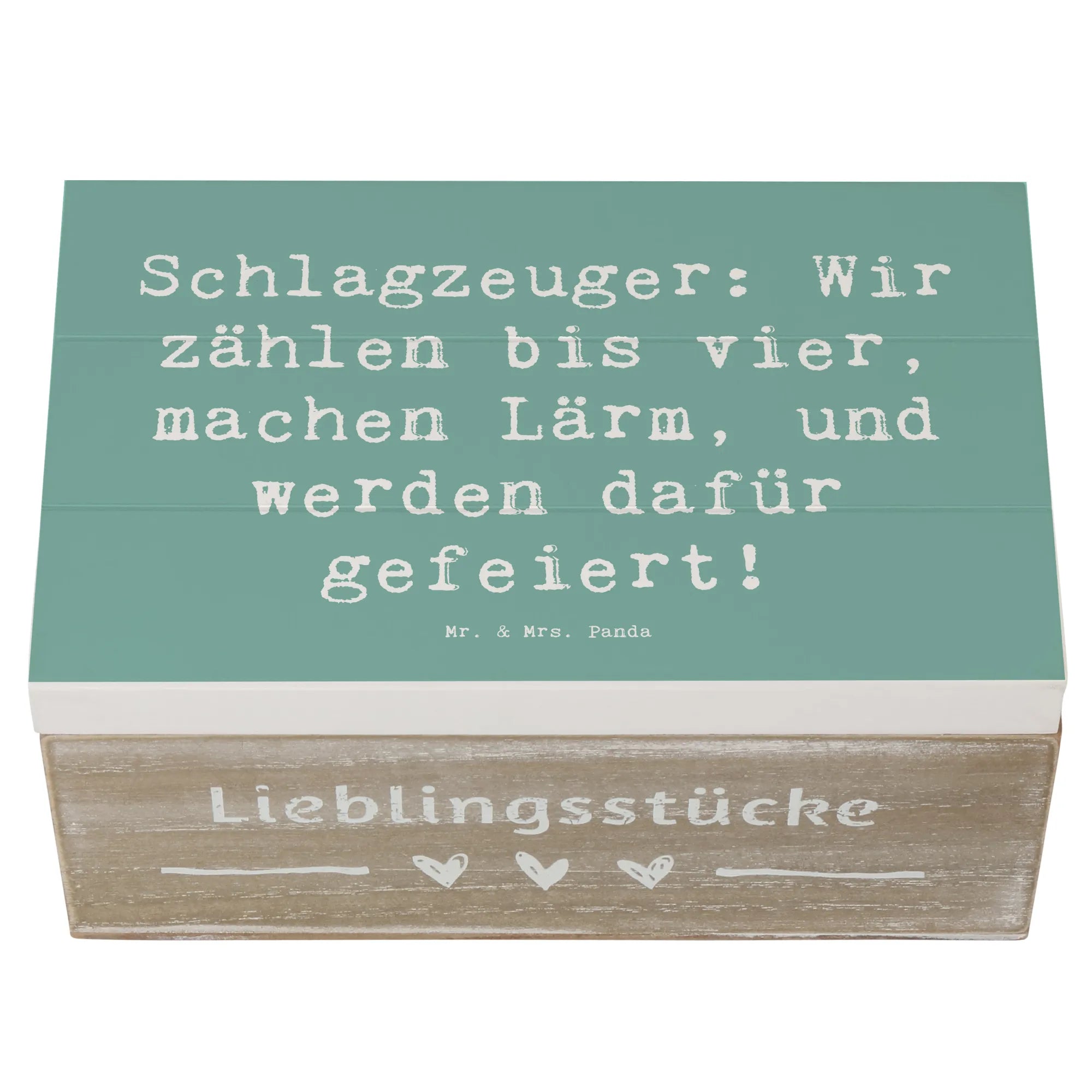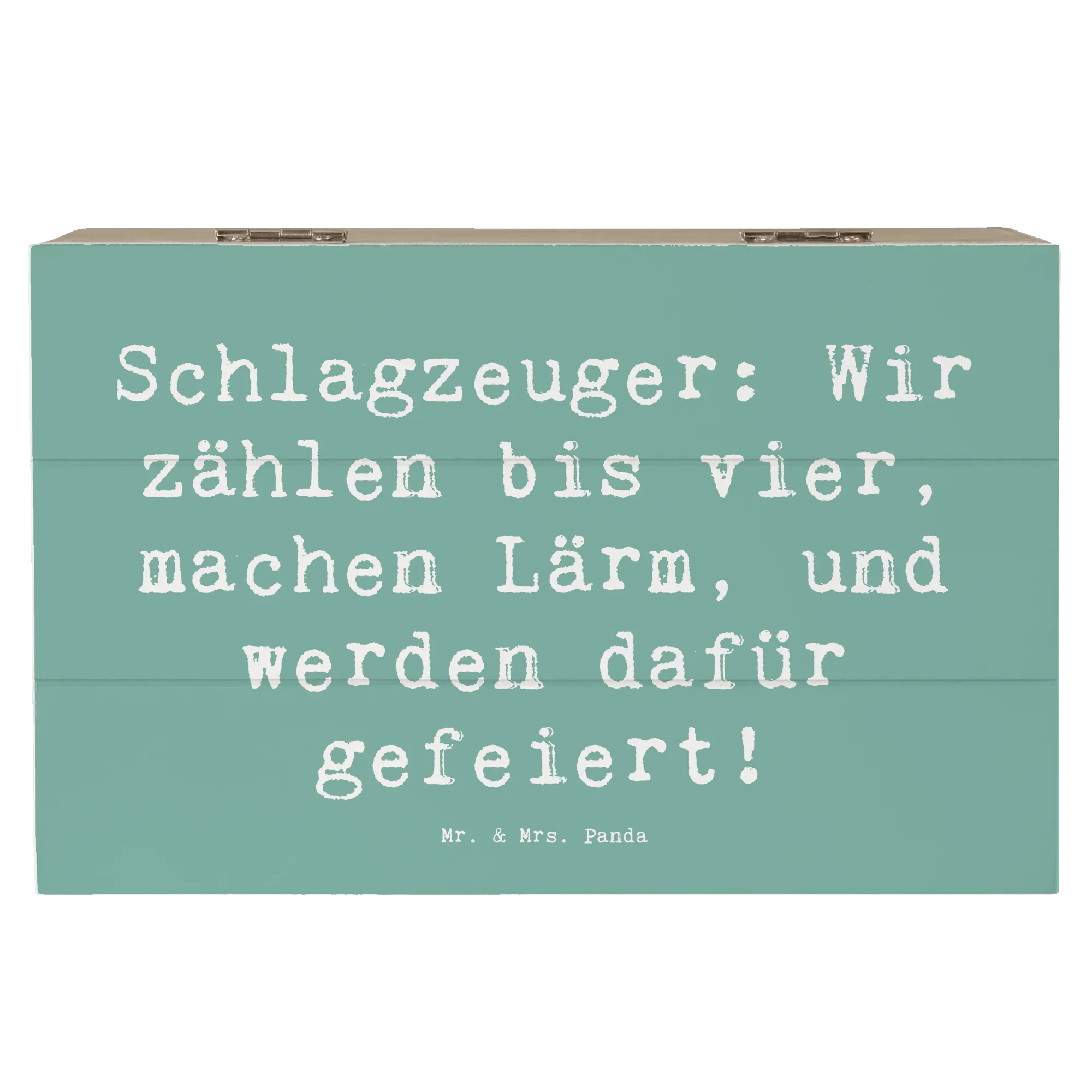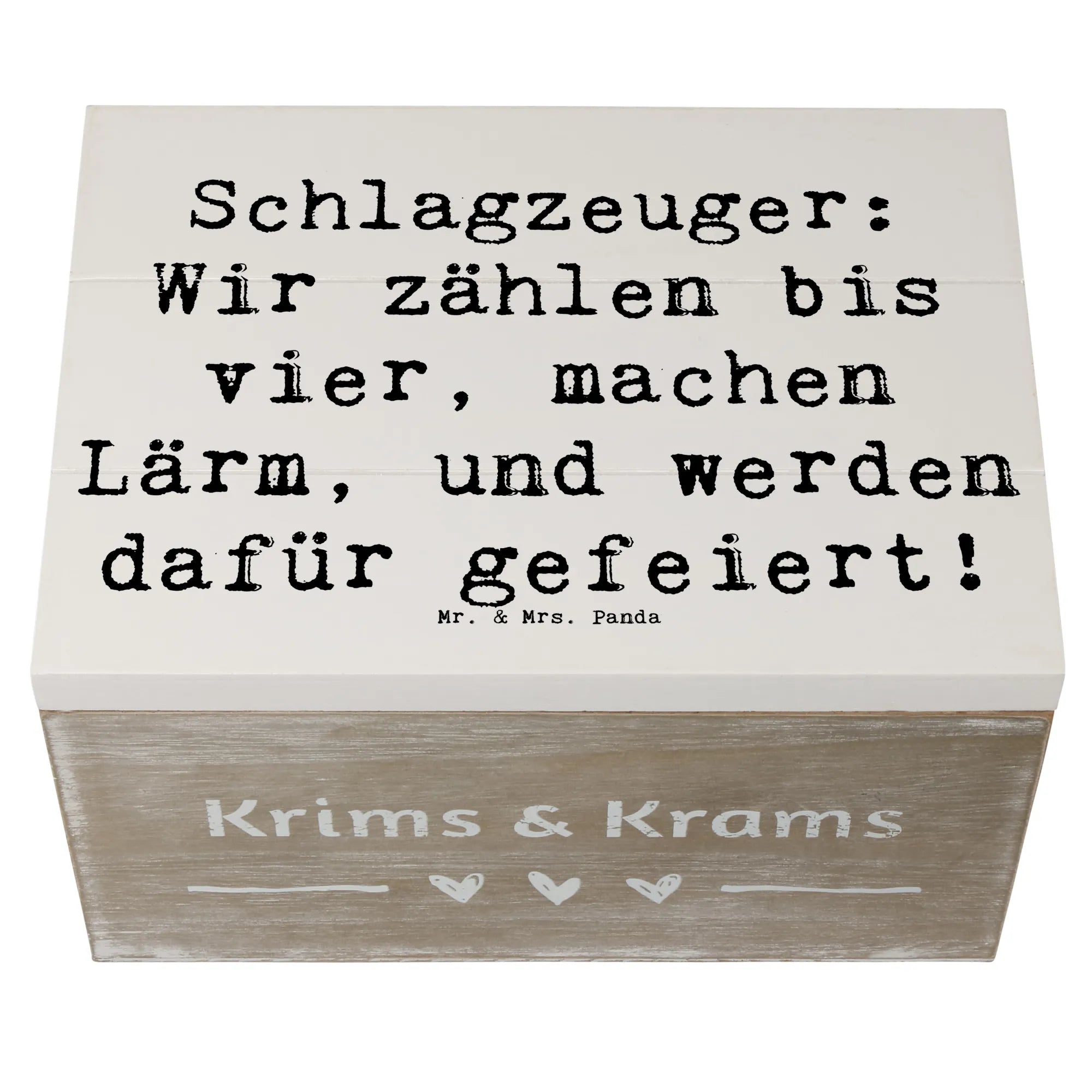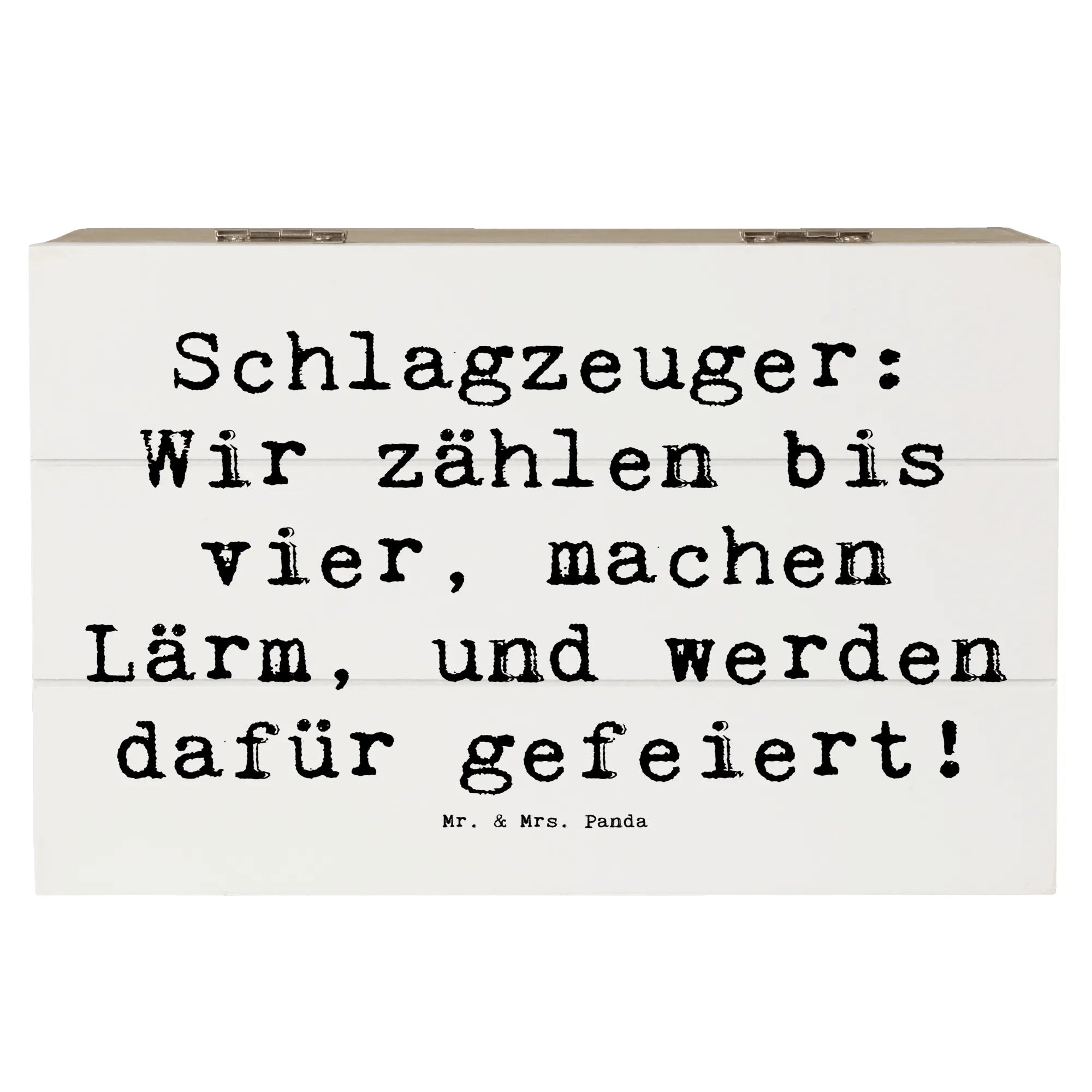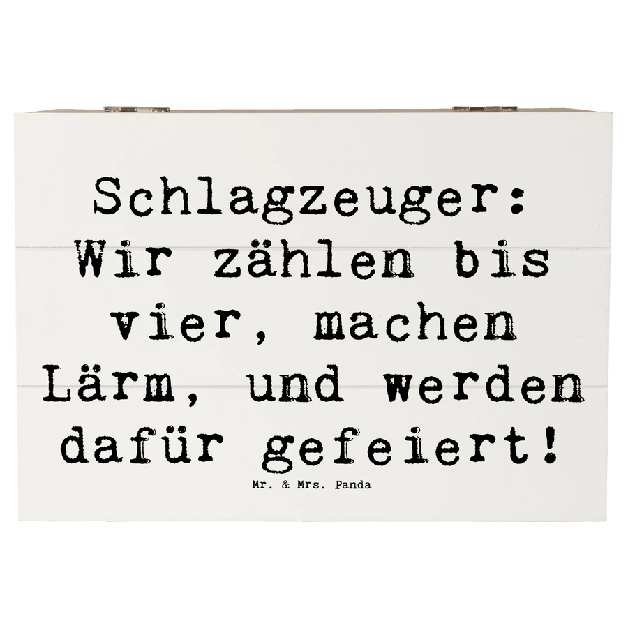 Wooden chest Saying Schlagzeuger: Wir zählen bis vier, machen Lärm, und werden dafür gefeiert! - 22 x 15 cm - White