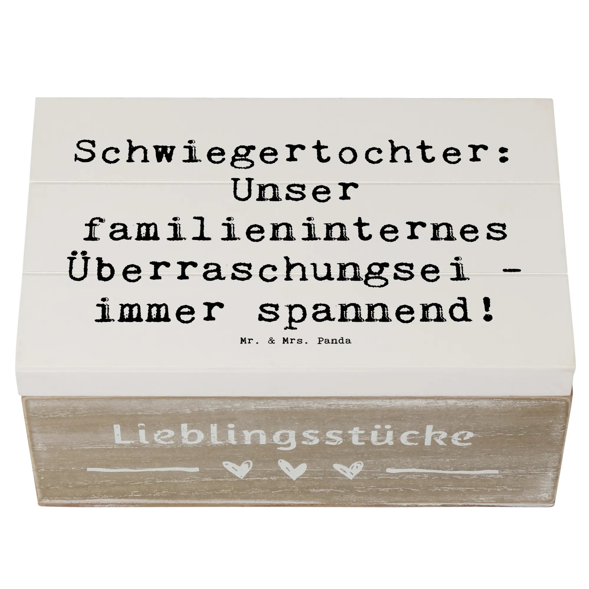 Wooden chest Saying Schwiegertochter: Unser familieninternes Überrasch – Mr. & Mrs. Panda