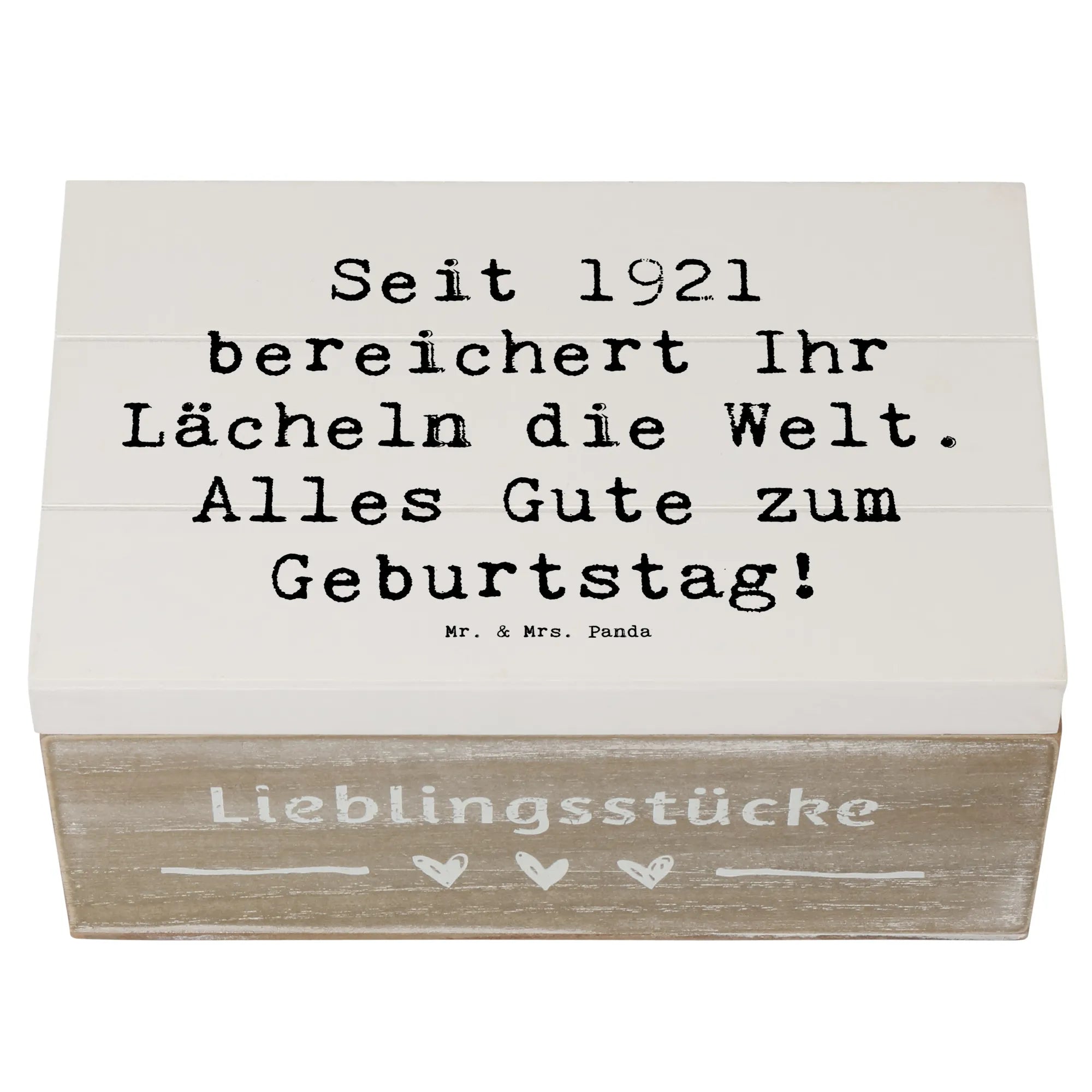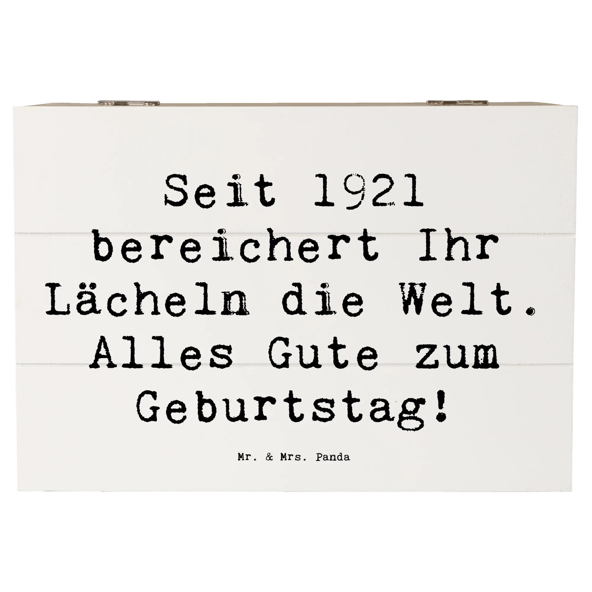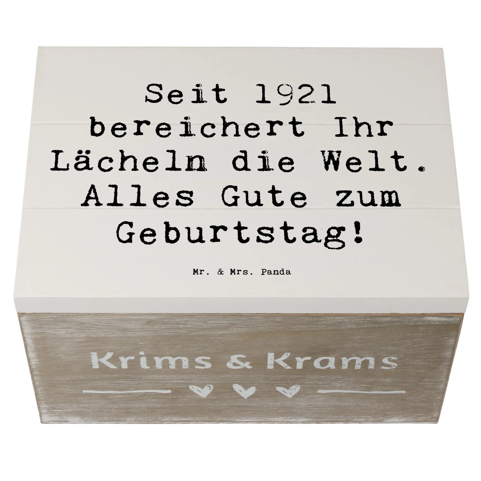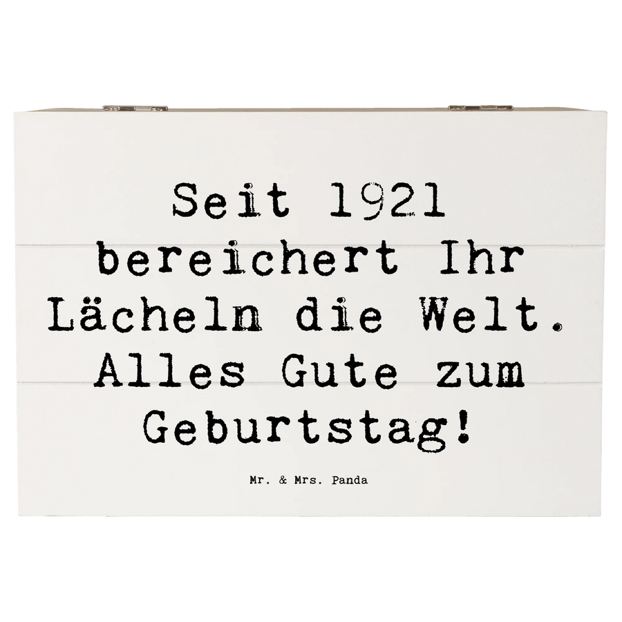 Wooden chest Saying Seit 1921 bereichert Ihr Lächeln die Welt. Alles Gute zum Geburtstag! - 22 x 15 cm - White