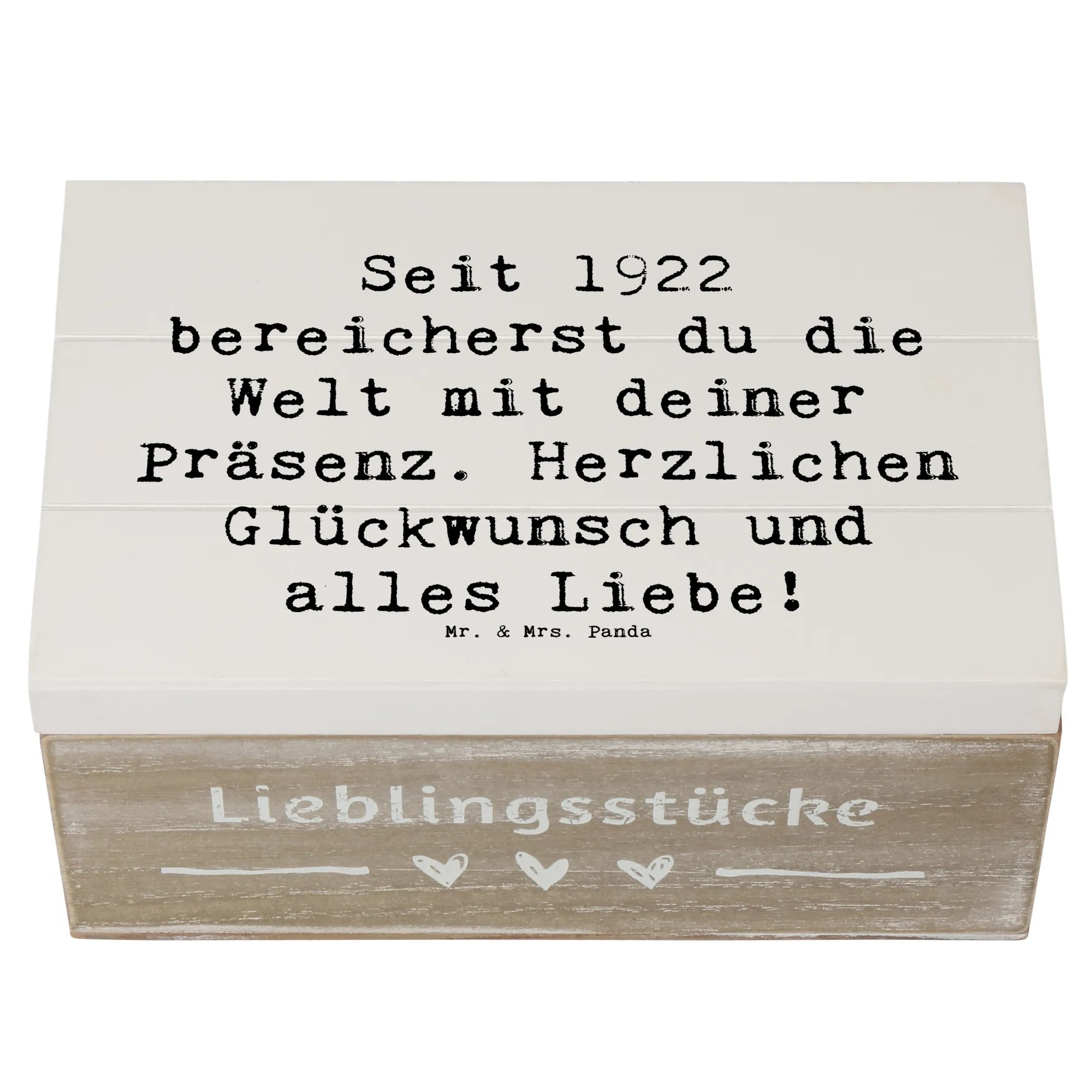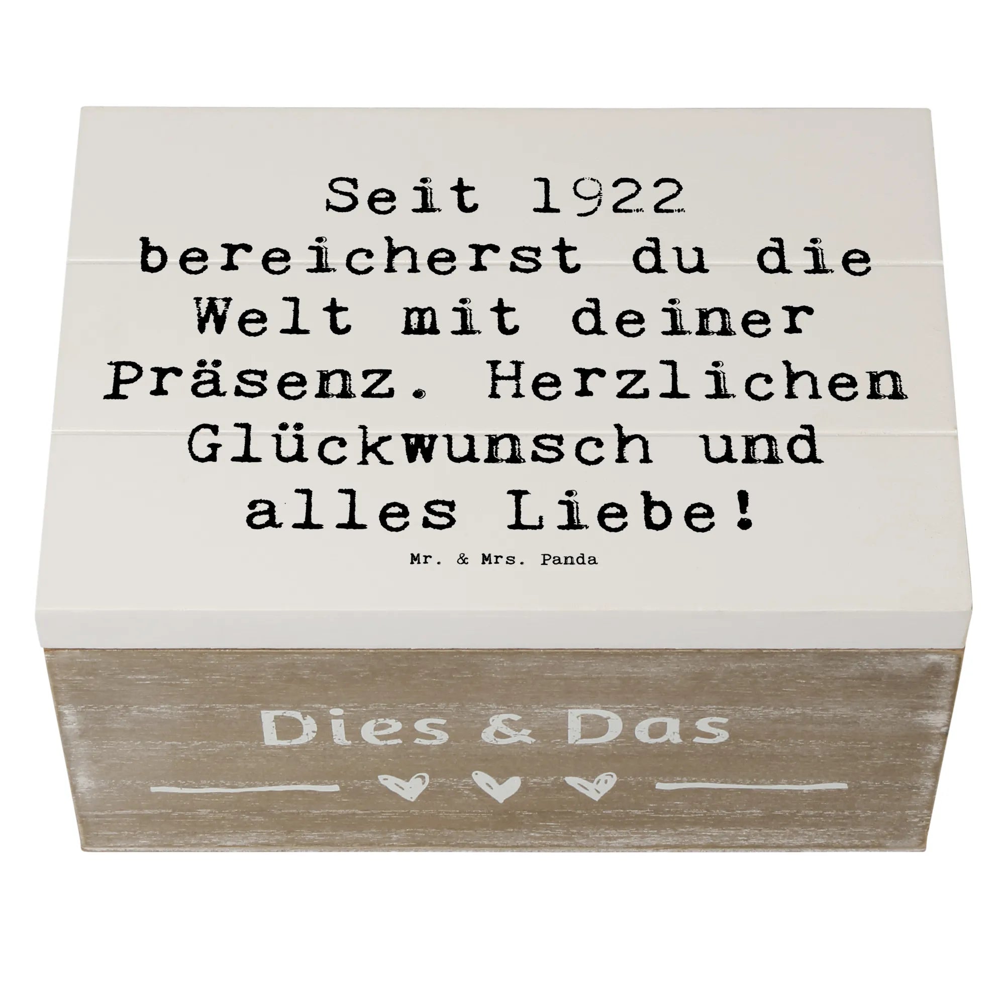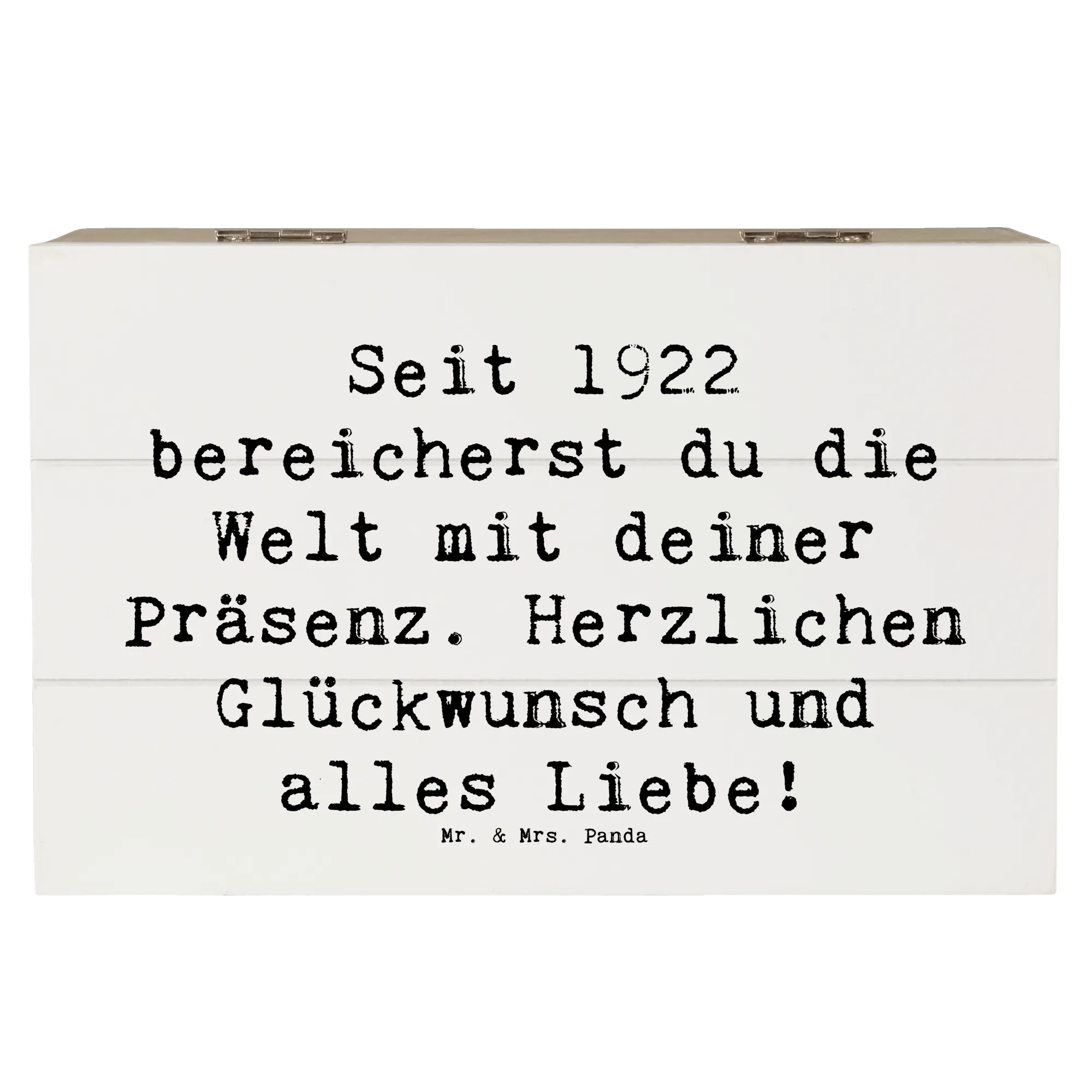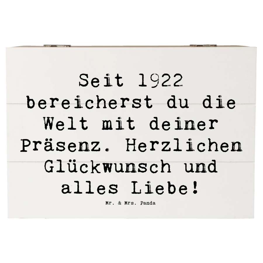 Wooden chest Saying Seit 1922 bereicherst du die Welt mit deiner Präsenz. Herzlichen Glückwunsch und alles Liebe! - 22 x 15 cm - White