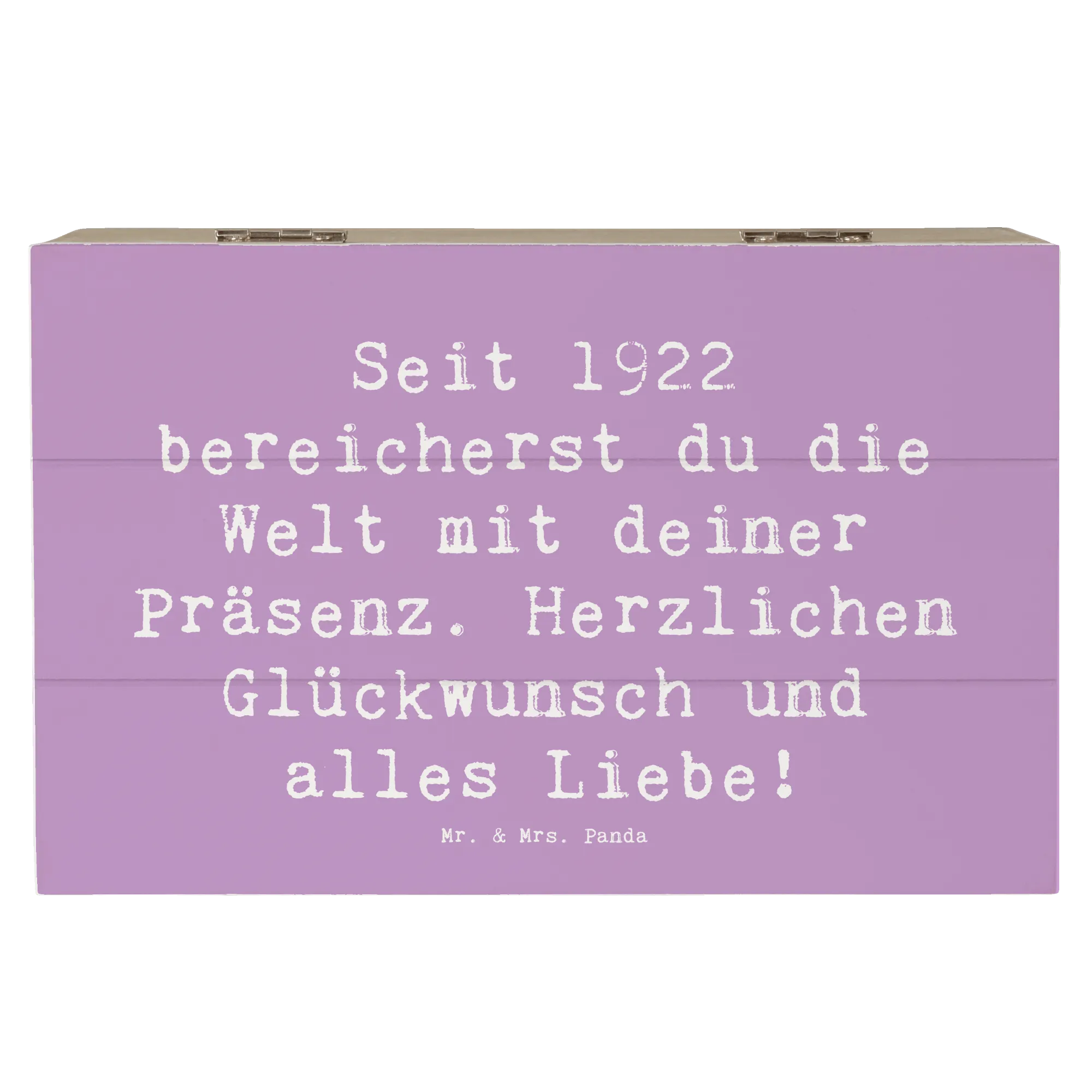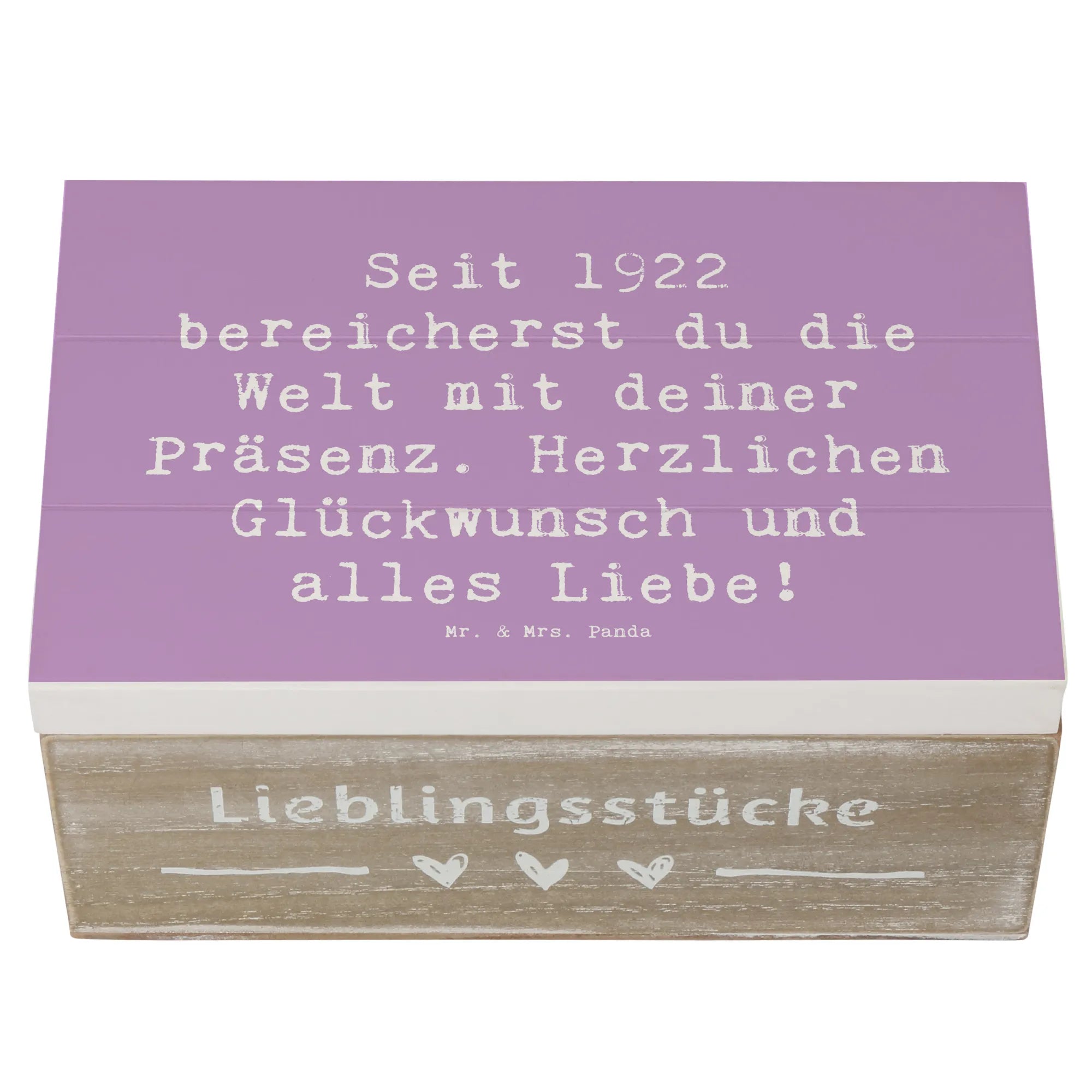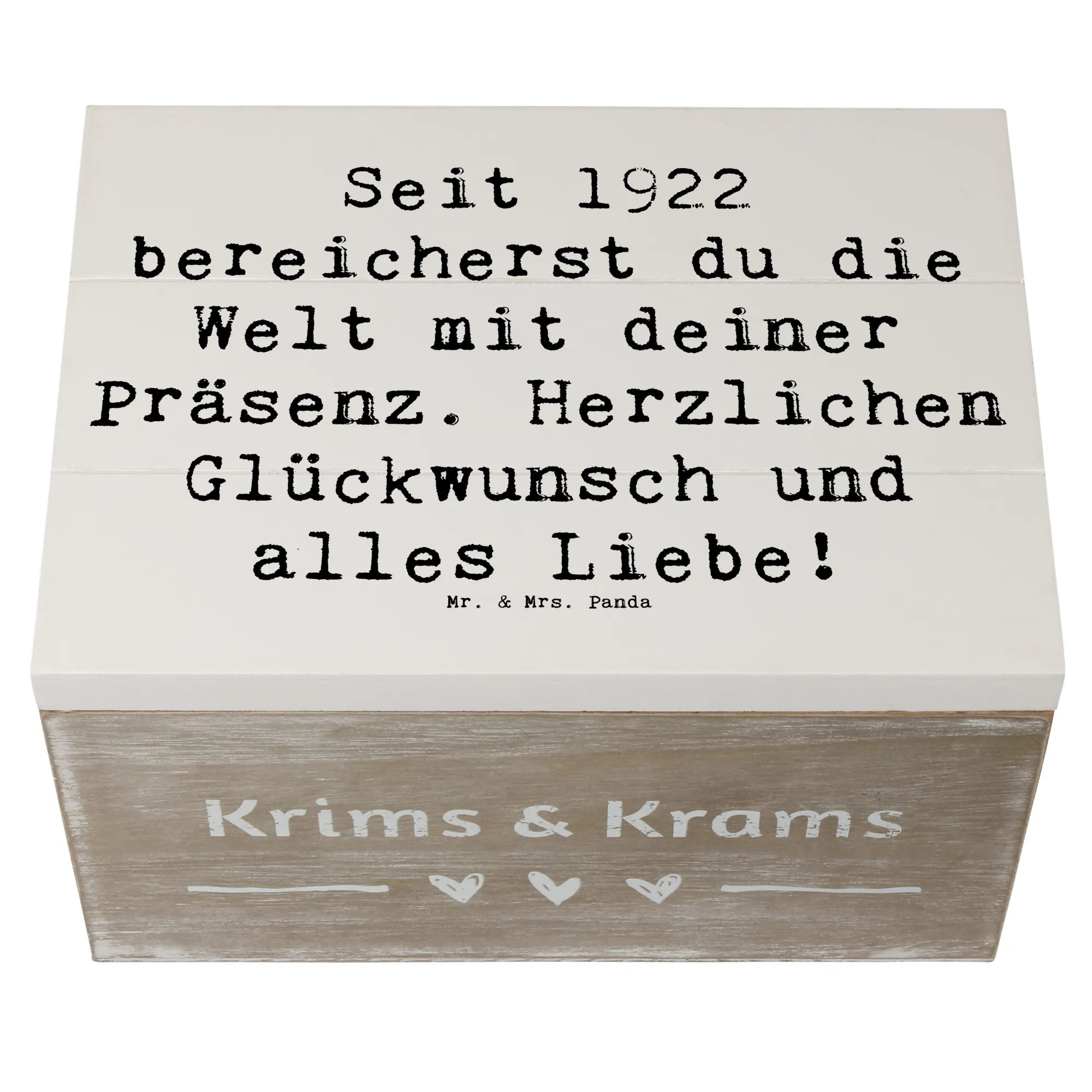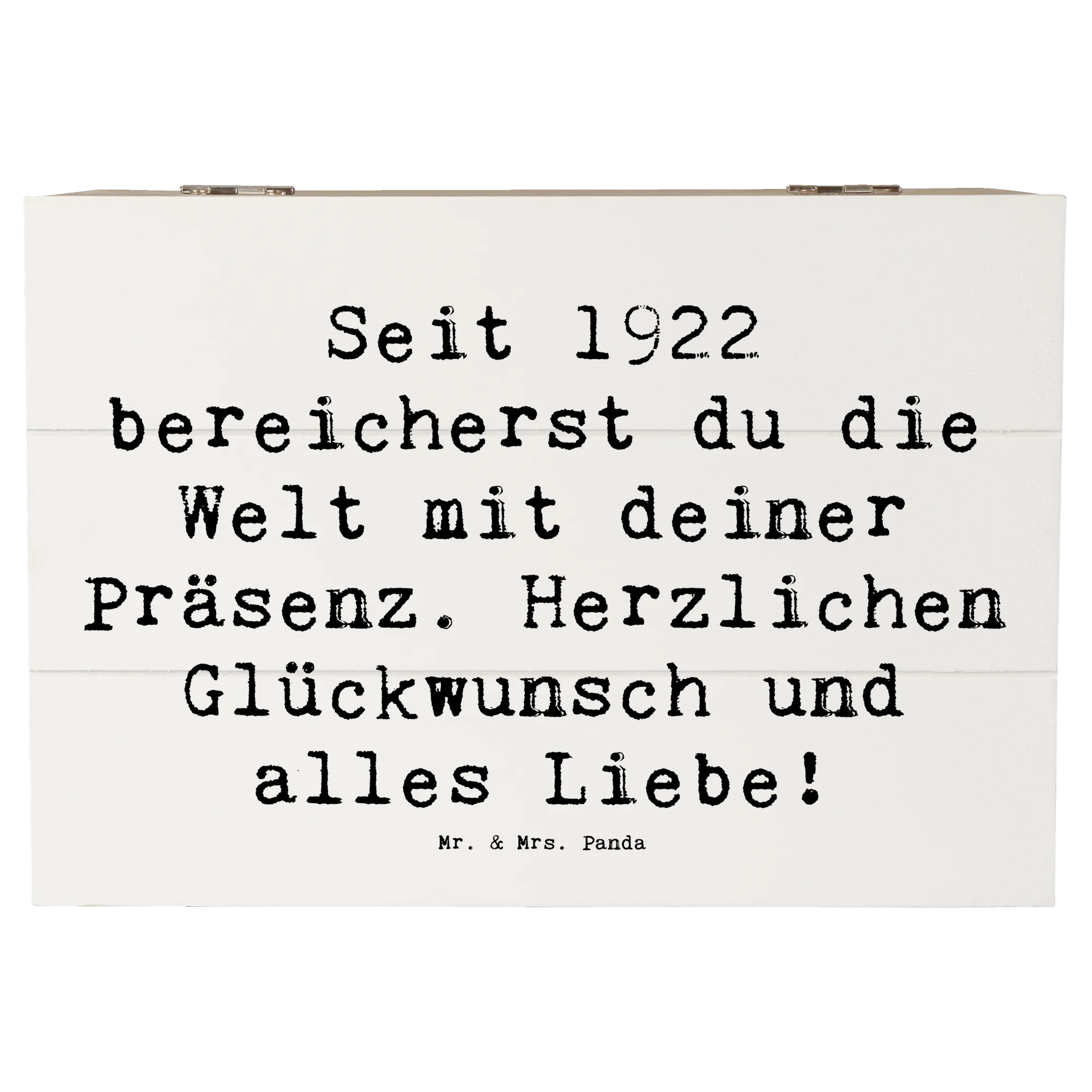 Wooden chest Saying Seit 1922 bereicherst du die Welt mit deiner Präsenz. Herzlichen Glückwunsch und alles Liebe! - 22 x 15 cm - White