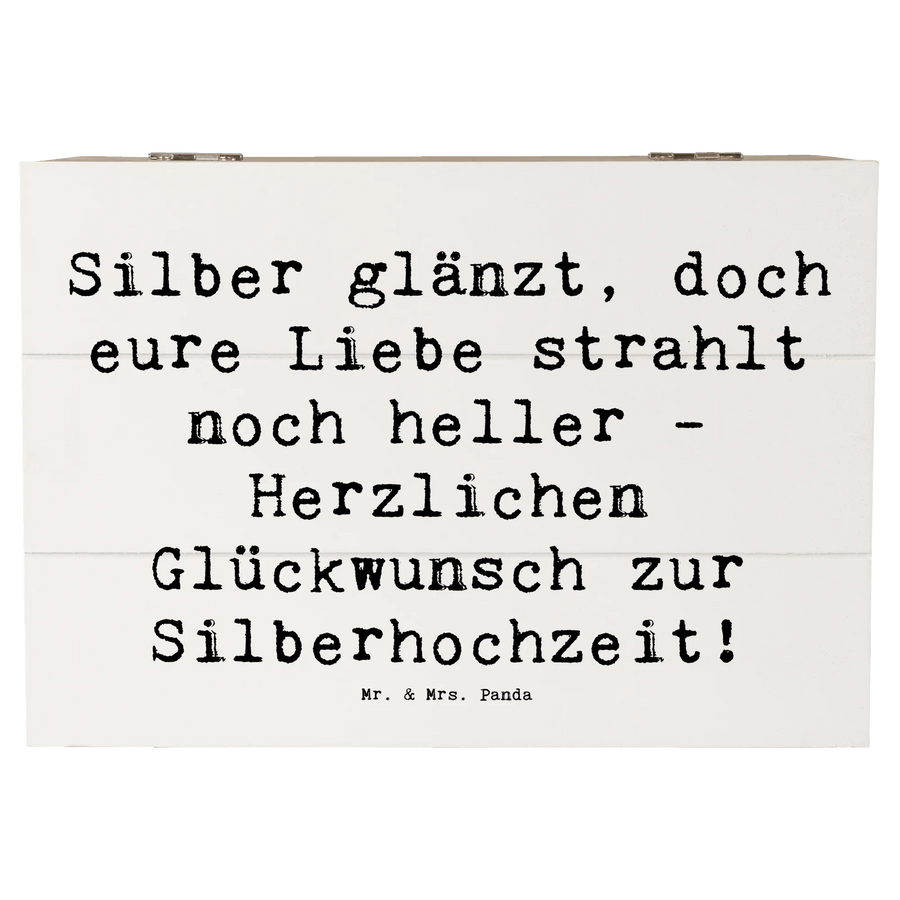 Wooden chest Saying Silber glänzt, doch eure Liebe strahlt noch heller - Herzlichen Glückwunsch zur Silberhochzeit! - 22 x 15 cm - White