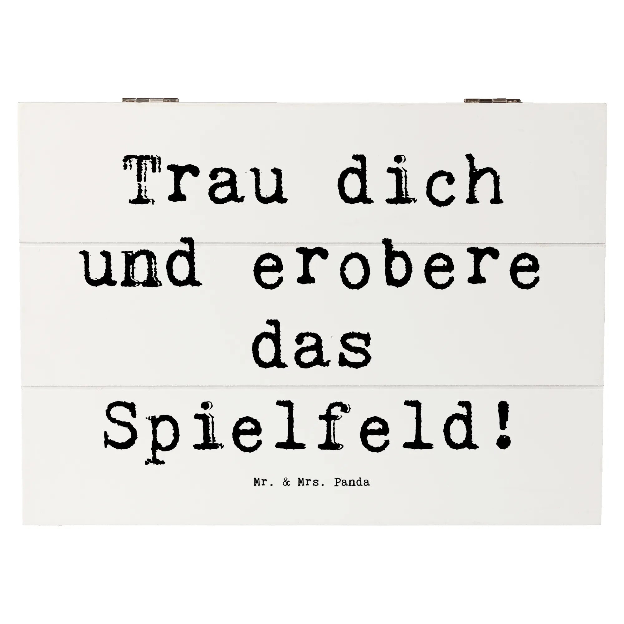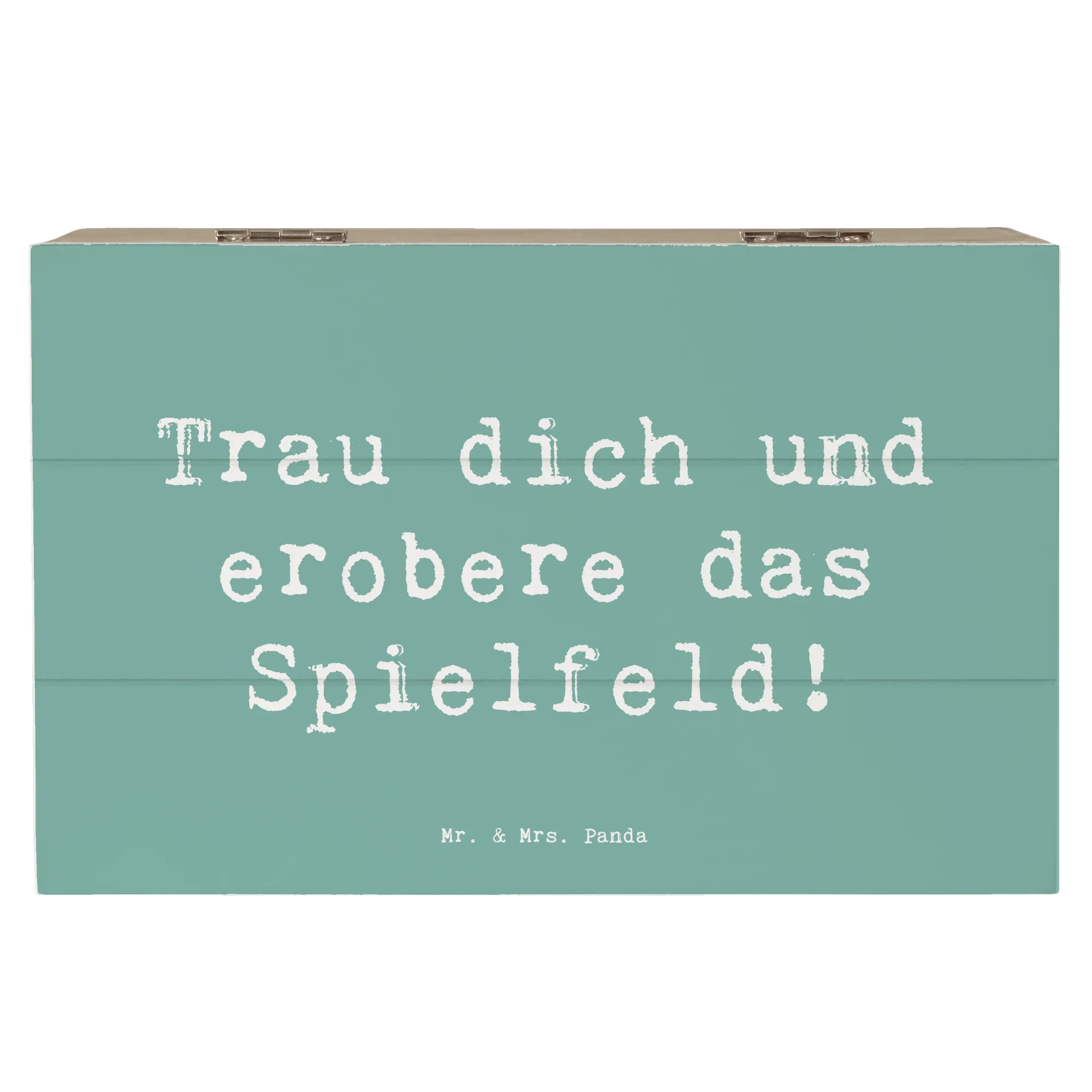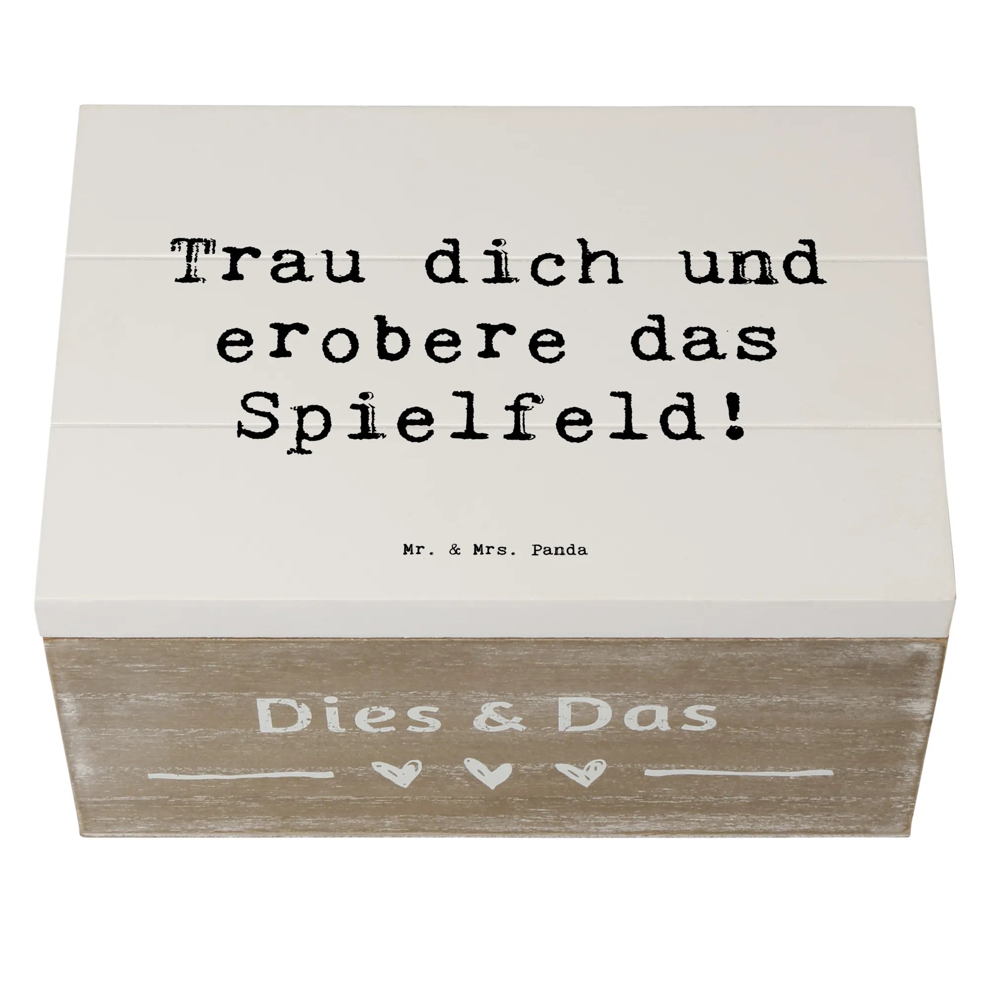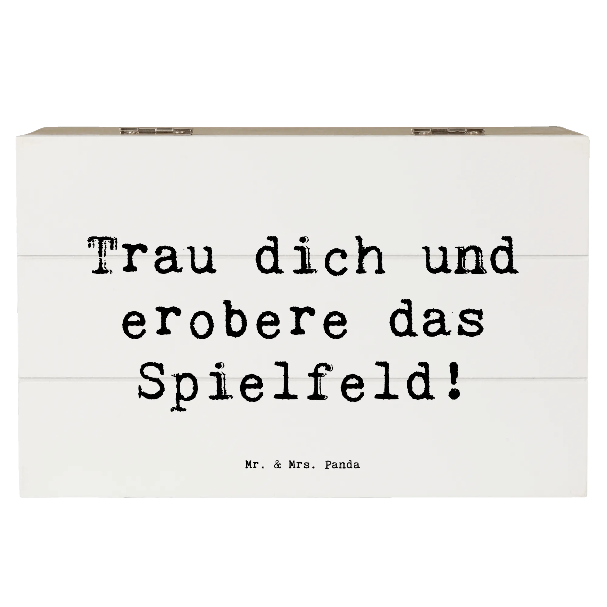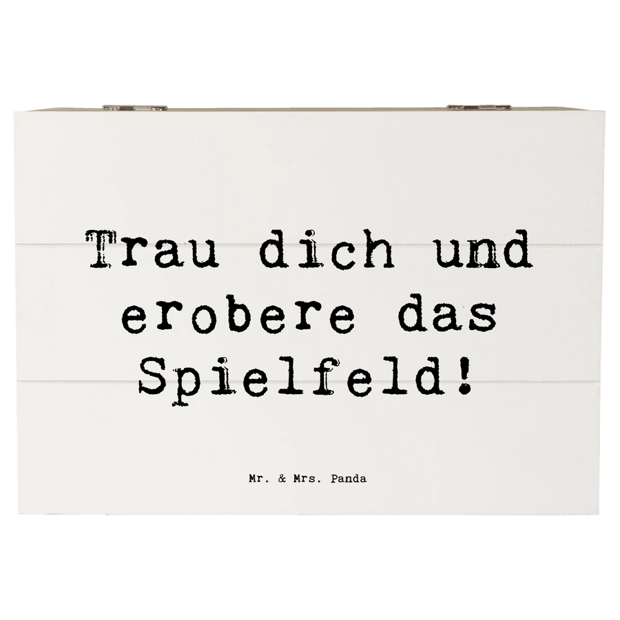 Wooden chest Saying Trau dich und erobere das Spielfeld! - 22 x 15 cm - White