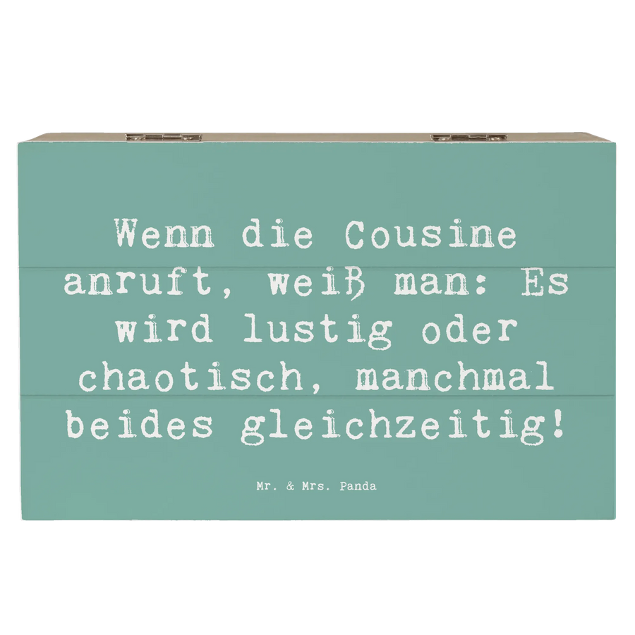 Wooden chest Saying Wenn die Cousine anruft, weiß man: Es wird lustig – Mr. & Mrs. Panda