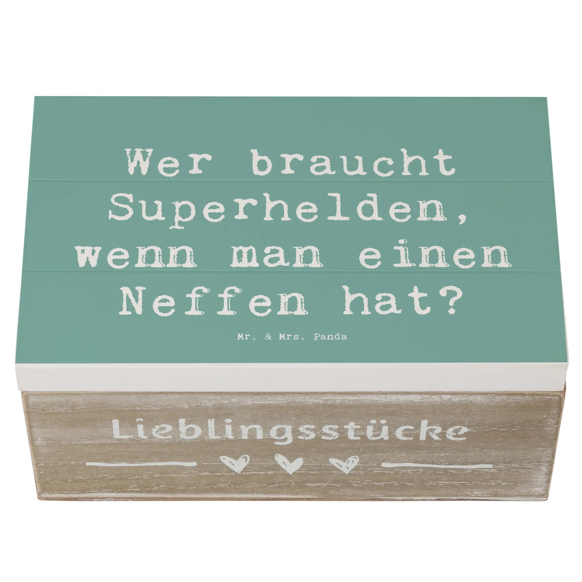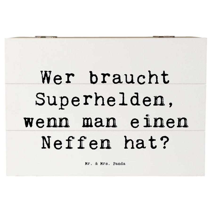 Wooden chest Saying Wer braucht Superhelden, wenn man einen Neffen hat? - 22 x 15 cm - White