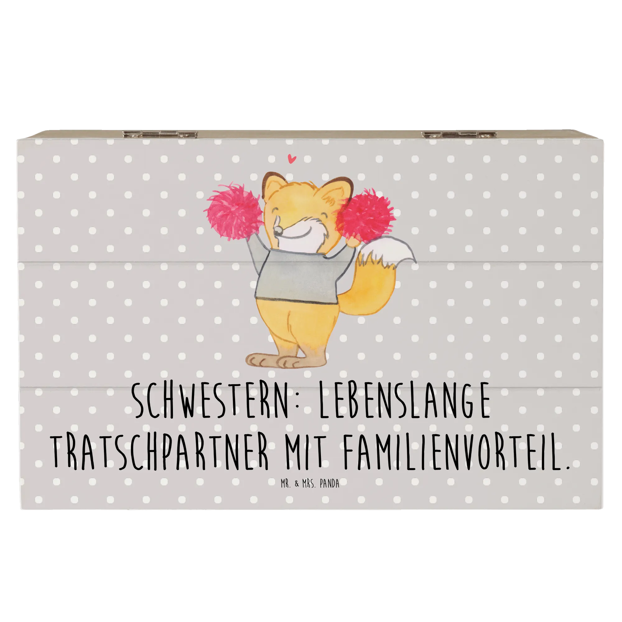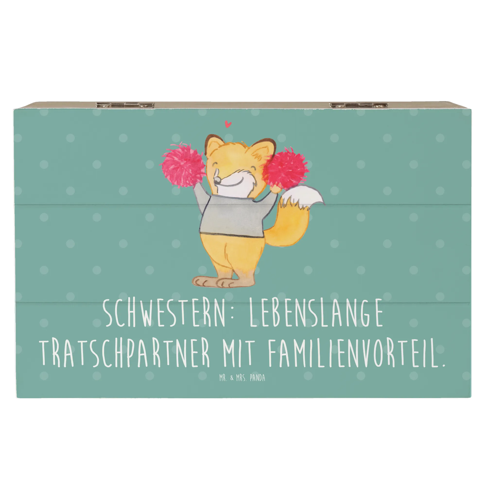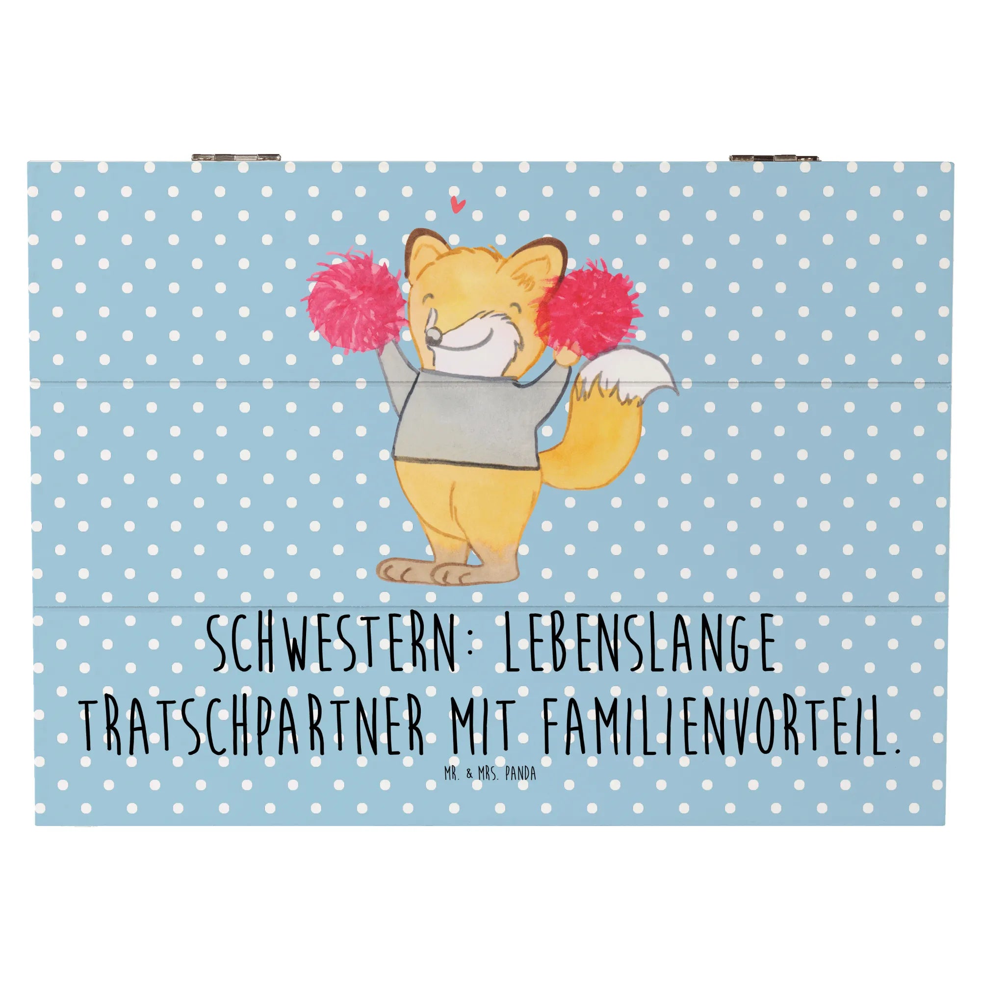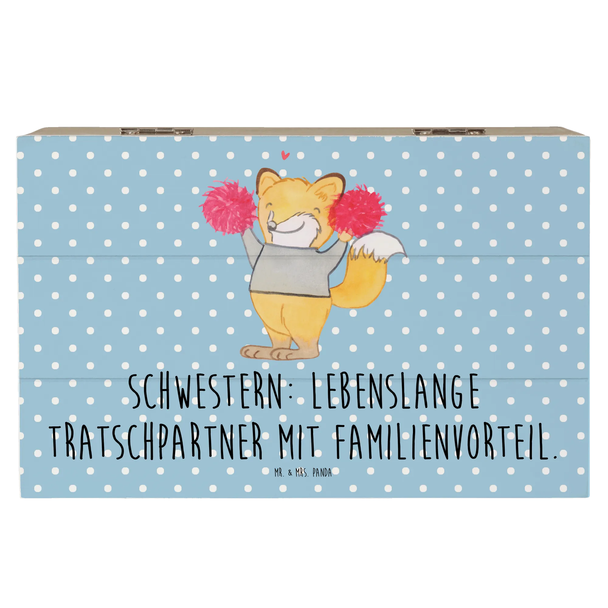 Wooden chest Schwestern: Lebenslange Tratschpartner mit Familienvorteil. - 22 x 15 cm - Blue Pastel