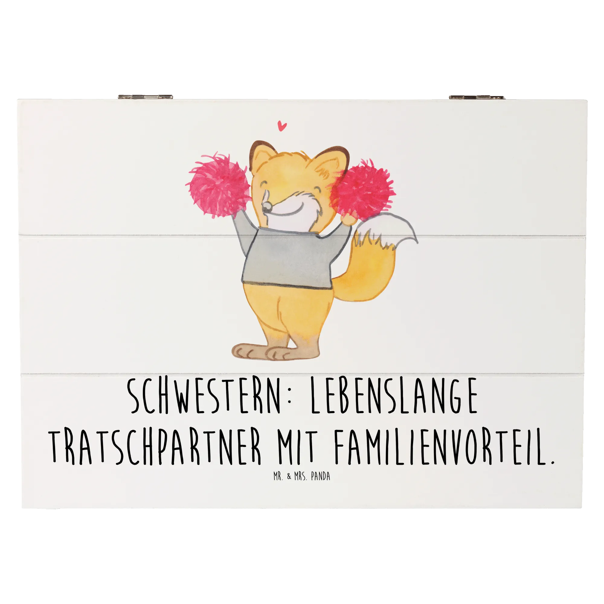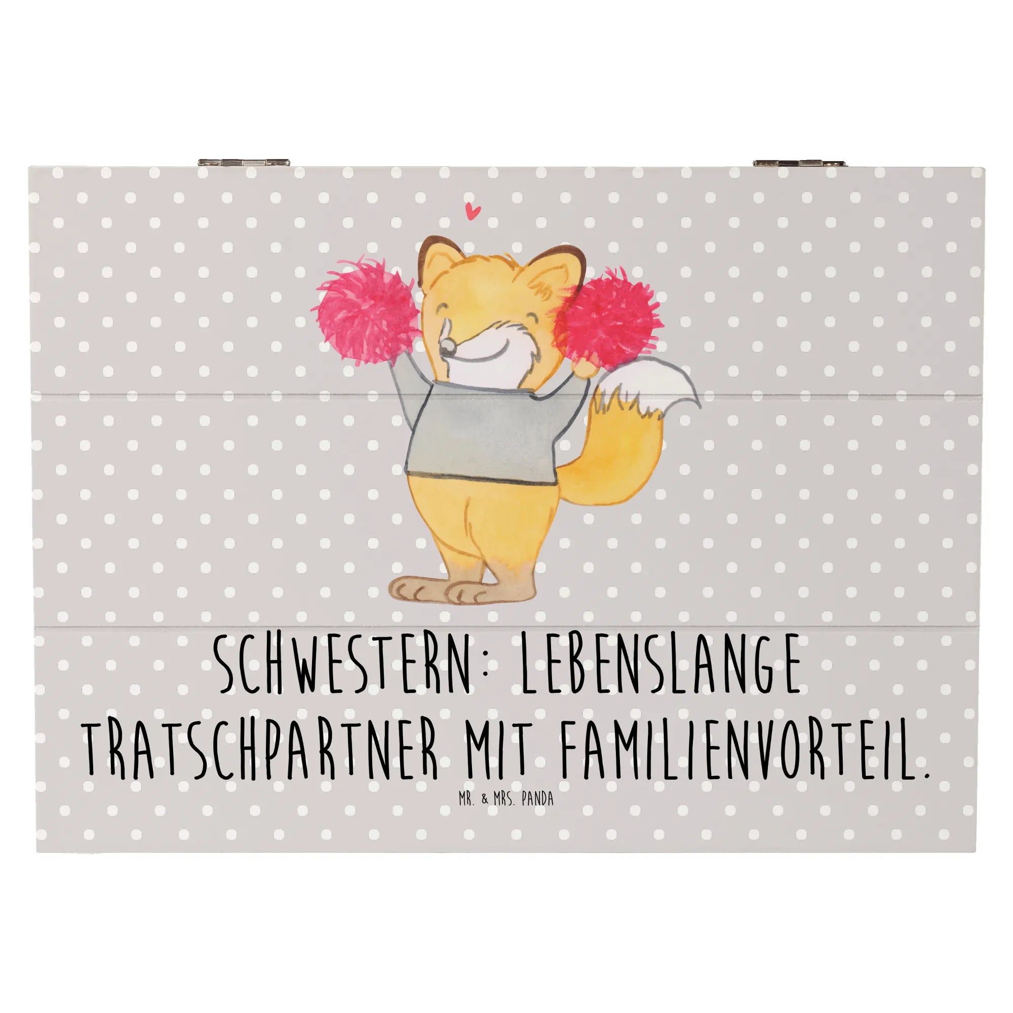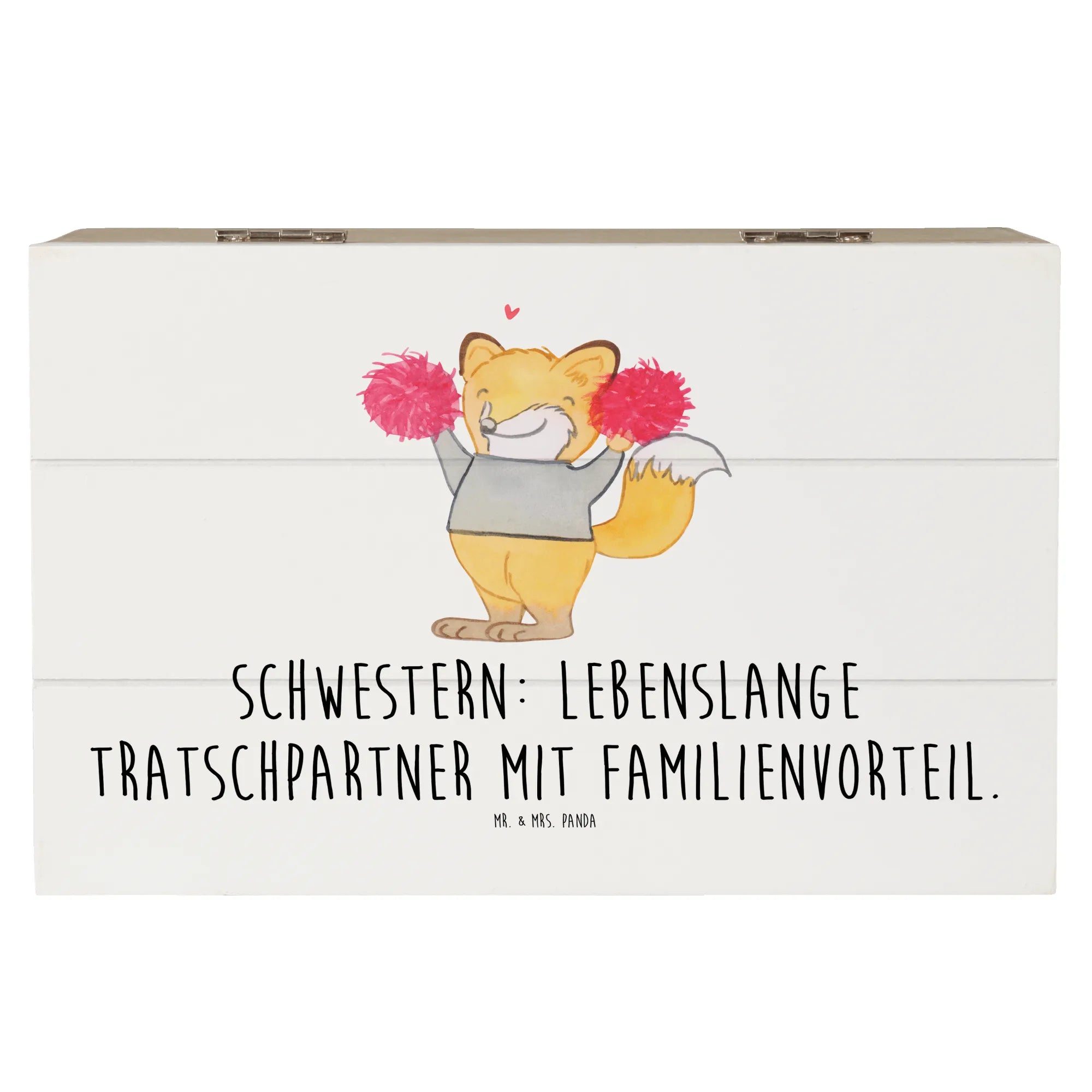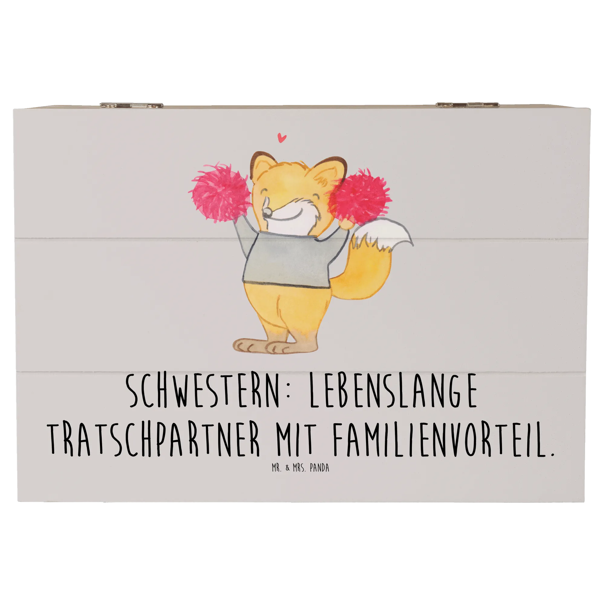Wooden chest Schwestern: Lebenslange Tratschpartner mit Familienvorteil. - 22 x 15 cm - Blue Pastel