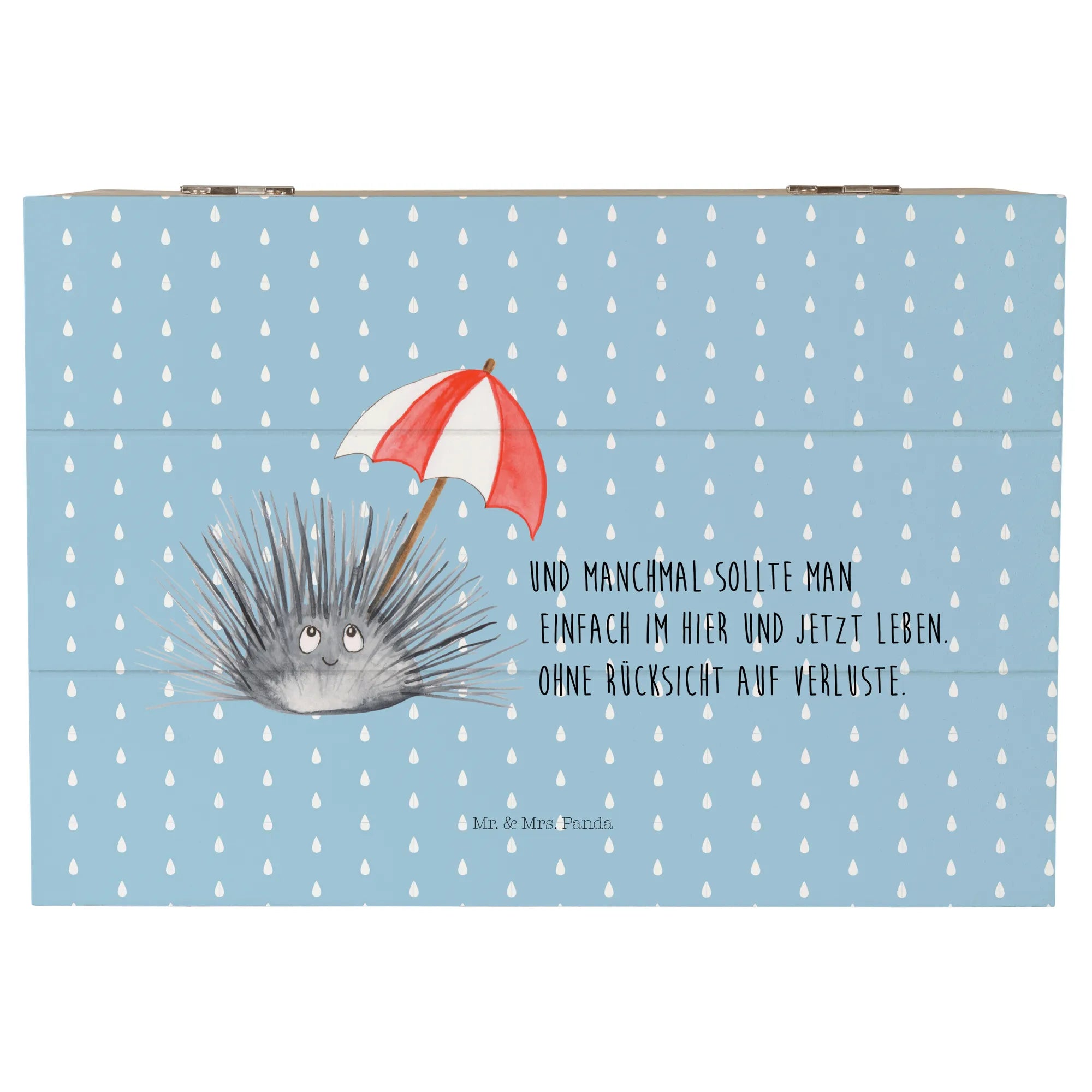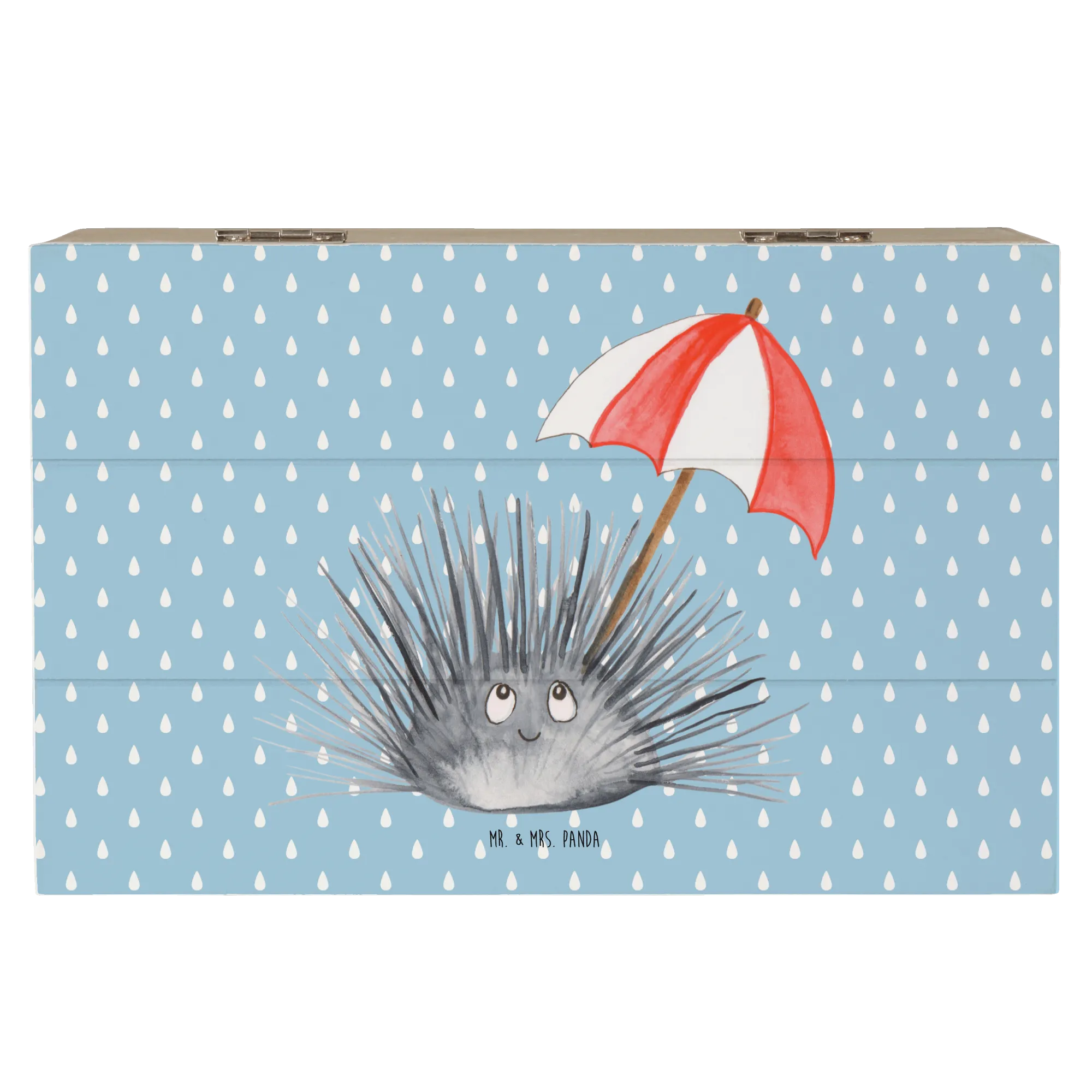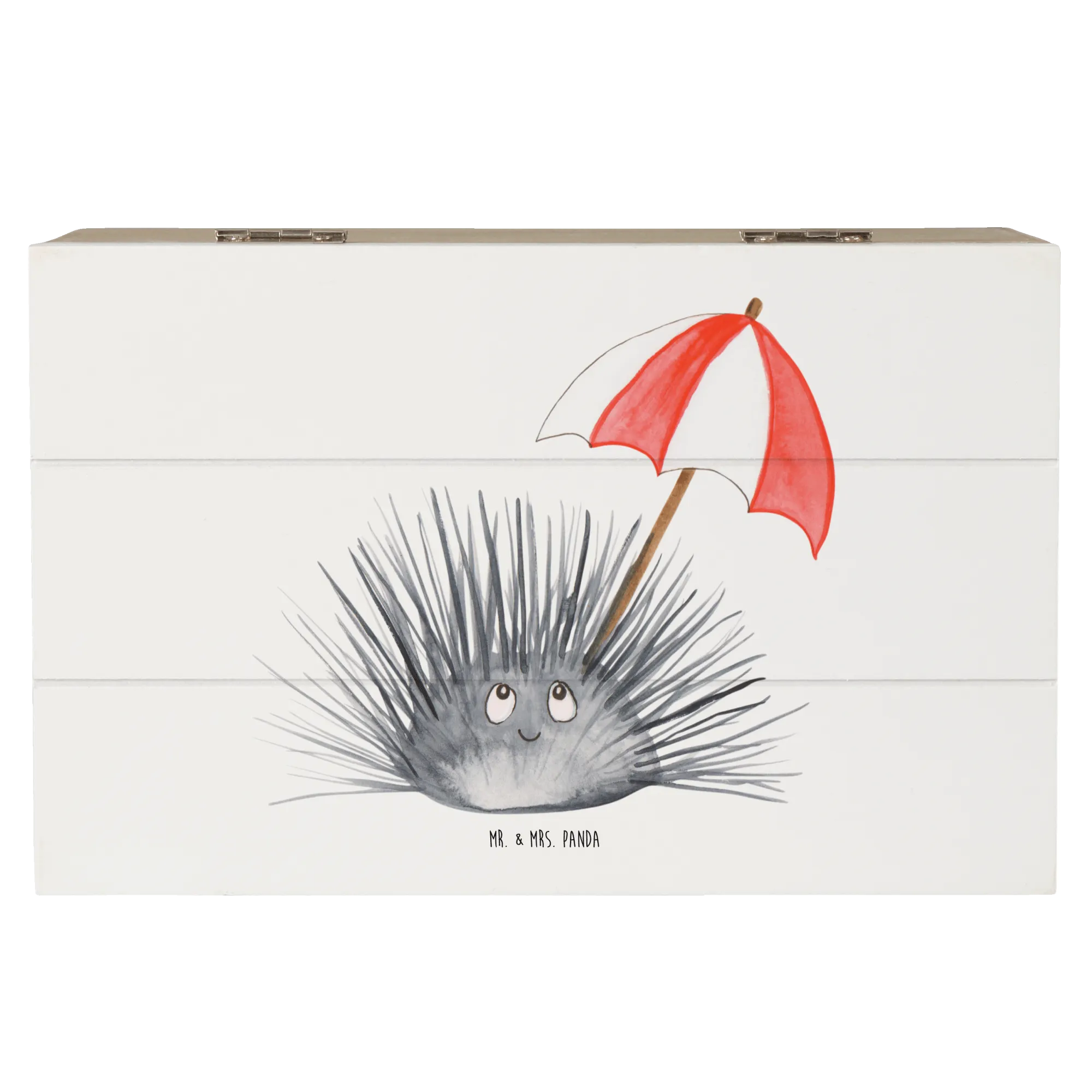 Made from robust wood fiber, this sturdy treasure chest boasts a delightful design featuring an adorable sea urchin with big eyes and a gentle smile, reminding us to embrace the beauty of living in the present. With its playful touch of whimsy, the Sea Urchin is illustrated holding a cute little red-and-white striped umbrella, perfectly embodying the lighthearted essence of ocean life.