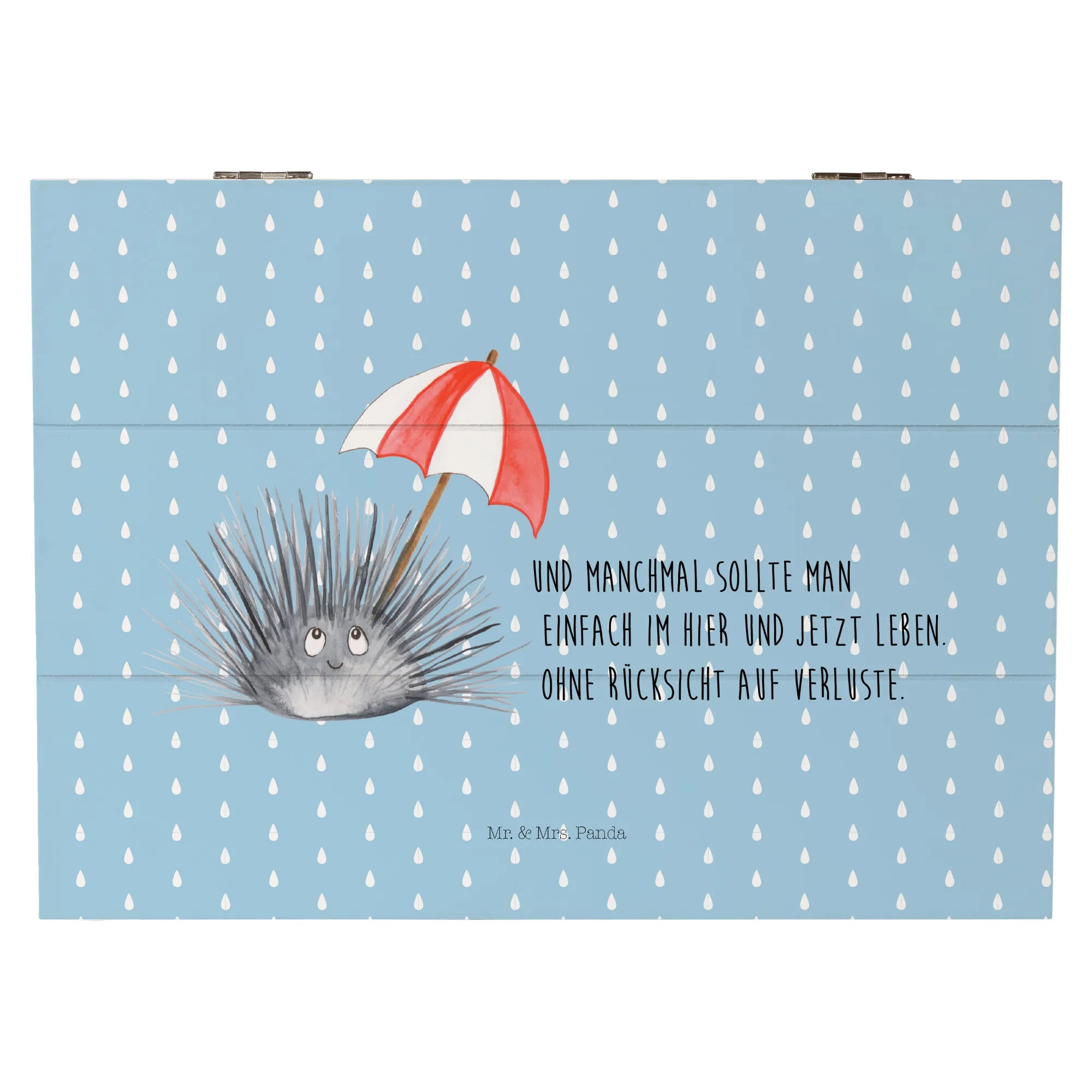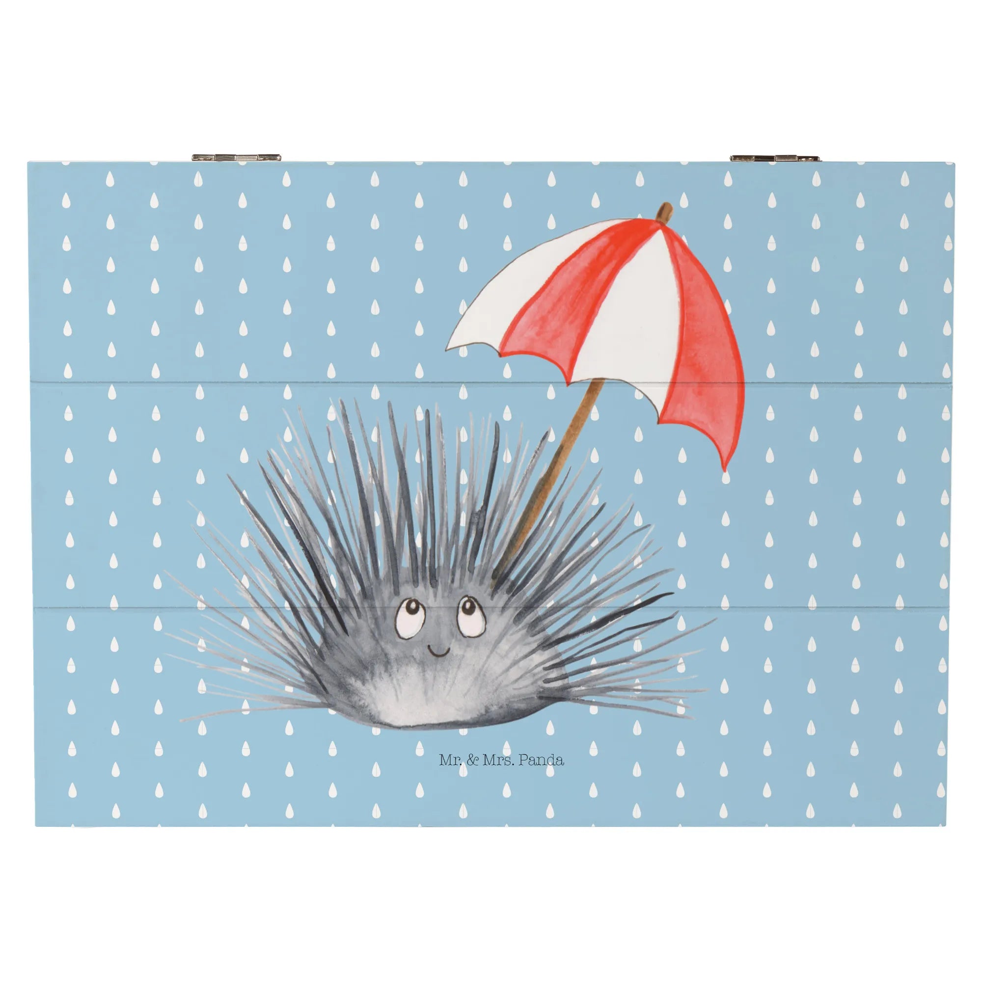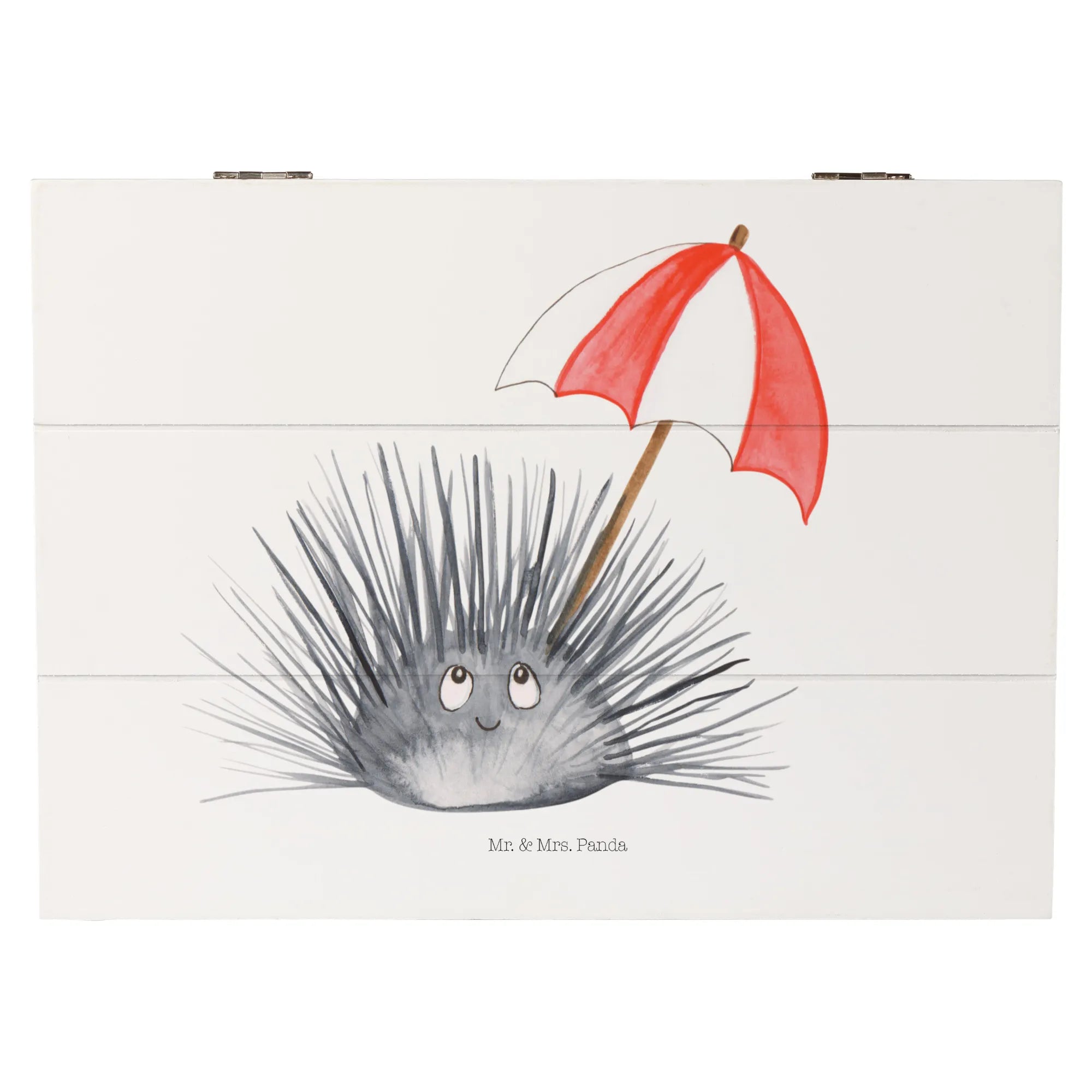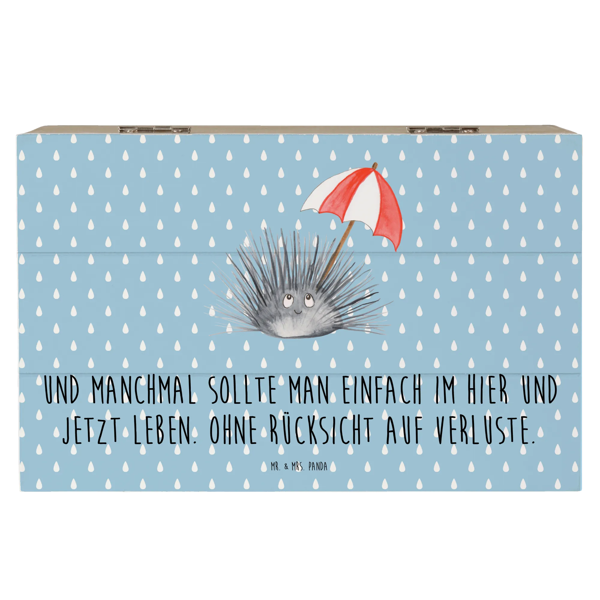 Made from robust wood fiber, this sturdy treasure chest boasts a delightful design featuring an adorable sea urchin with big eyes and a gentle smile, reminding us to embrace the beauty of living in the present. With its playful touch of whimsy, the Sea Urchin is illustrated holding a cute little red-and-white striped umbrella, perfectly embodying the lighthearted essence of ocean life.