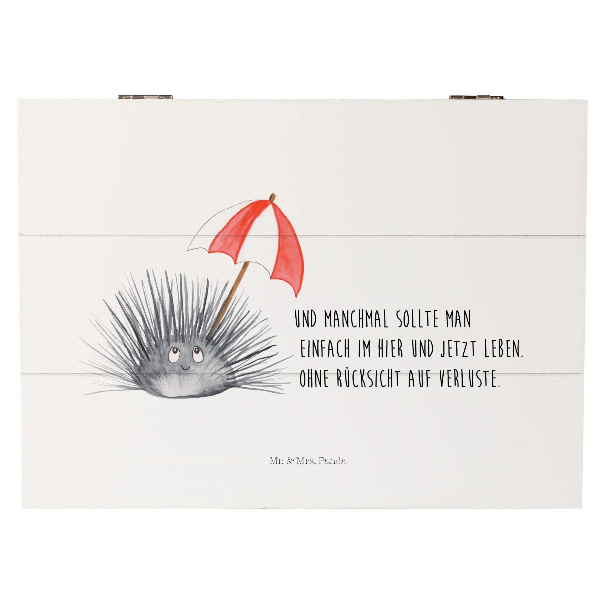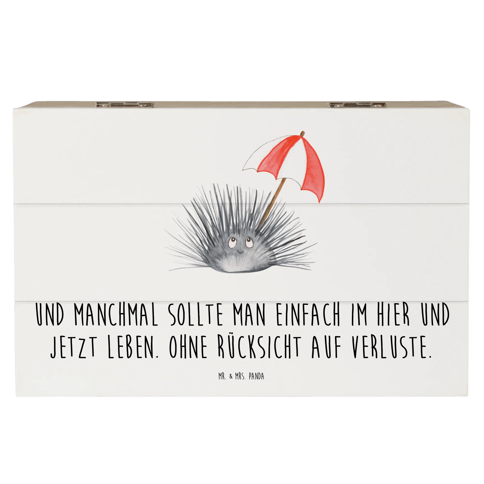 Wooden chest Sea urchins - 22 x 15 cm - with a saying - White