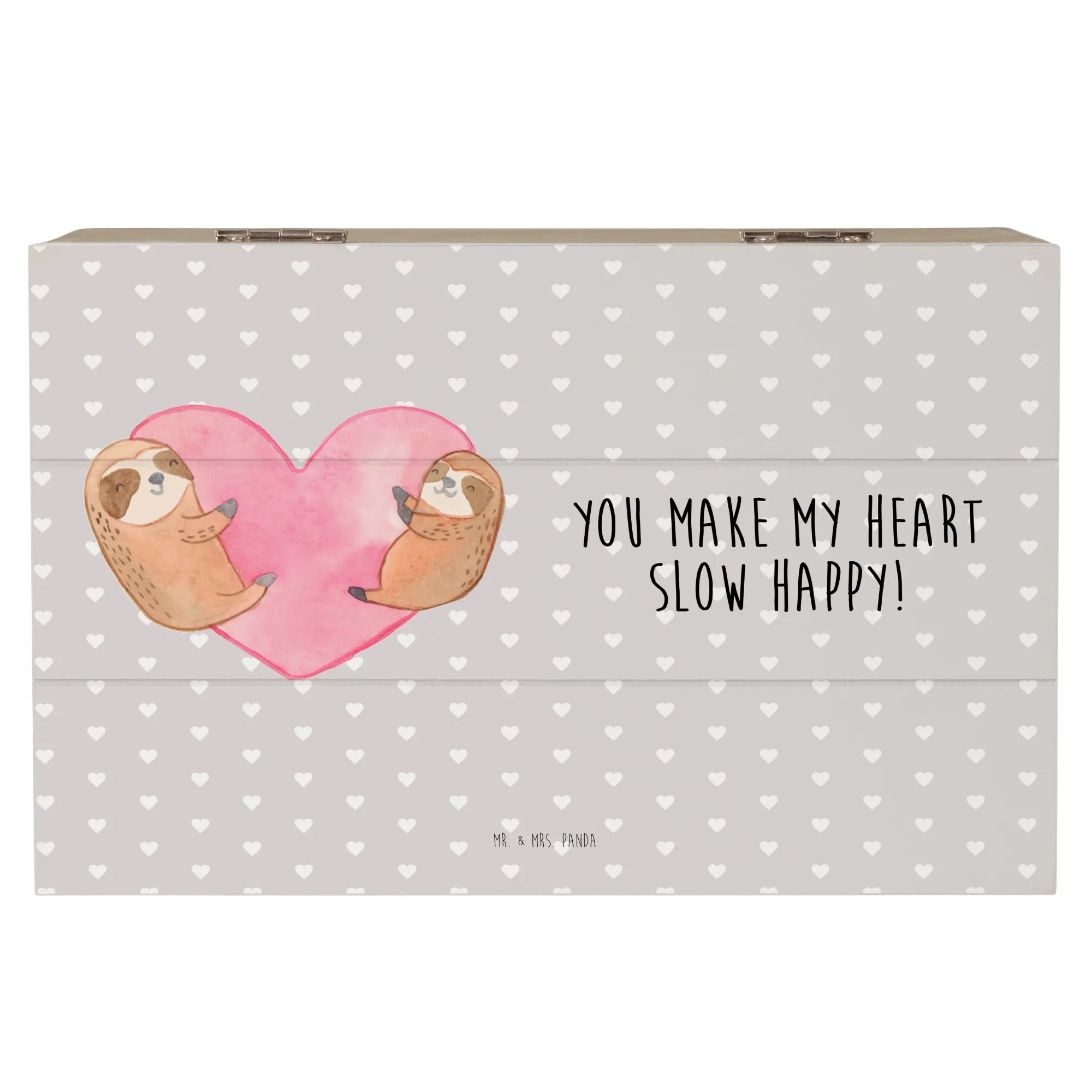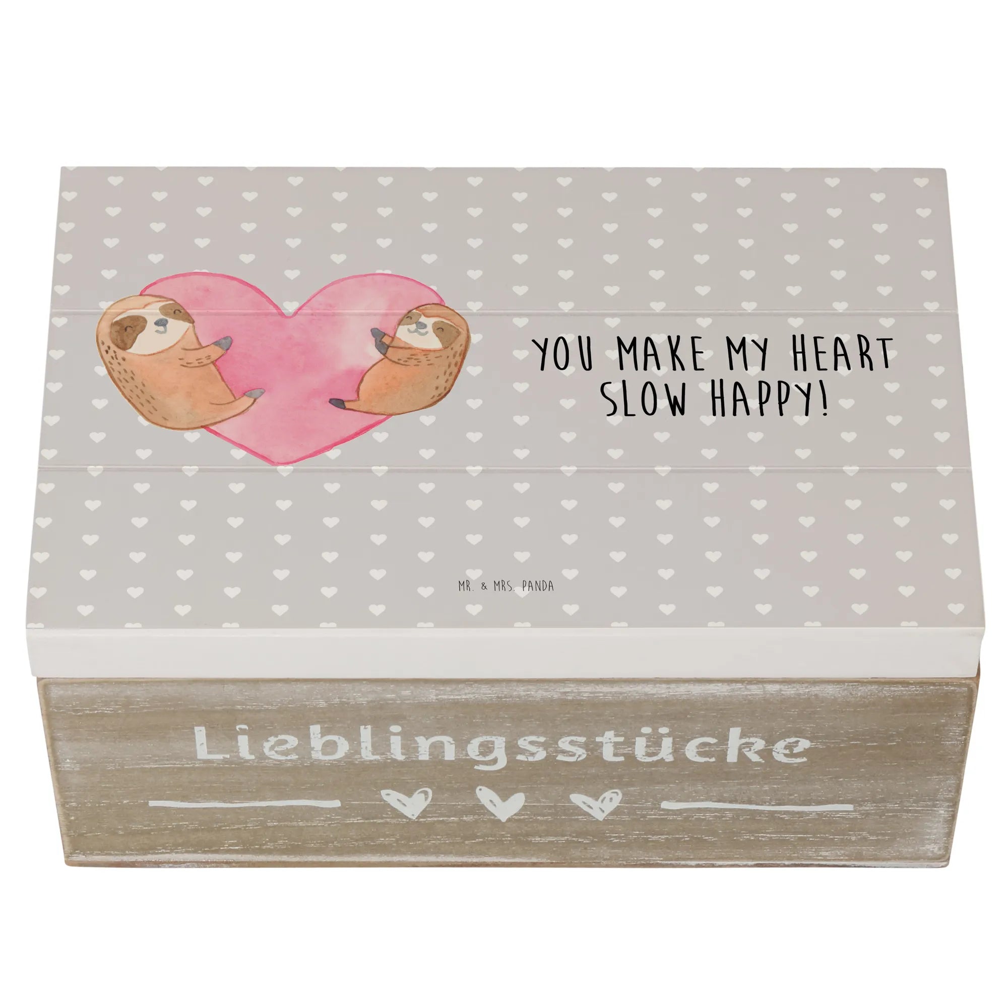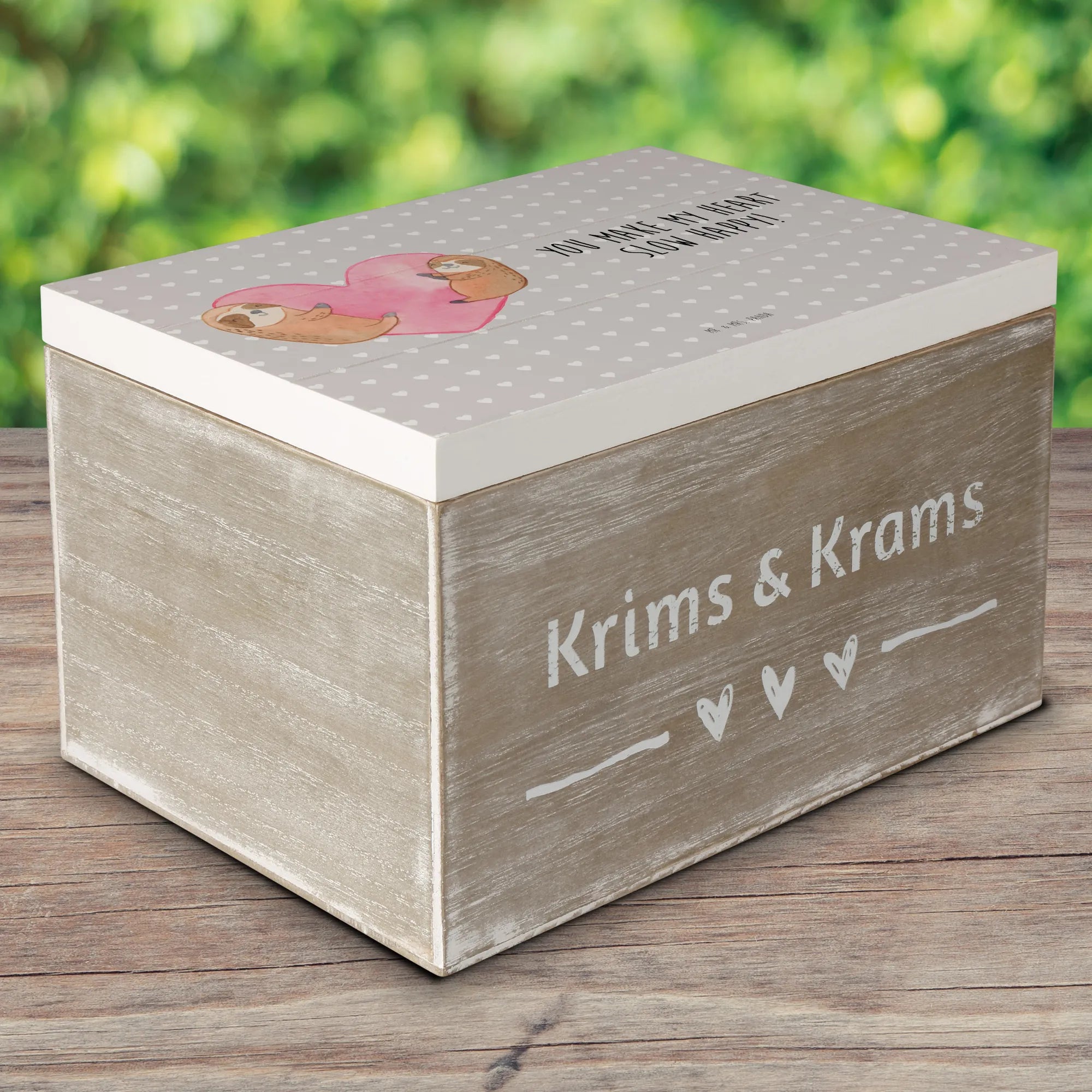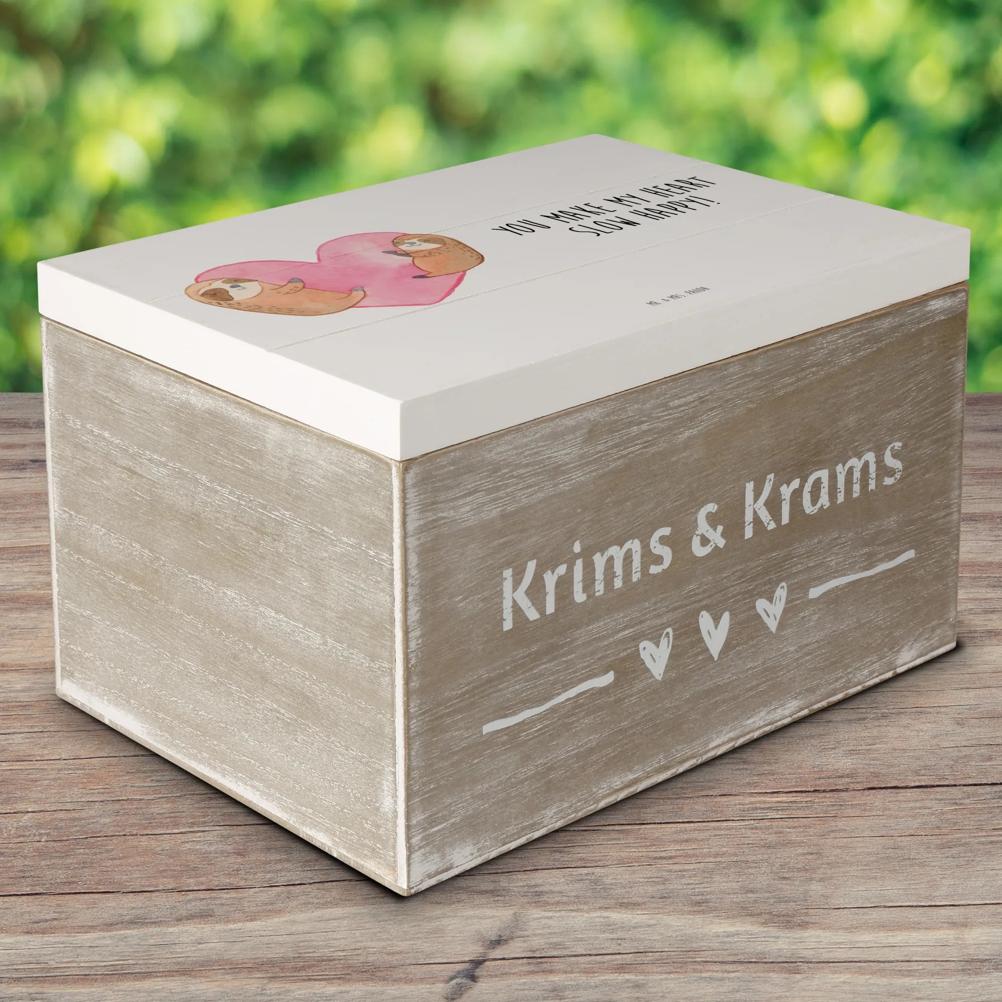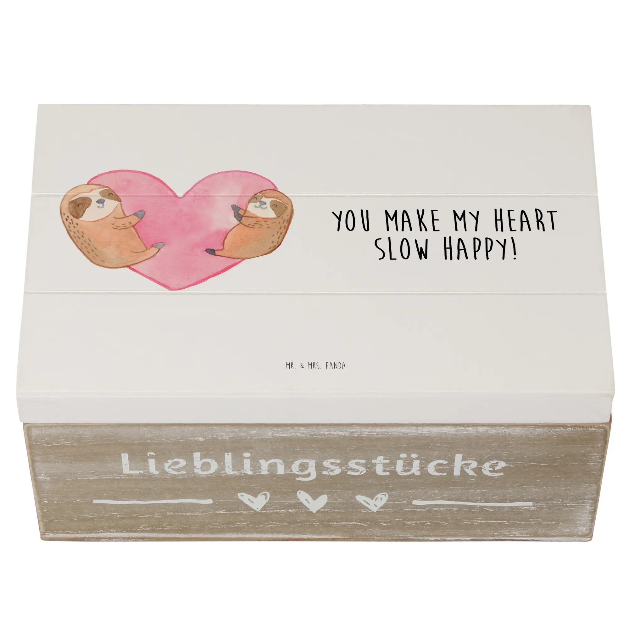 Wooden chest sloths Heart - 22 x 15 cm - White