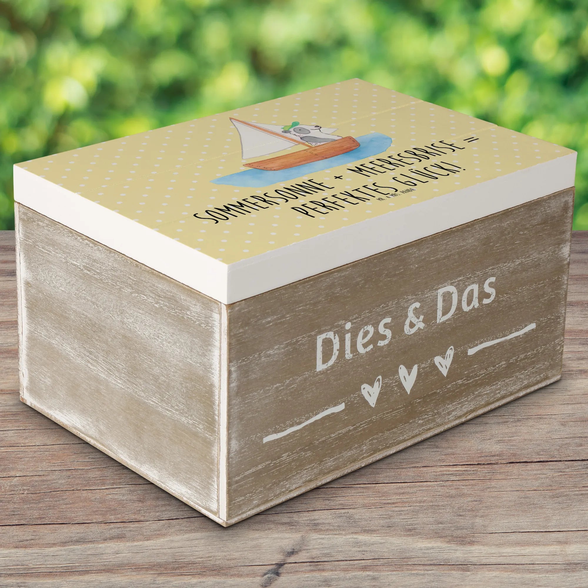 Wooden chest Sommersonne + Meeresbrise = perfektes Glück! - 22 x 15 cm - Pastel Yellow