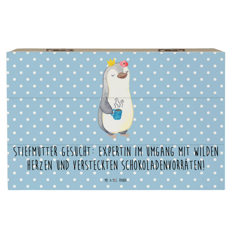 Wooden chest Stiefmutter gesucht: Expertin im Umgang mit wilden Herzen und versteckten Schokoladenvorräten! - 19 x 12 cm - Blue Pastel