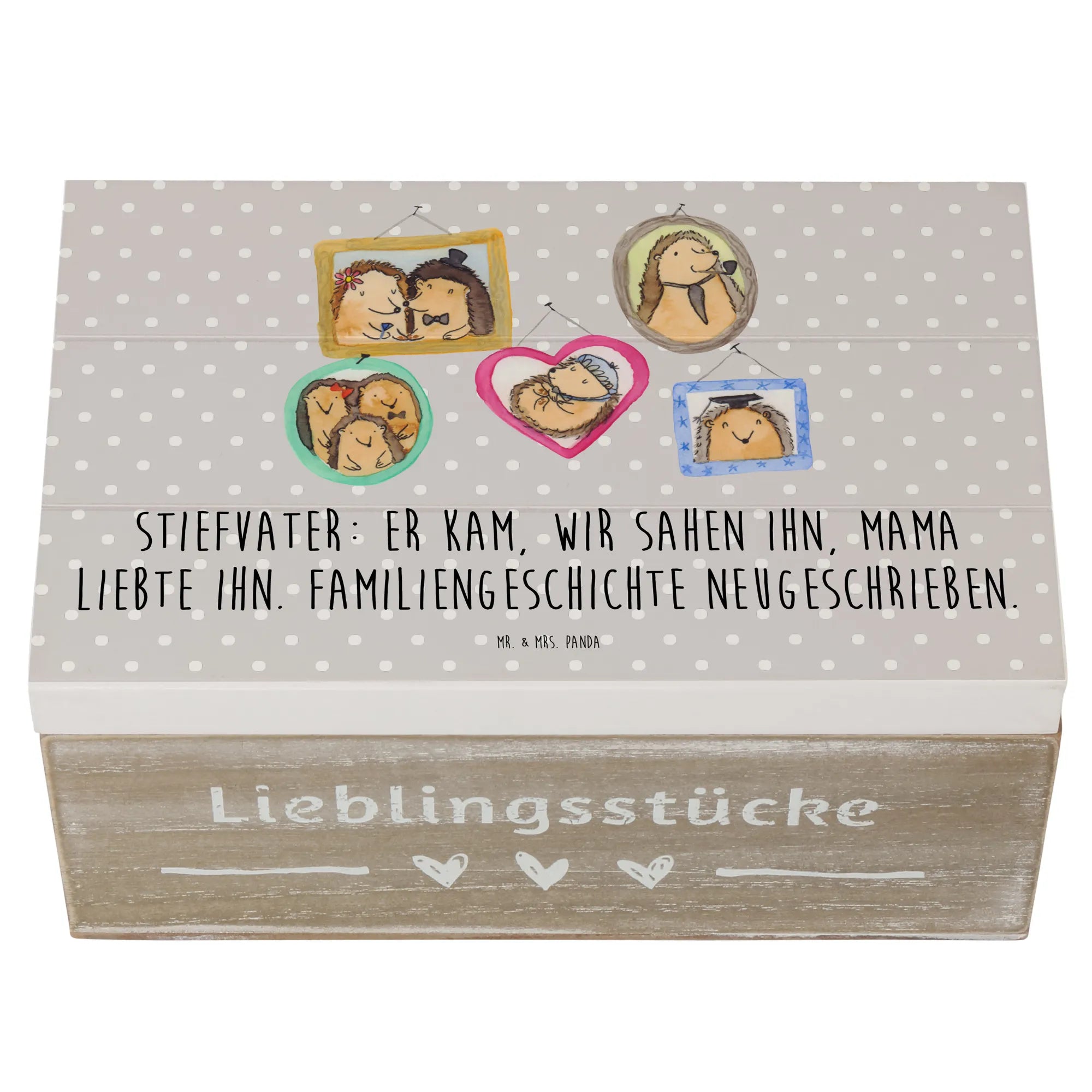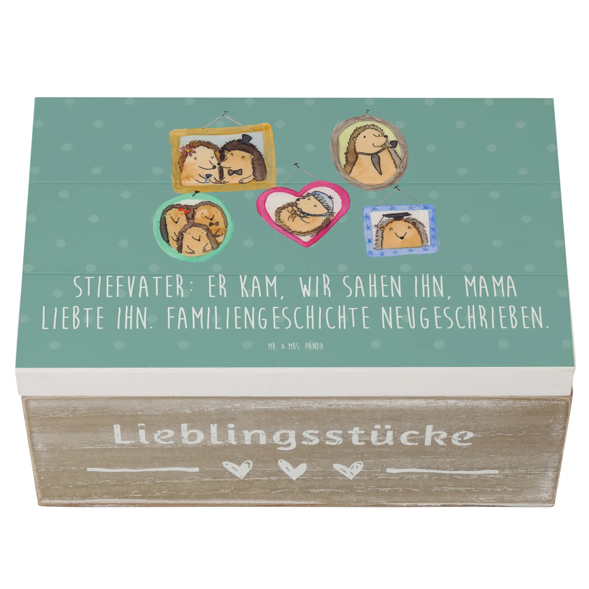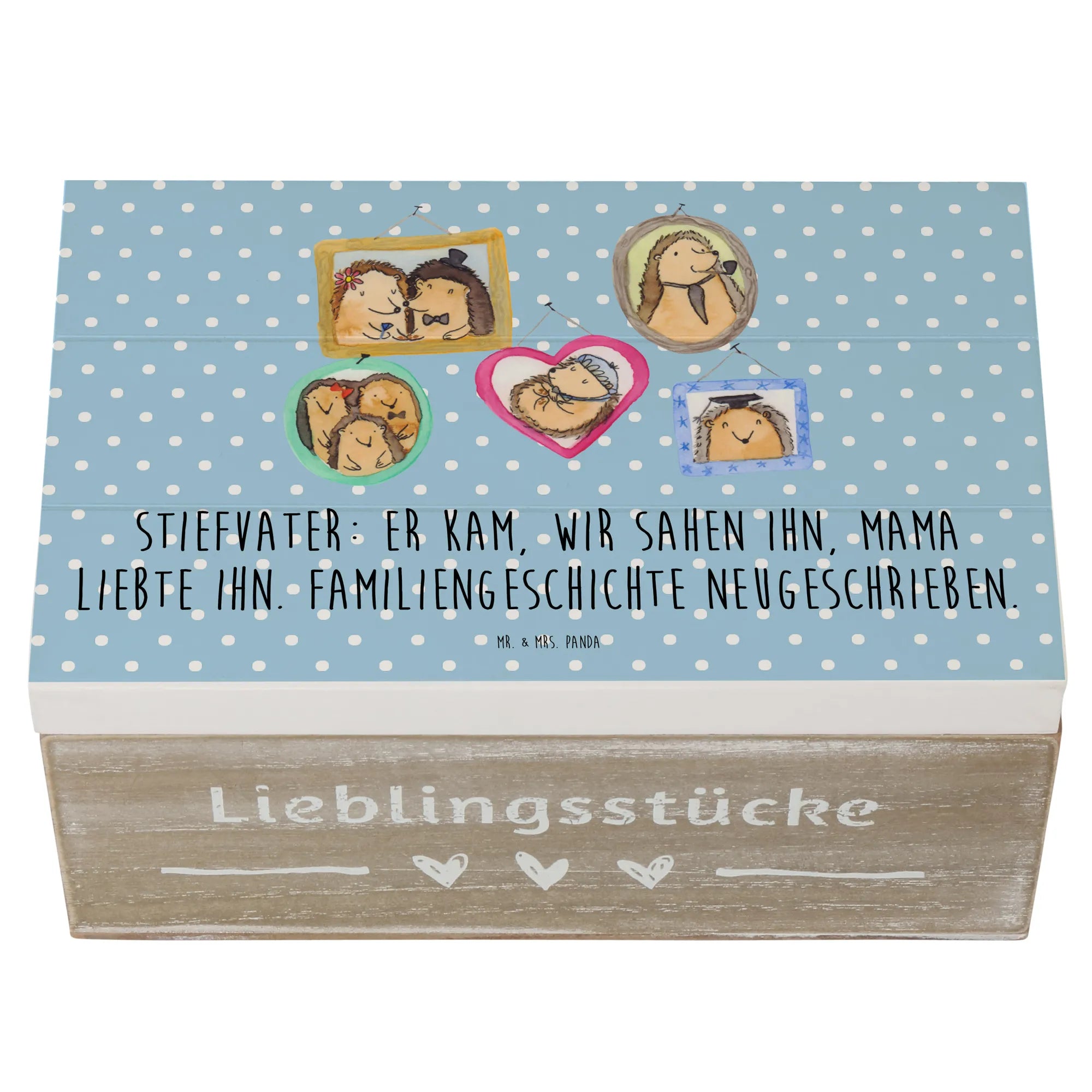 Wooden chest Stiefvater: Er kam, wir sahen ihn, Mama liebte ihn. Familiengeschichte neugeschrieben. - 22 x 15 cm - Pastel Blue