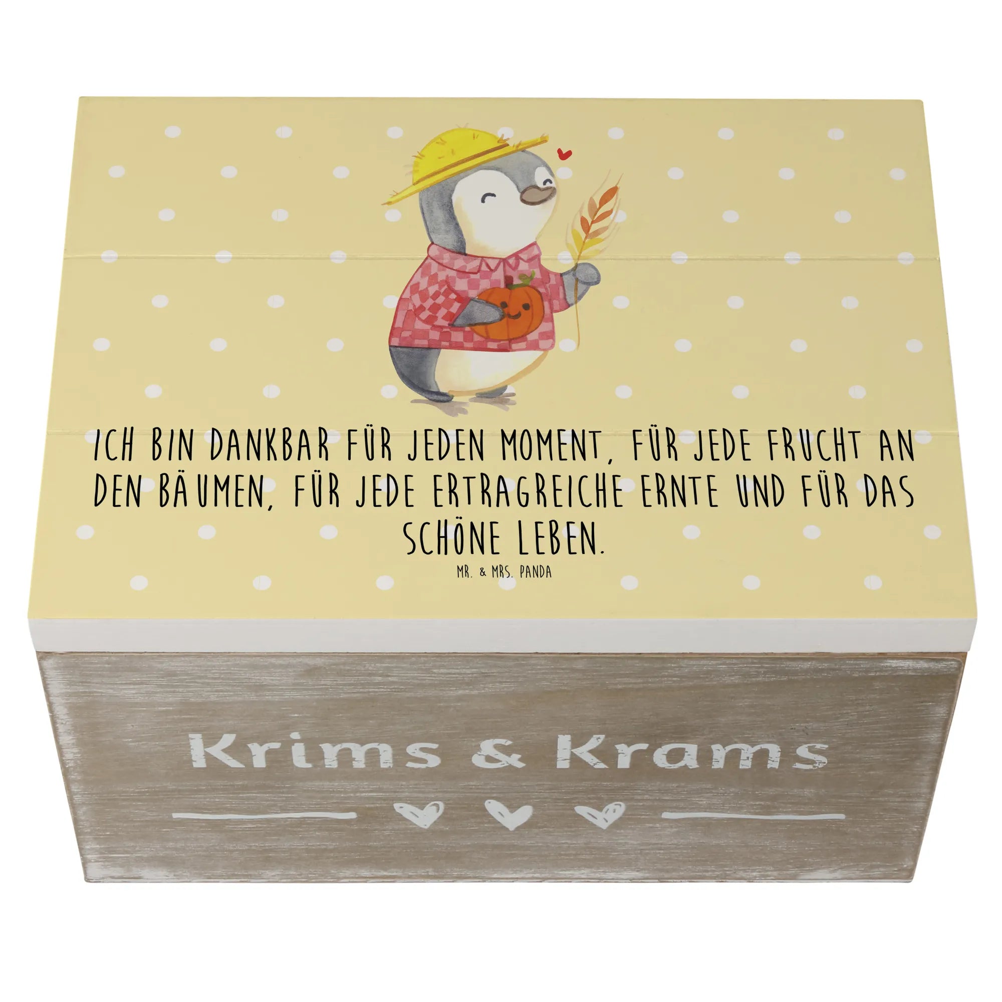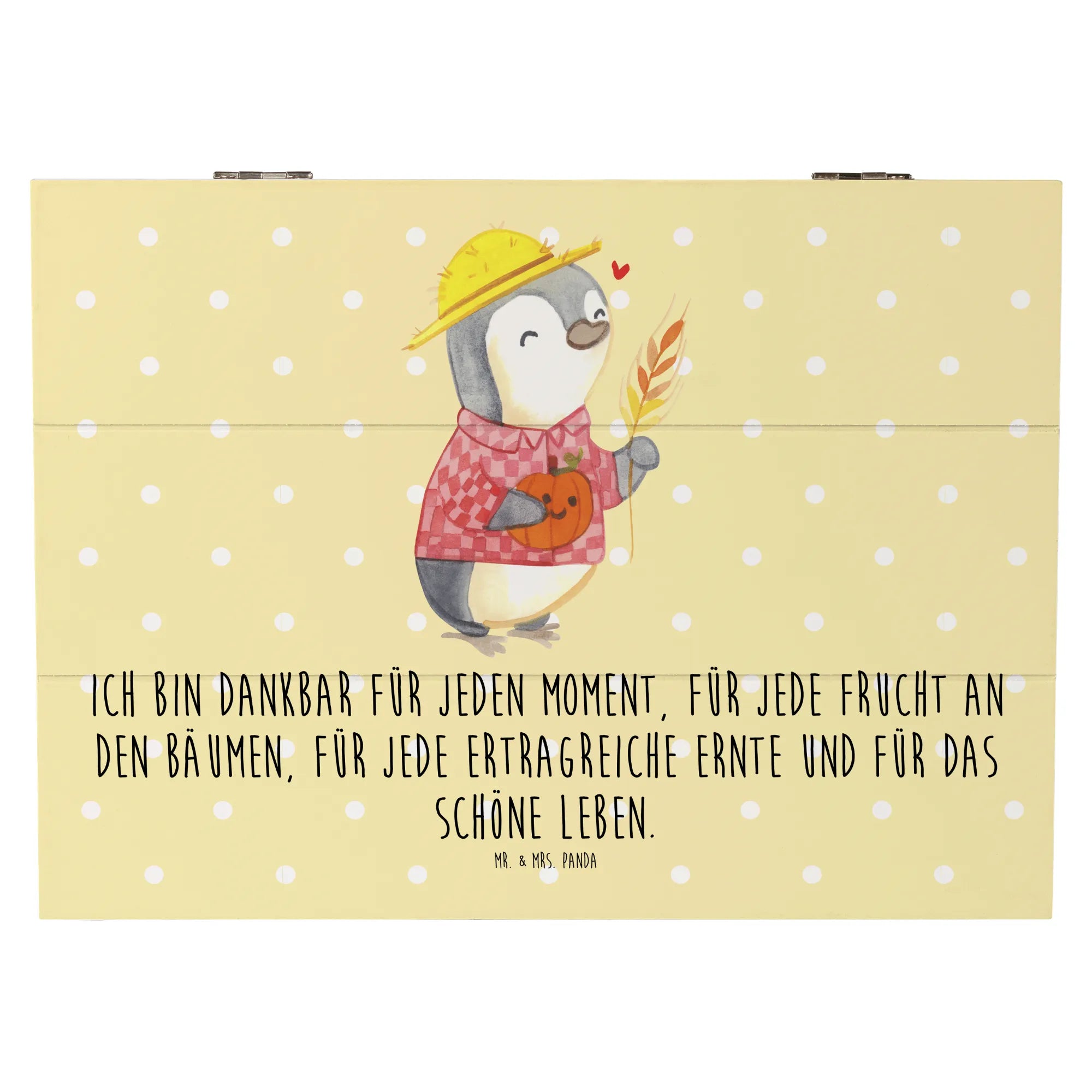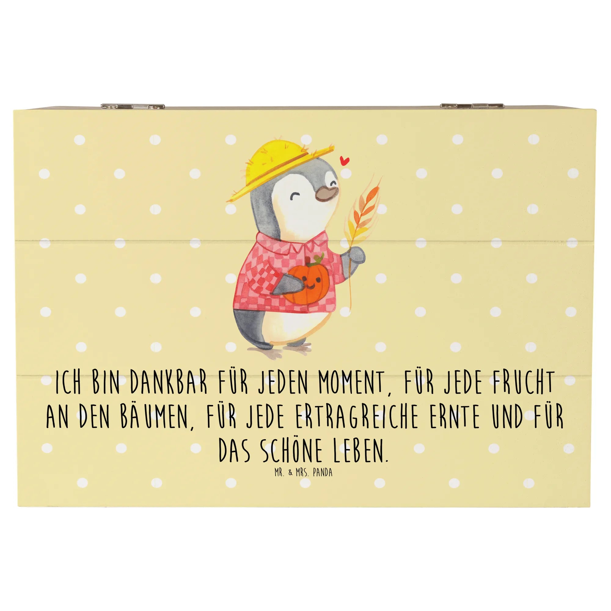Wooden chest Thanksgiving Penguin - 22 x 15 cm - Yellow Pastel
