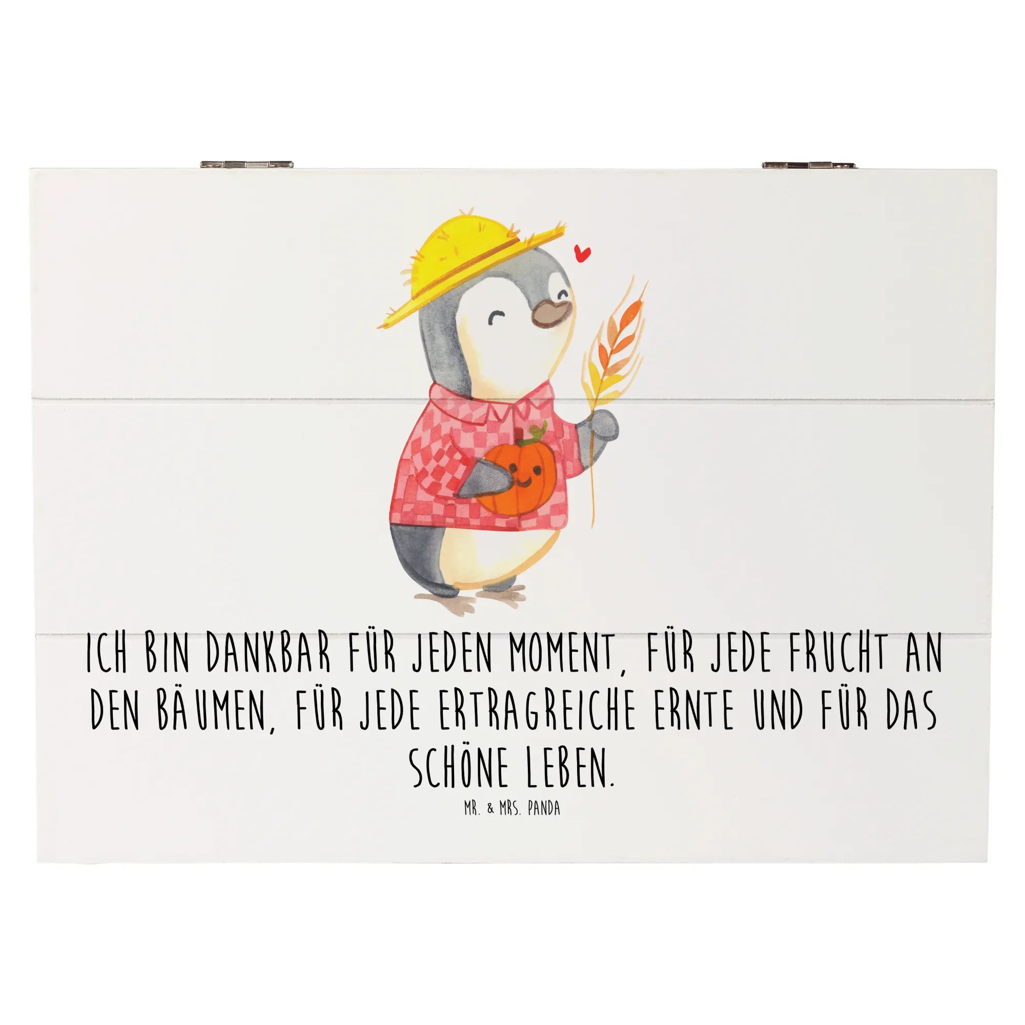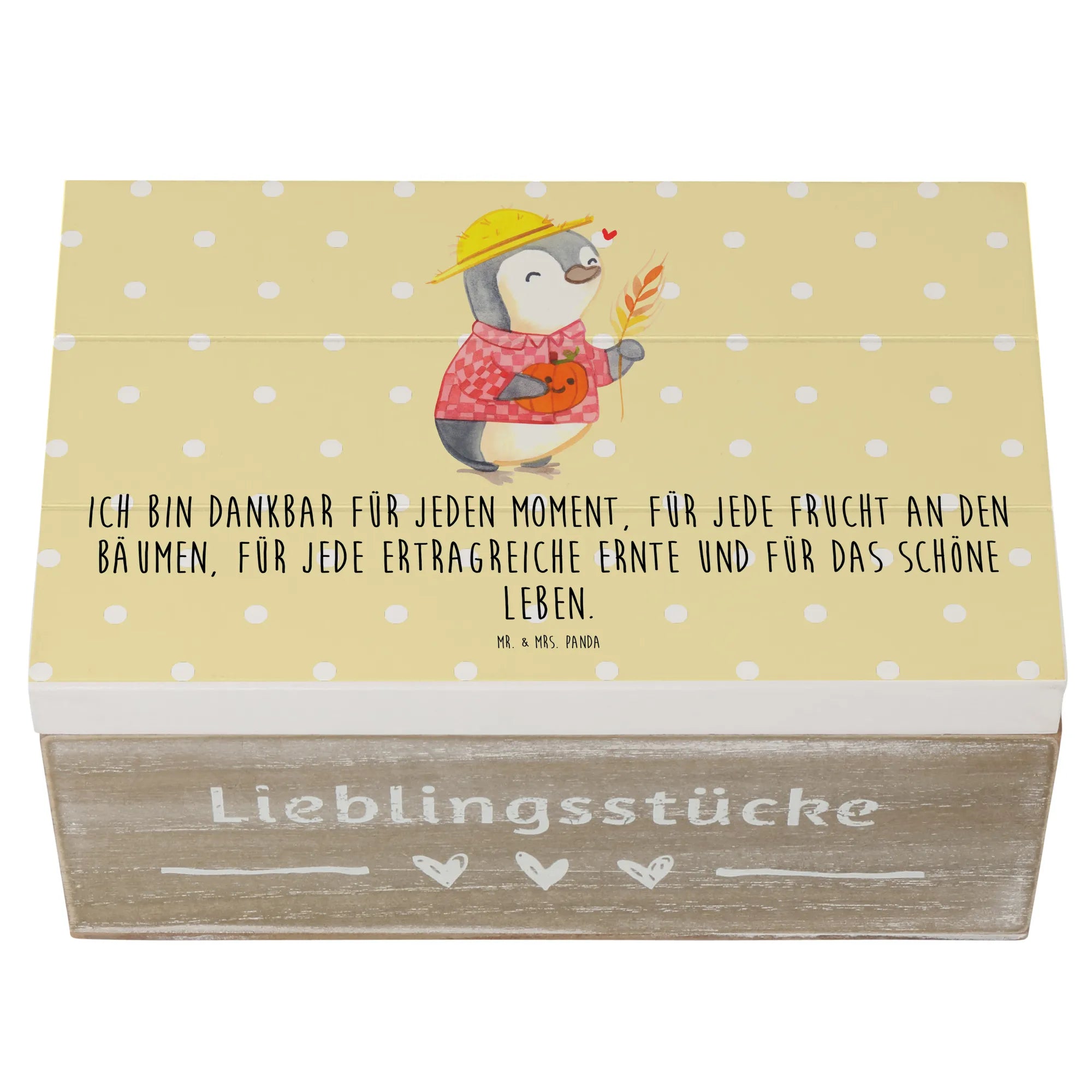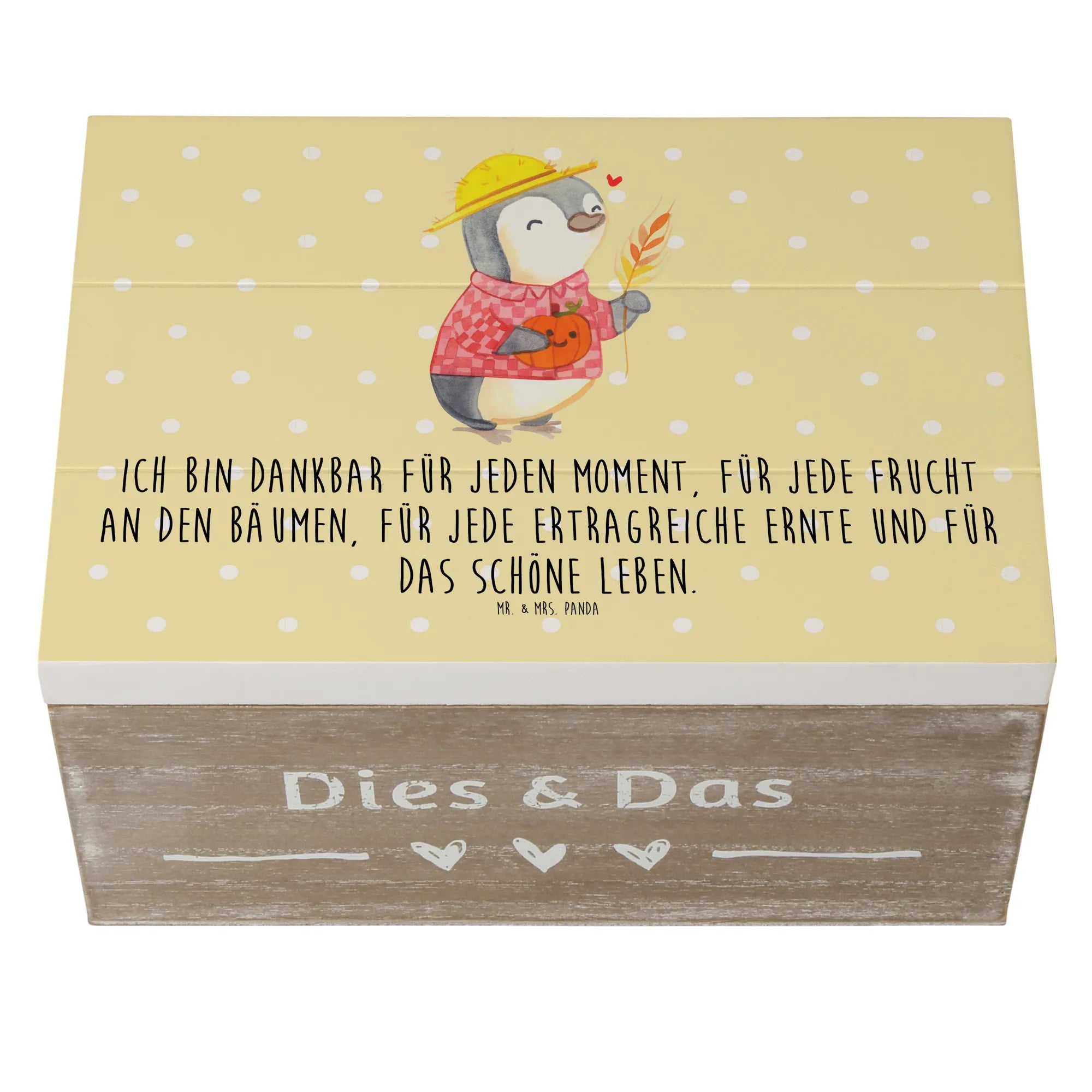 Wooden chest Thanksgiving Penguin - 22 x 15 cm - Yellow Pastel