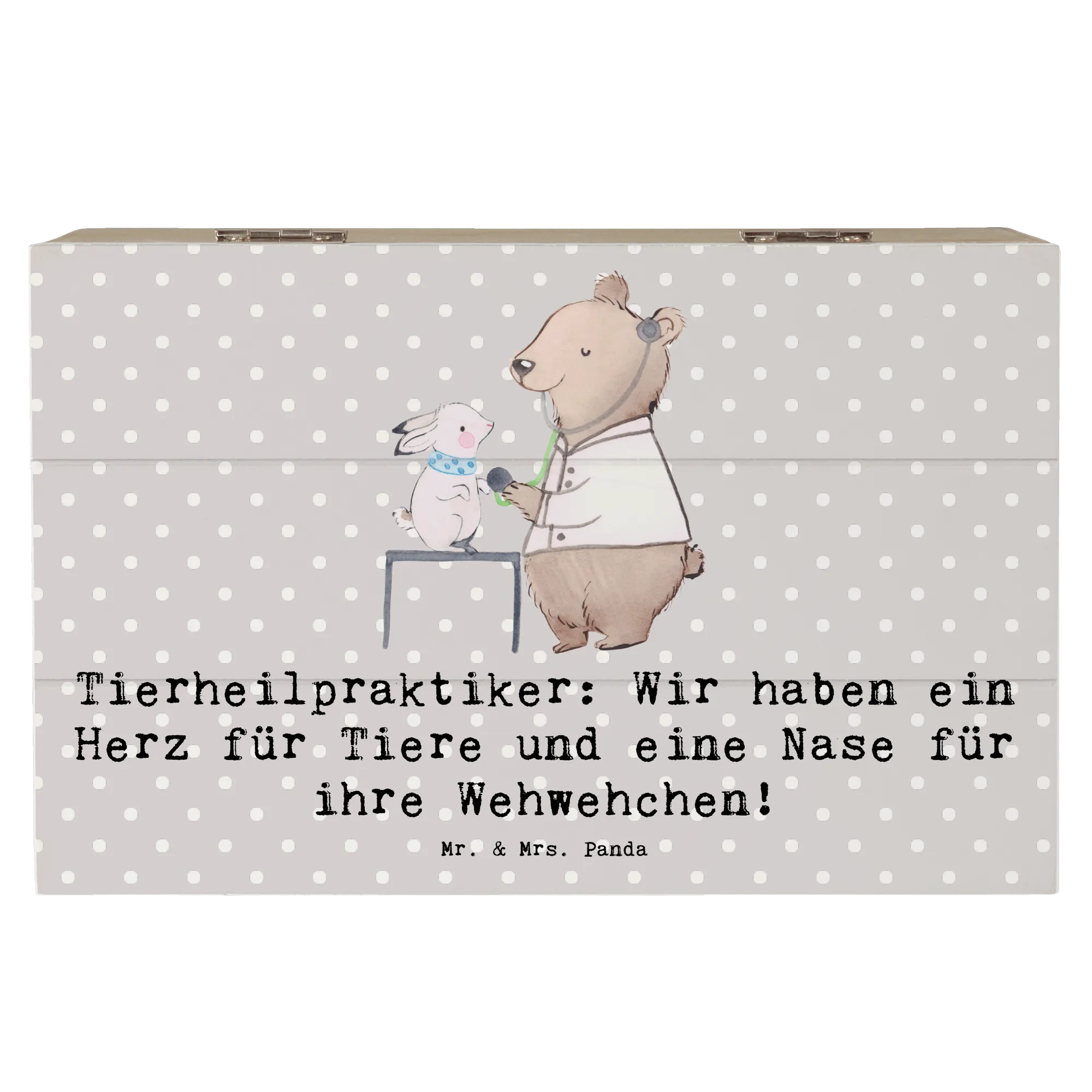 Wooden chest Tierheilpraktiker: Wir haben ein Herz für Tiere und eine Nase für ihre Wehwehchen! - 22 x 15 cm - Grey Pastel