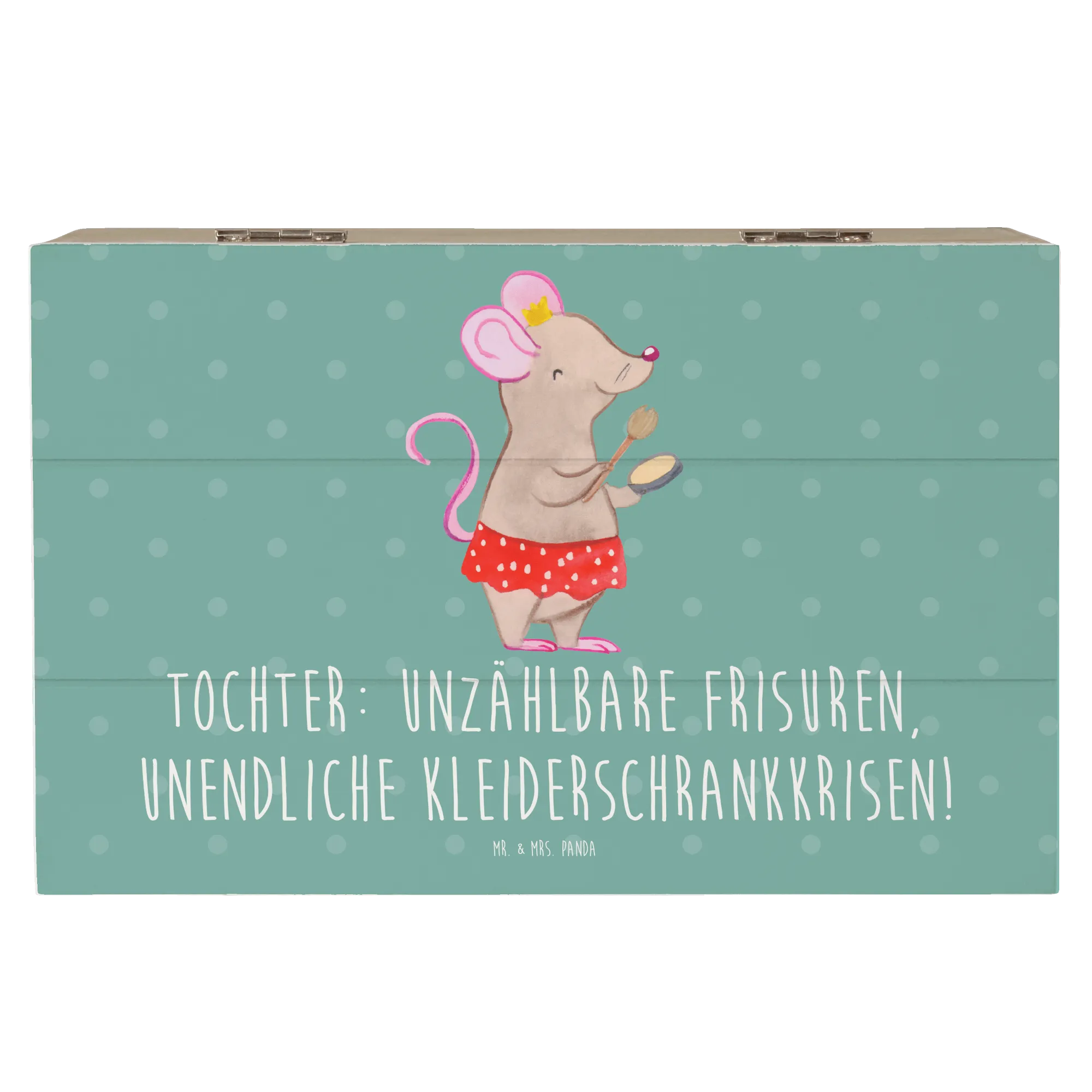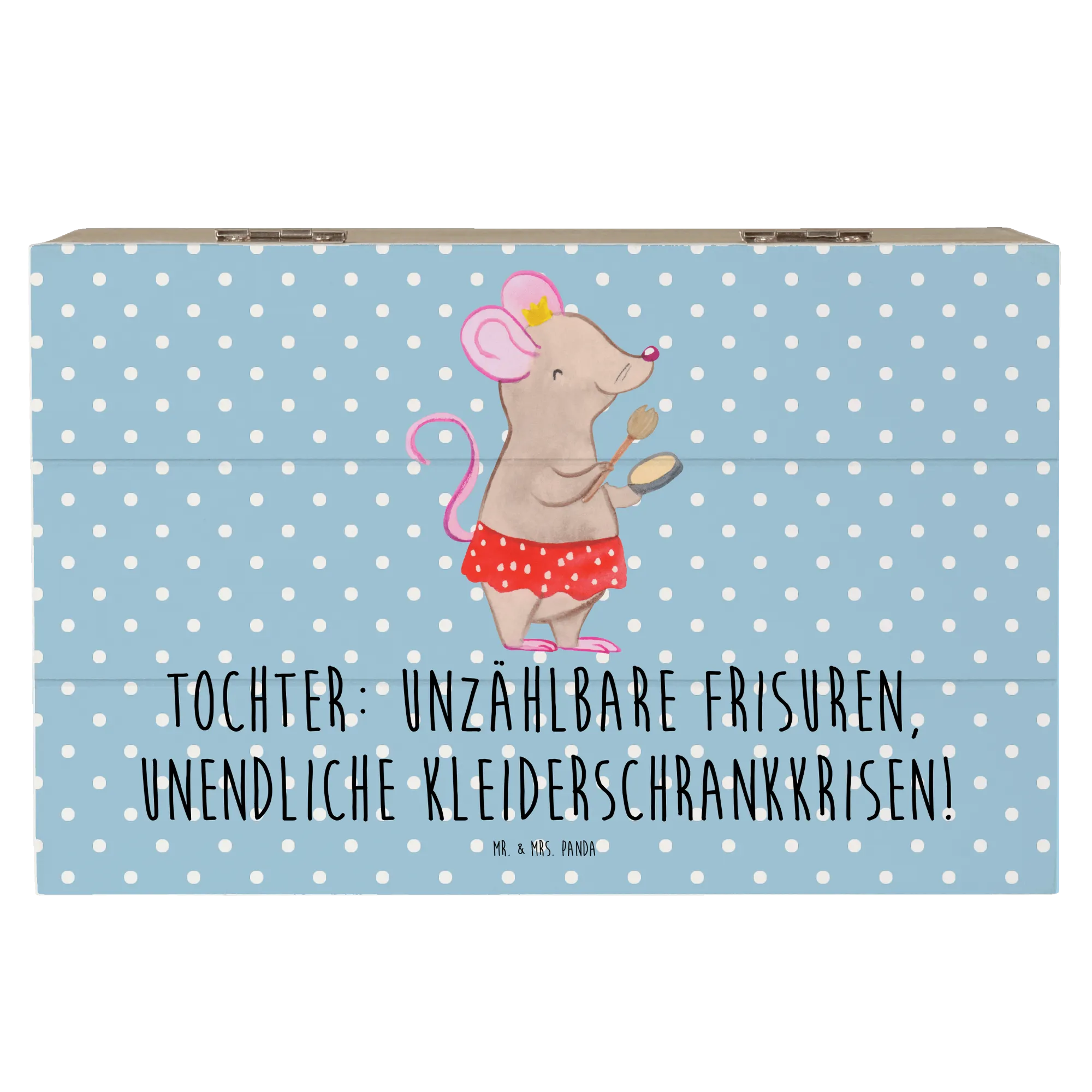 Wooden chest Tochter: Unzählbare Frisuren, unendliche Kleiderschrankkrisen! - 22 x 15 cm - Blue Pastel