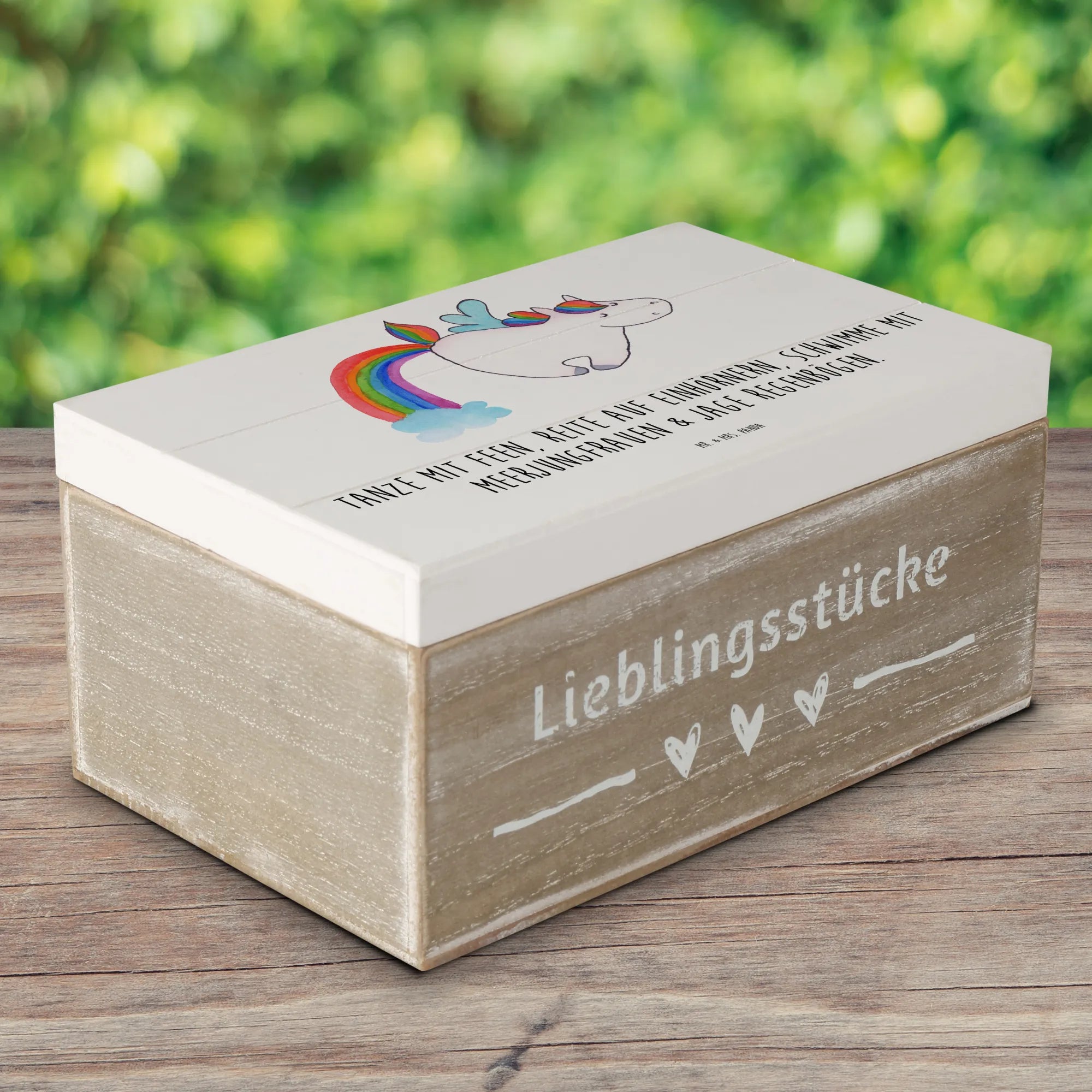 Wooden chest unicorn Pegasus - 22 x 15 cm - with saying - White
