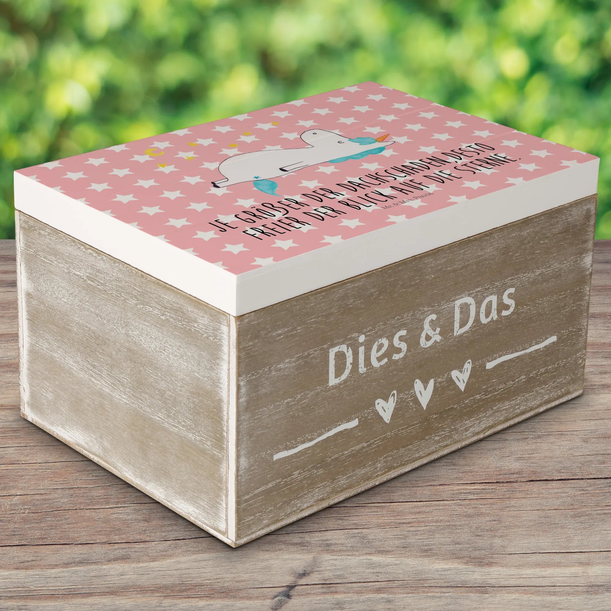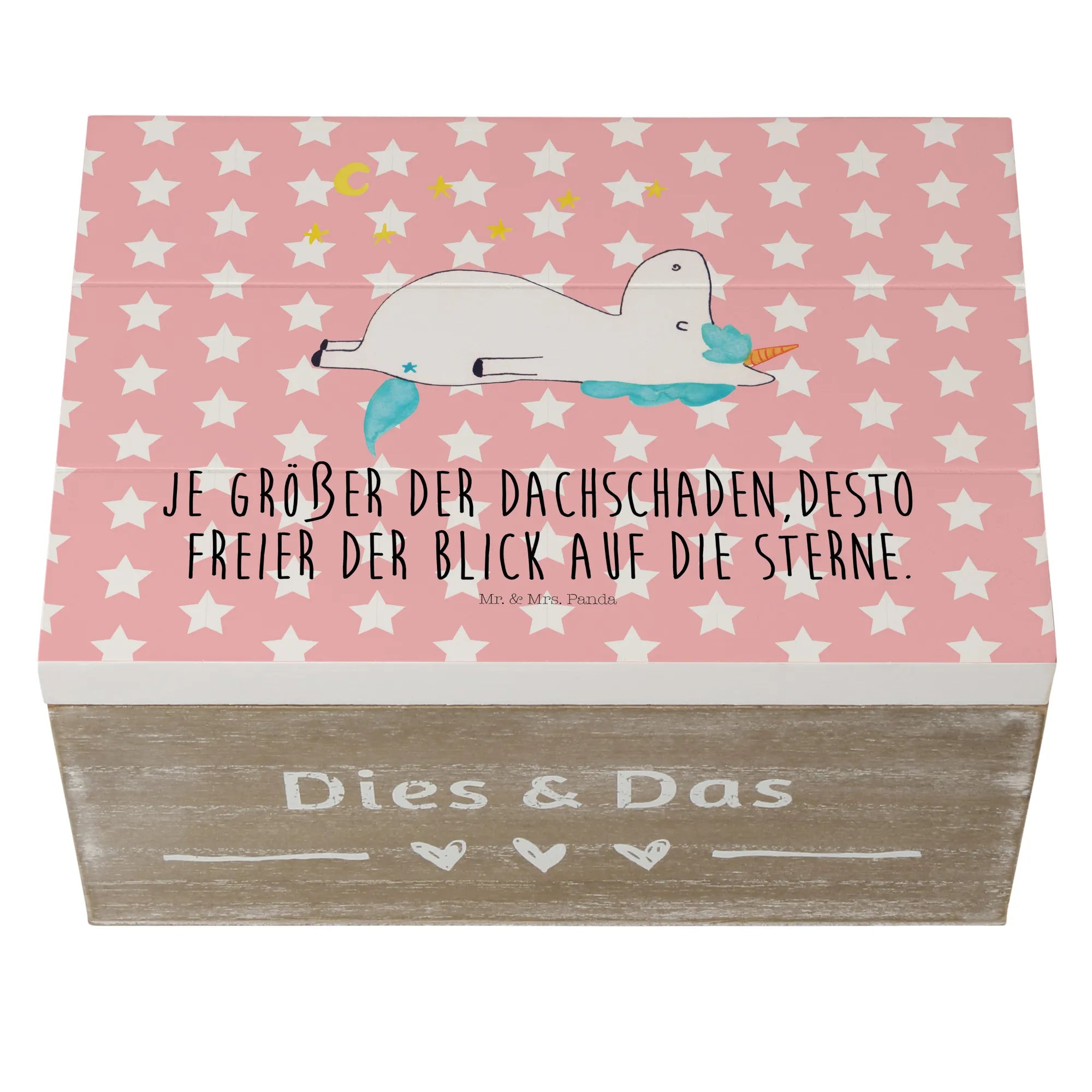 In summary, whether you are celebrating a milestone, welcoming a new friend into your life, or simply wishing to brighten someone's day, this Wooden Box with Unicorn Stars from the Unicorn-Collection by Mr. & Mrs. Panda is brimming with personality and charm. Make every occasion special with a gift that combines functionality and enchantment in one uniquely delightful package!