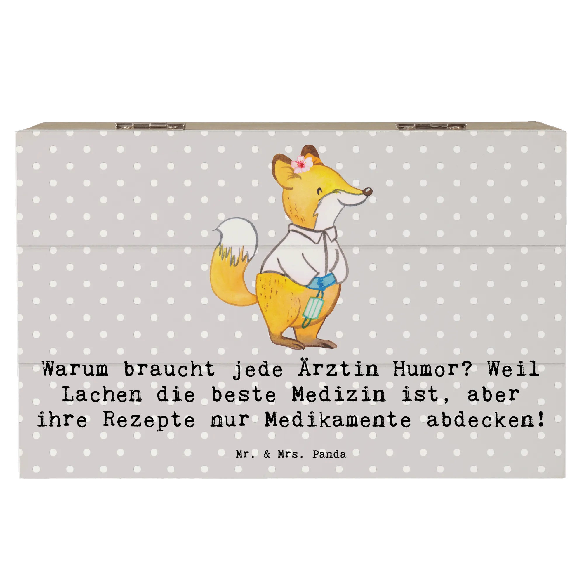 Wooden chest Warum braucht jede Ärztin Humor? Weil Lachen die beste Medizin ist, aber ihre Rezepte nur Medikamente abdecken! - 22 x 15 cm - Grey Pastel
