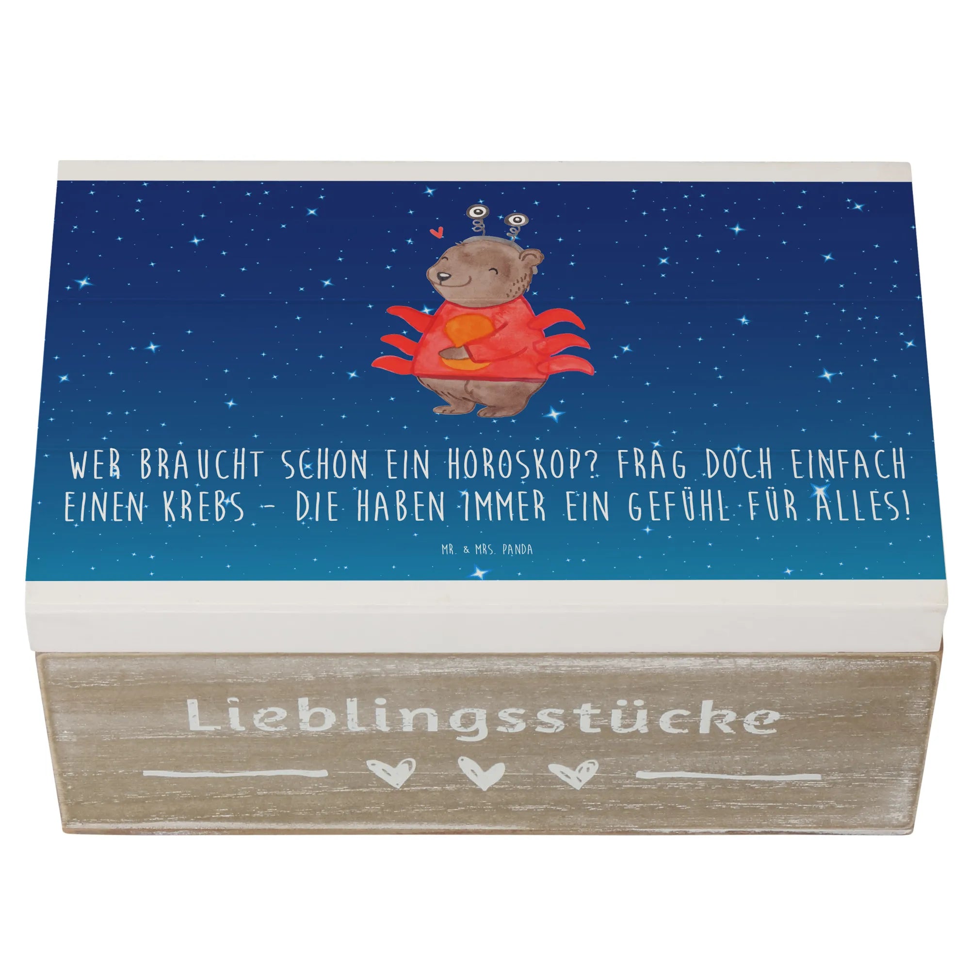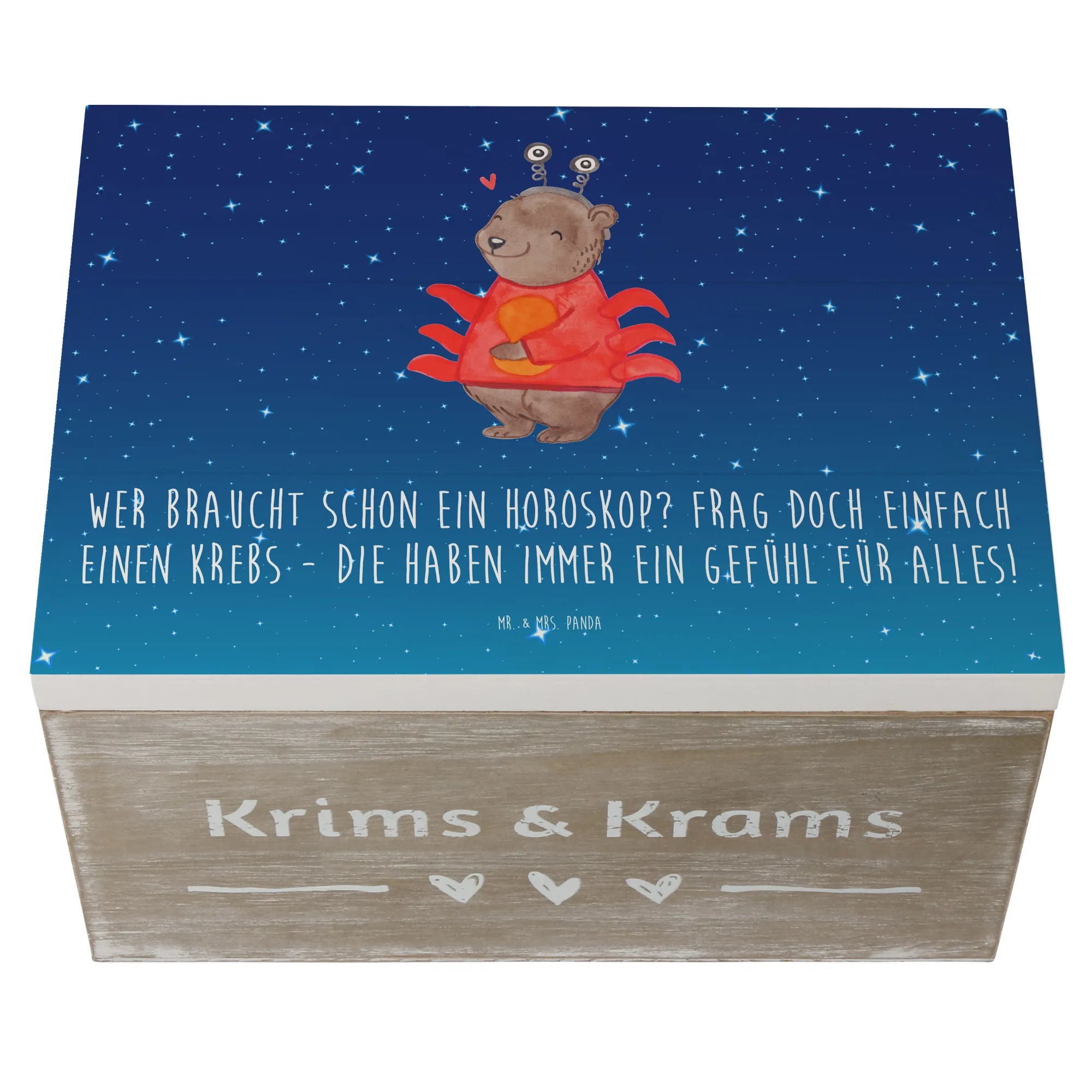 Wooden chest Wer braucht schon ein Horoskop? Frag doch einfach einen Krebs - die haben immer ein Gefühl für alles! - 19 x 12 cm - White