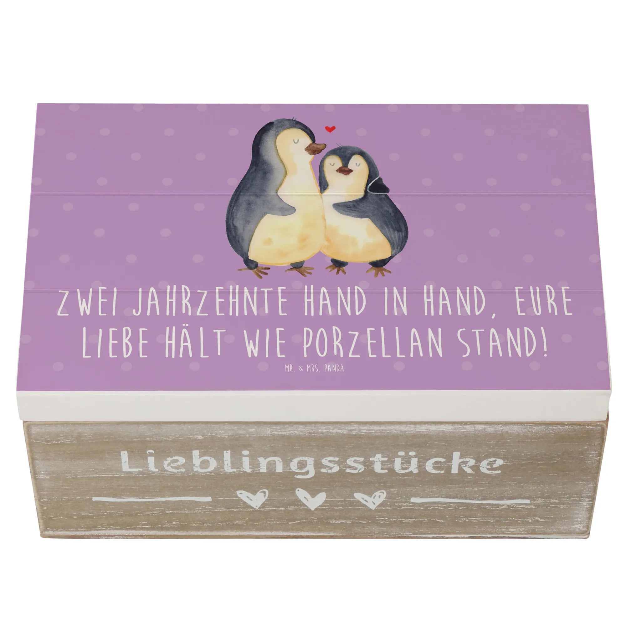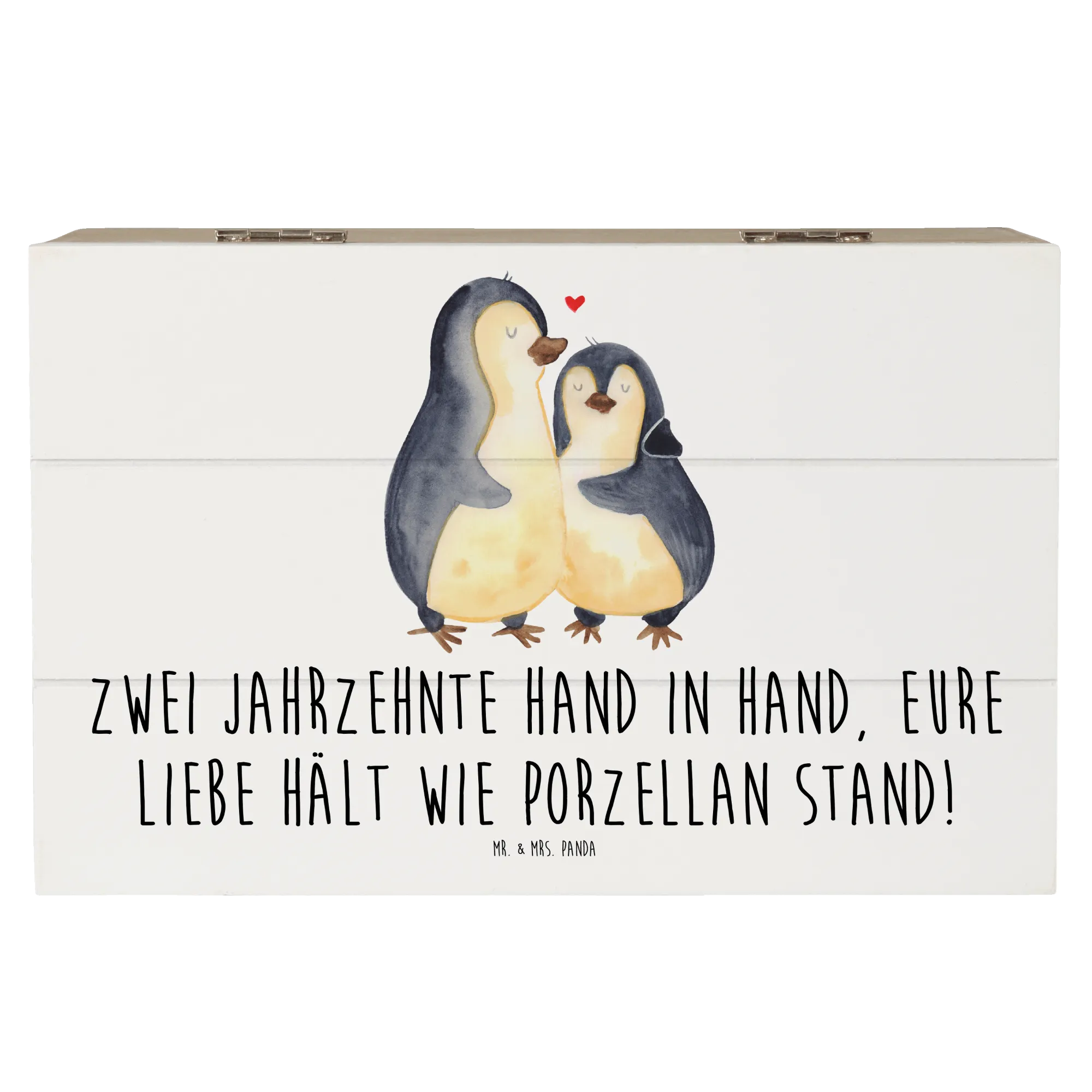 Wooden chest Zwei Jahrzehnte Hand in Hand, Eure Liebe hält wie Porzellan stand! - 22 x 15 cm - White