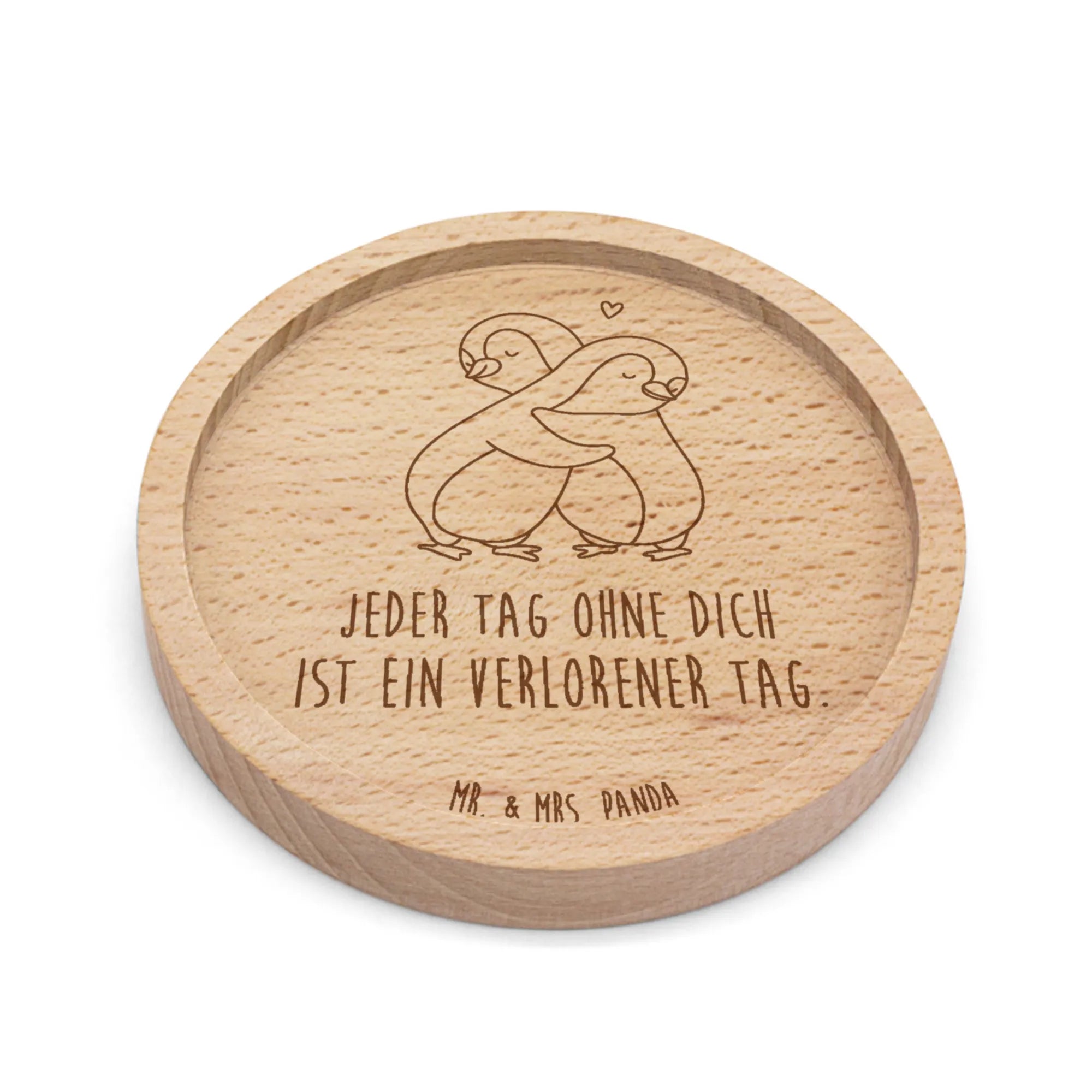 Wooden Coaster penguins Cuddle - with saying