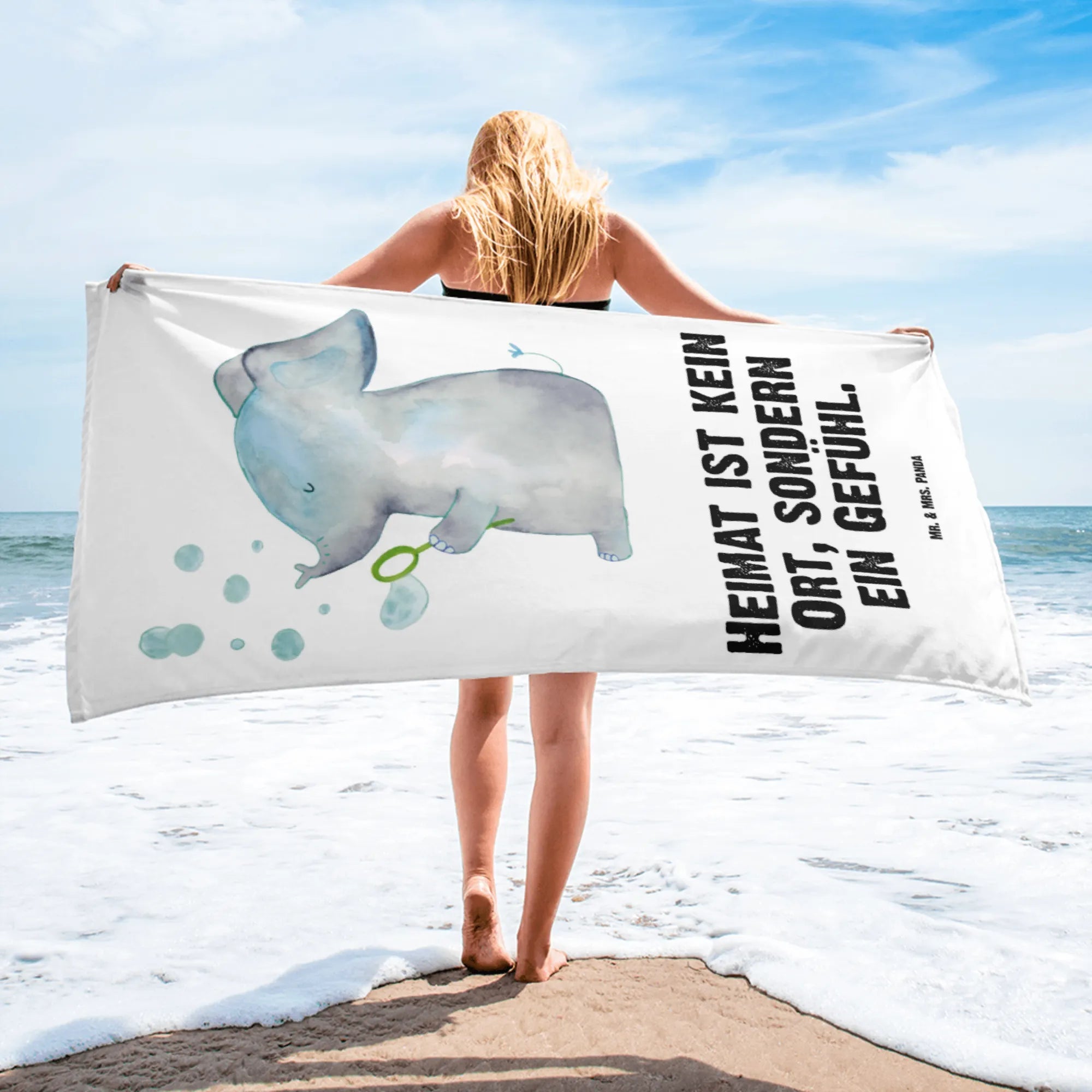So, if you’re someone who loves to sprinkle happiness in small gestures, or if you know someone who could use a dose of joy in their life, this oversized towel featuring an elephant blowing soap bubbles is the perfect present. Embrace the feeling of home, celebrate little moments of happiness, and make bath time or beach days all the more special with this delightful towel. You'll be spreading love and comfort, one bubble at a time!