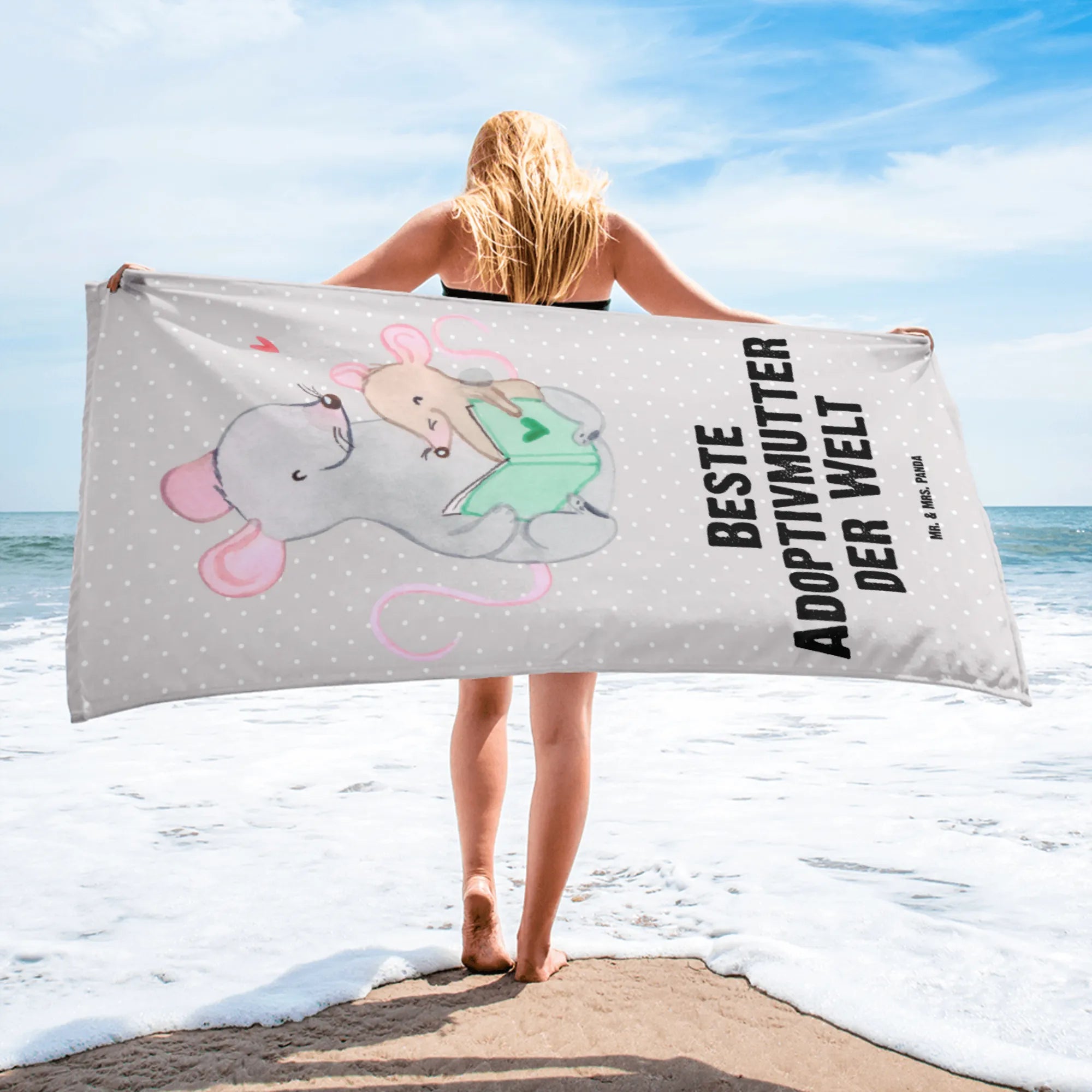 XL bath towel Mouse Best adoptive mother in the world - White
