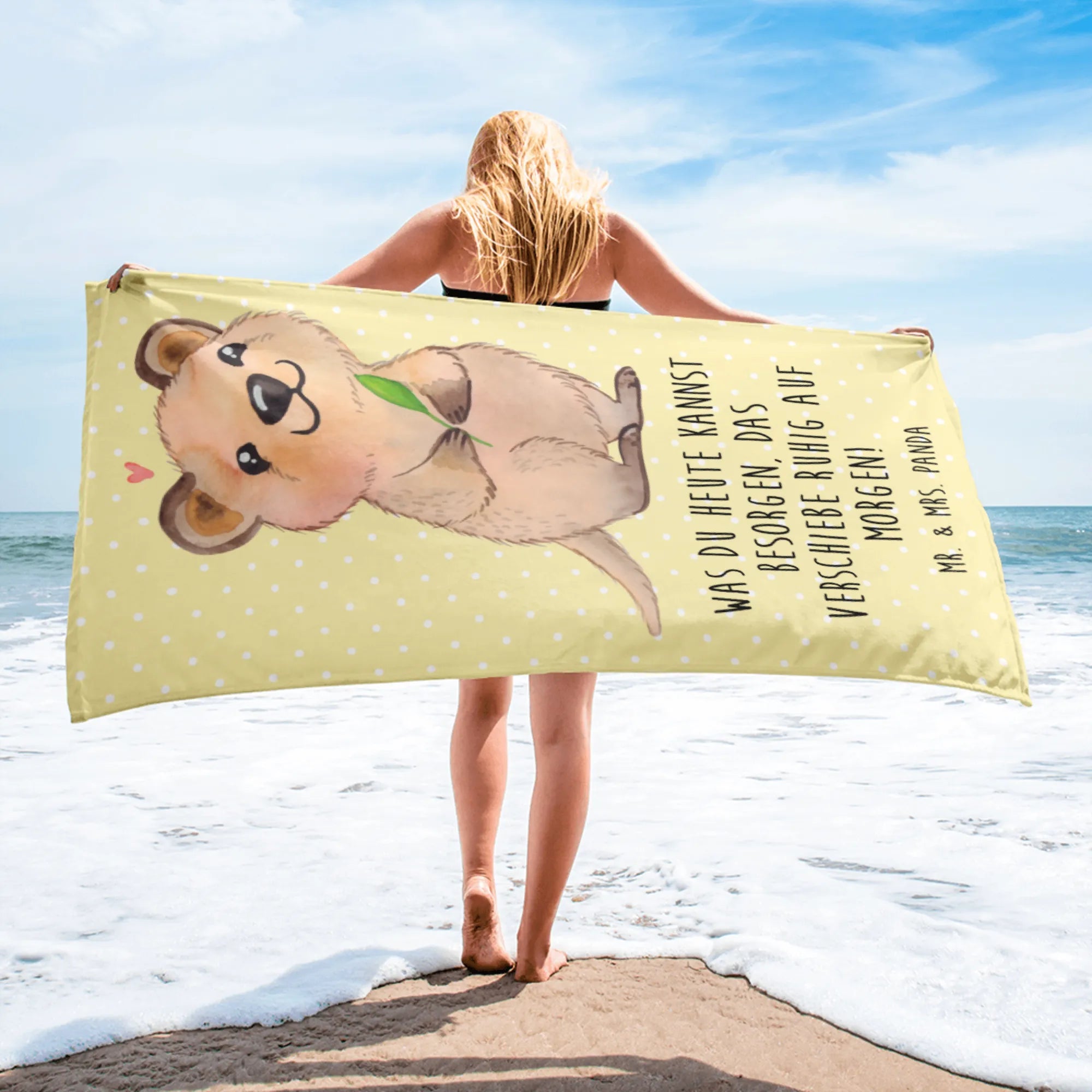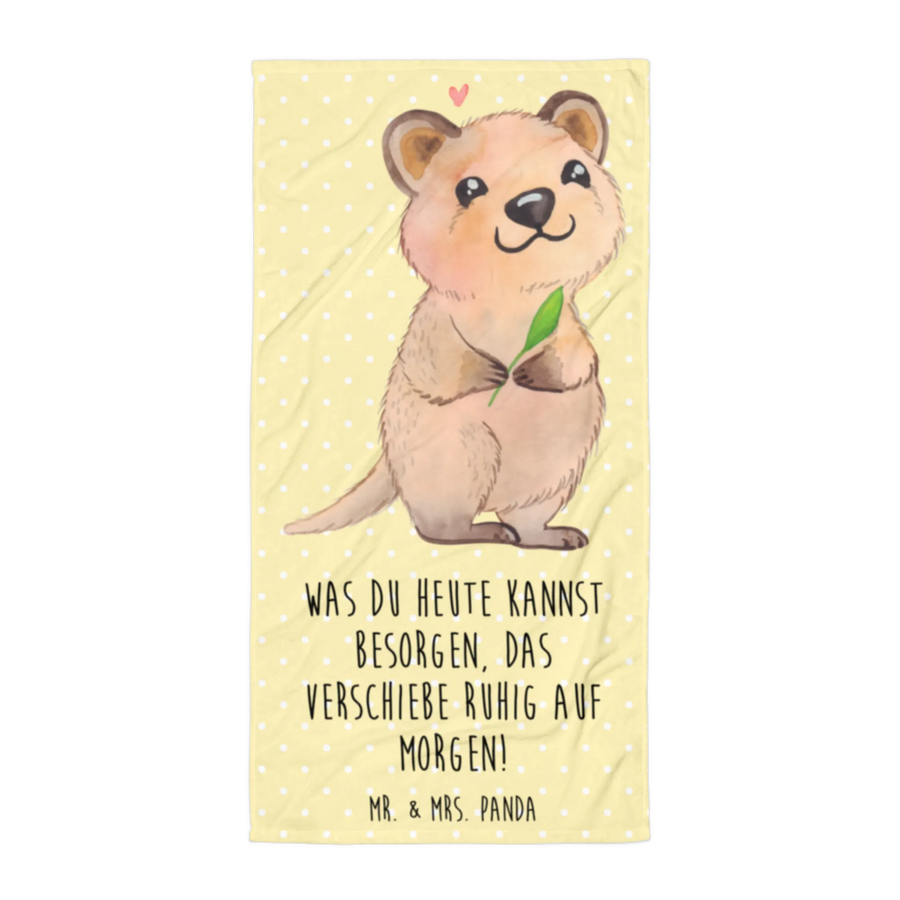 Das XL Badehandtuch Quokka Happy von Mr. & Mrs. Panda ist nicht nur ein einfaches Handtuch – es ist ein Statement für Freude und gute Laune! Mit seinem charmanten Quokka-Motiv steht dieses Handtuch für die positive Lebenseinstellung, die wir alle manchmal brauchen. Der Slogan „Was du heute kannst besorgen, das verschiebe ruhig auf morgen!“ verleiht diesem Textilstück eine humorvolle Note, die dich daran erinnert, das Leben entspannt anzugehen.