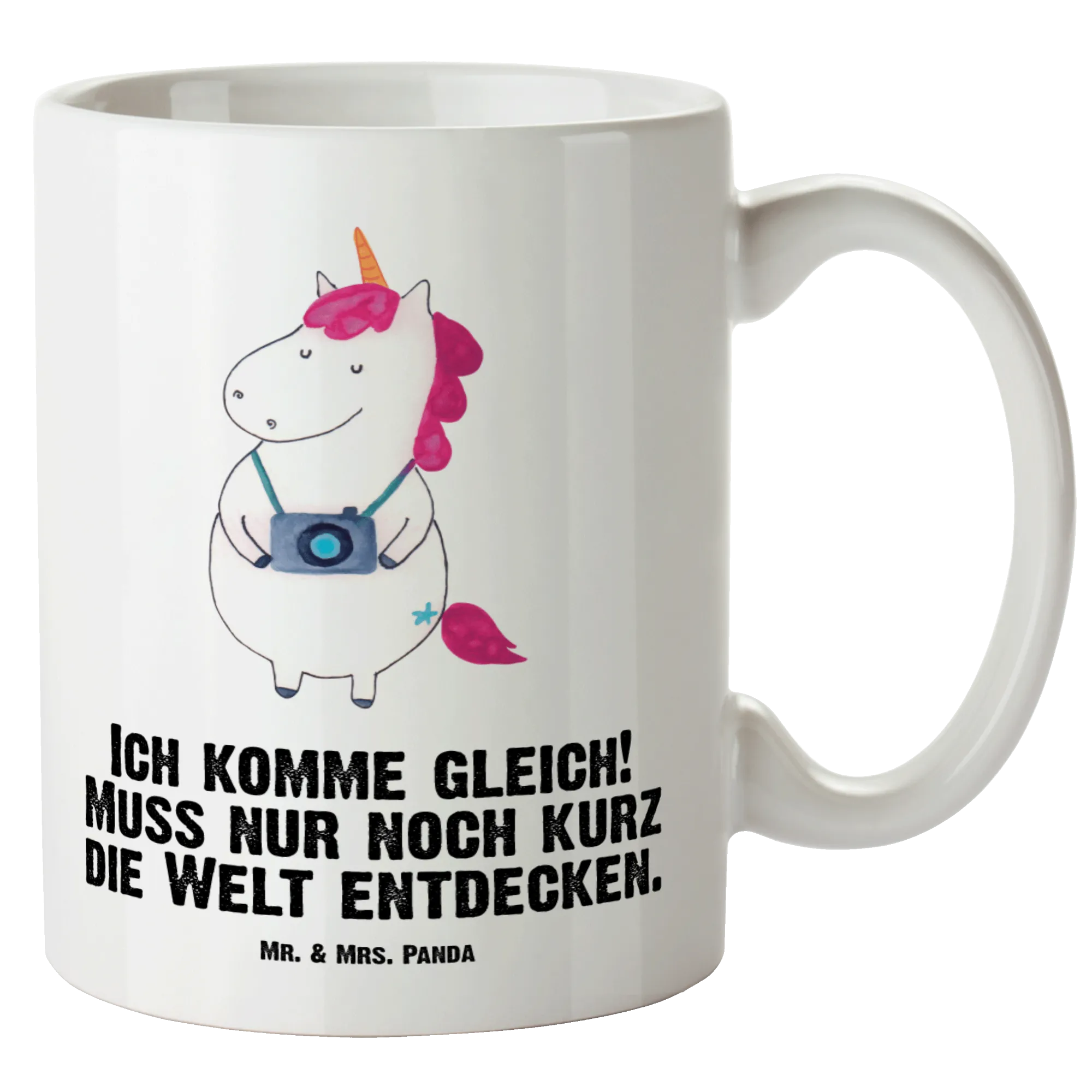 Here comes the Unicorn Photographer, a charming figure on a mission to capture every bit of magic around it! With a camera hung around its neck and a sparkle in its eye, this unicorn carries a message as whimsical as its appearance. The saying 'Ich komme gleich! Muss nur noch kurz die Welt entdecken' expresses the spirit of adventure and the joy of discovery. This motif invites you to wander, explore new places, and snap photos that tell stories. For all wandering souls and photography lovers, this unicorn is a perfect reminder to seek out the beautiful moments in life and document them. Together, let’s embrace the spirit of exploration and make lasting memories.