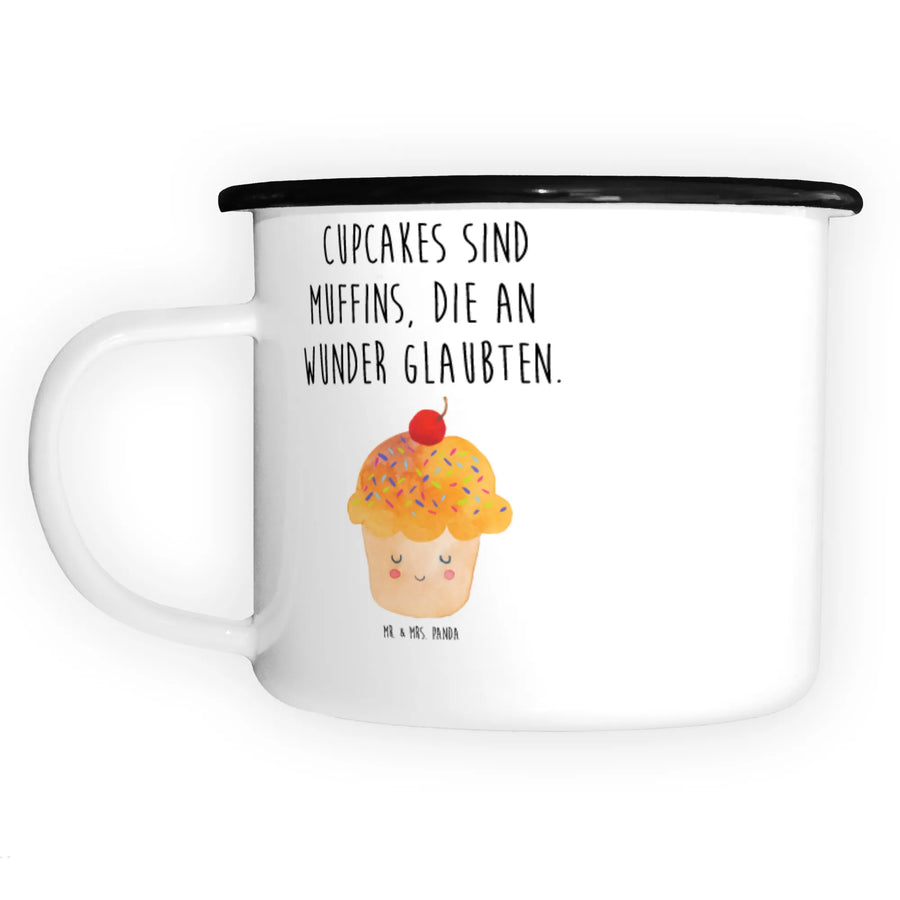Whether you grab a steaming cup of coffee before work or enjoy hot cocoa while camping under the stars, the Mr. & Mrs. Panda enamel cup is designed to keep you company in style. The cheerful cupcake motif and the quote "Cupcakes are simply muffins that follow their dreams" resonate with baking enthusiasts and animal lovers alike, making every sip an experience filled with motivation and warmth.